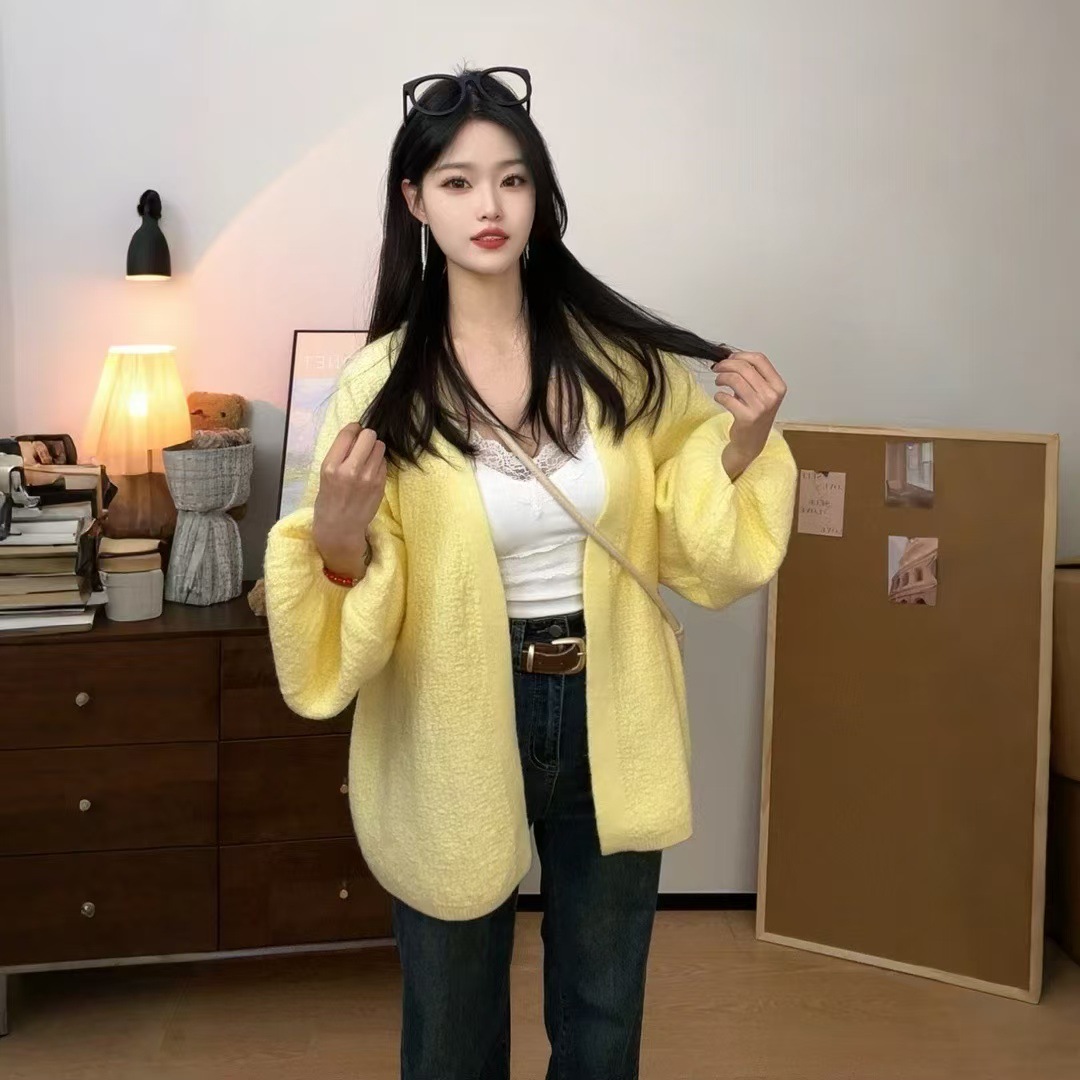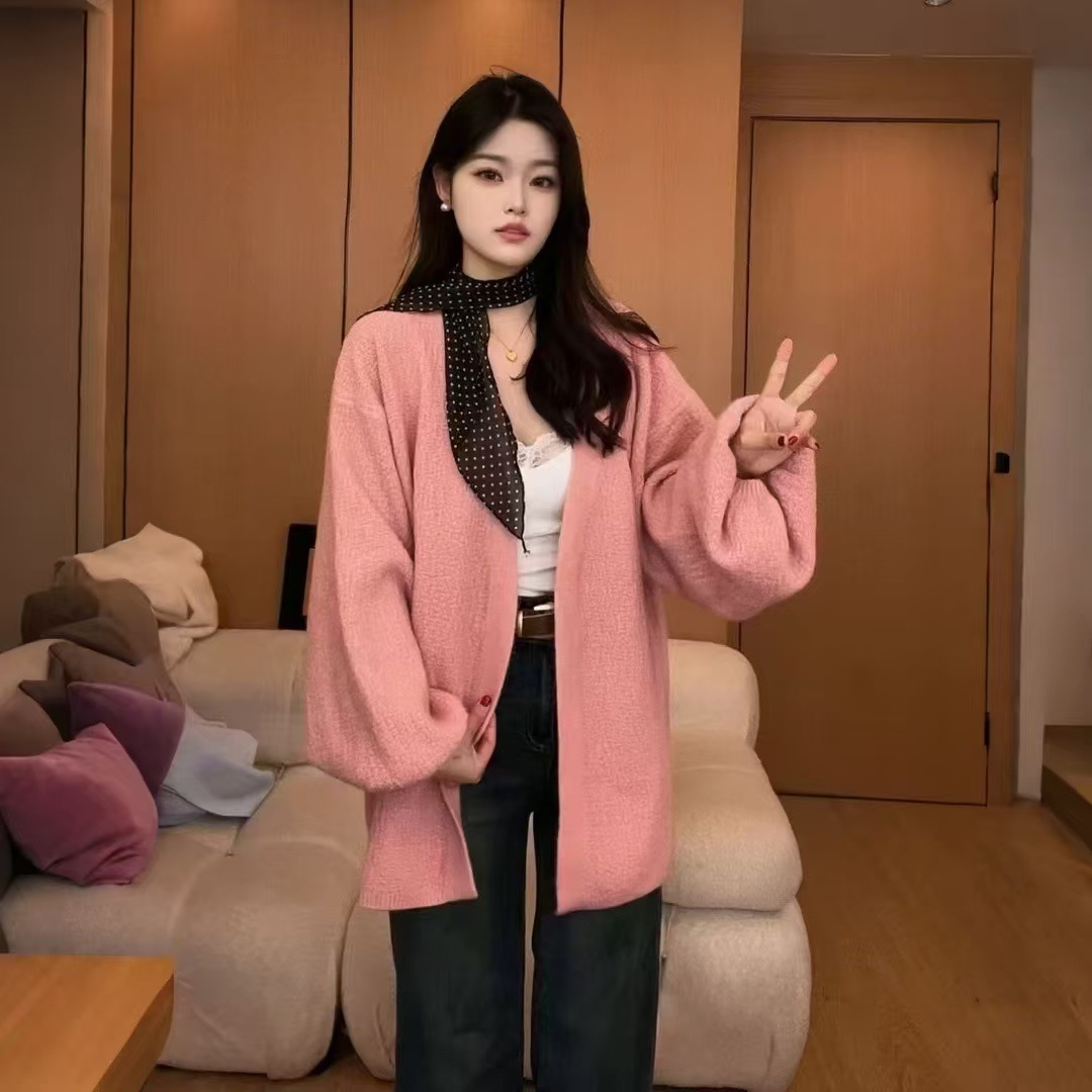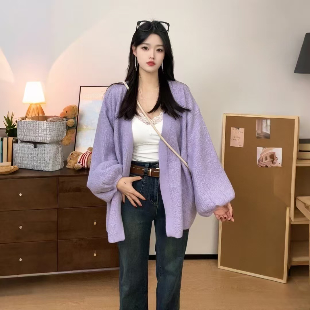 버튼이 없는 여성용 봄, 가을 게으른 스타일 니트 아우터, 두꺼운 니트 디자인, 여성용 서양식 랜턴 슬리브 아우터 재킷스토어 가기