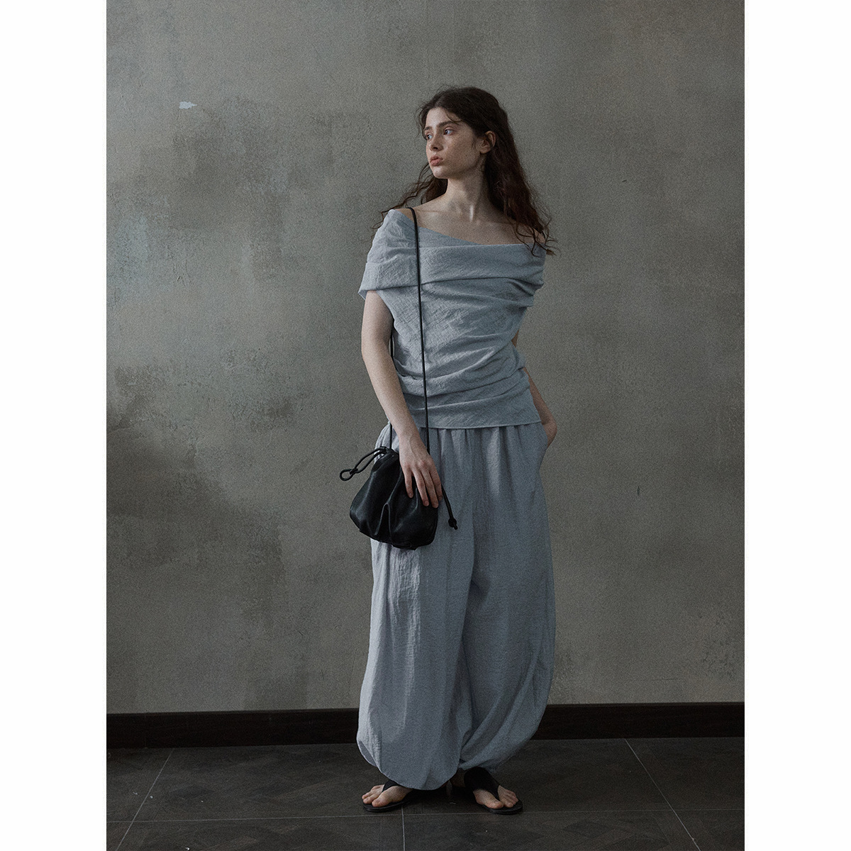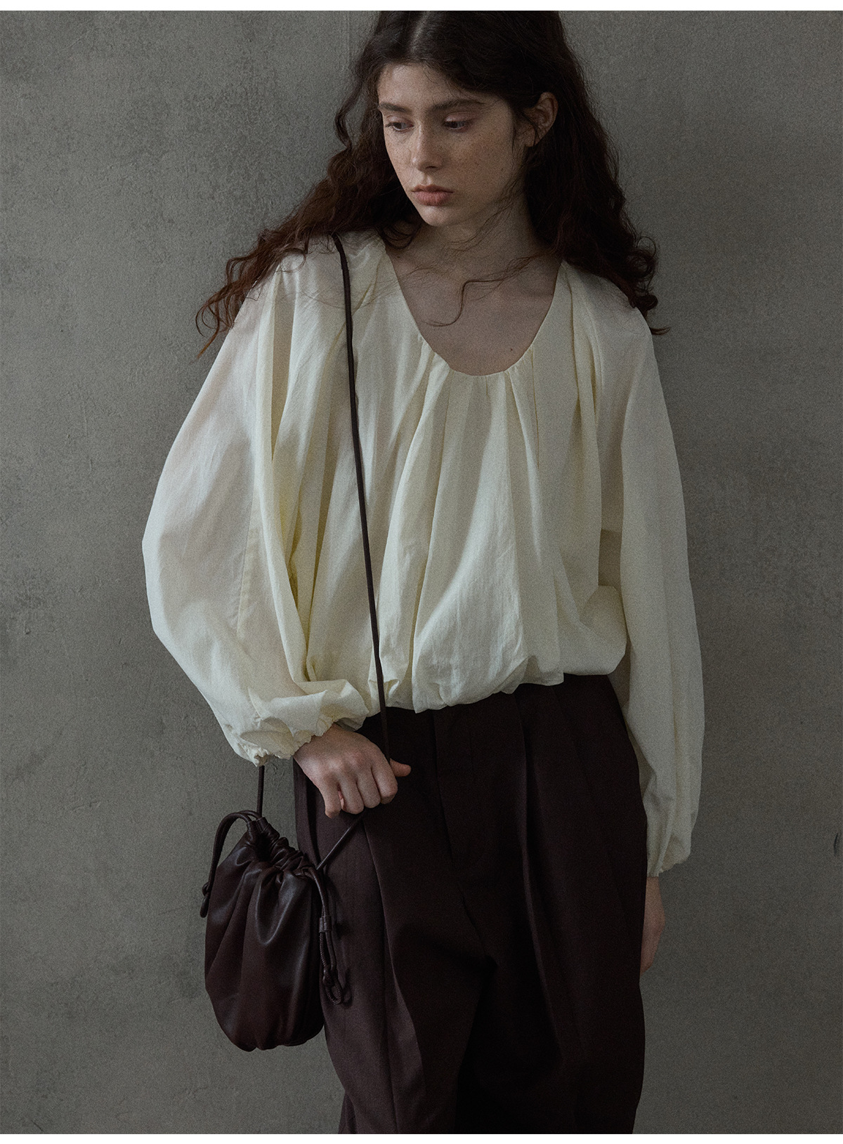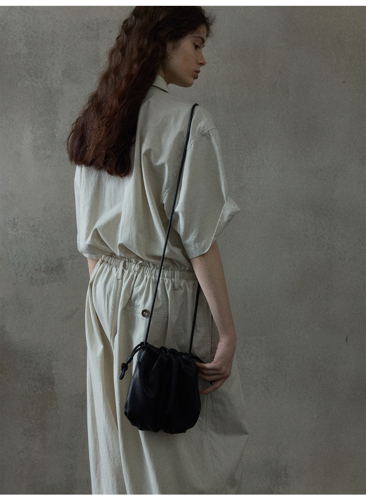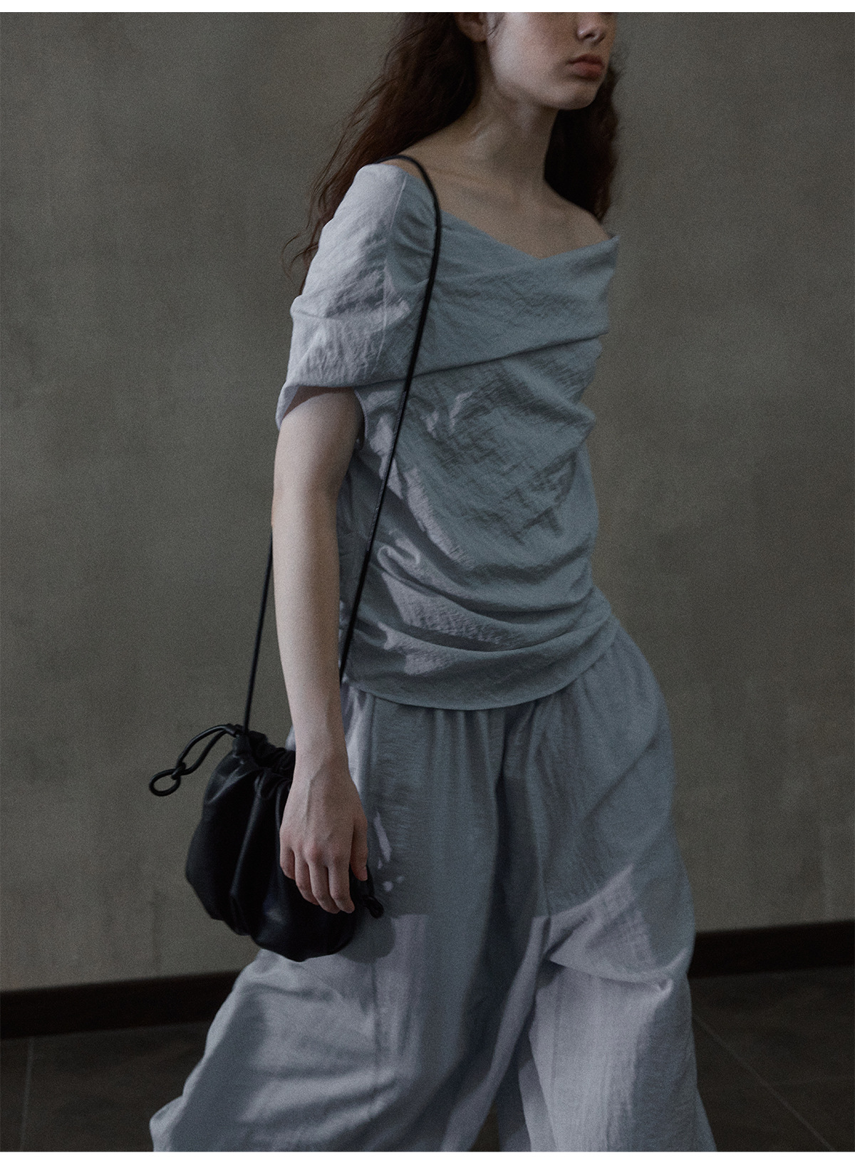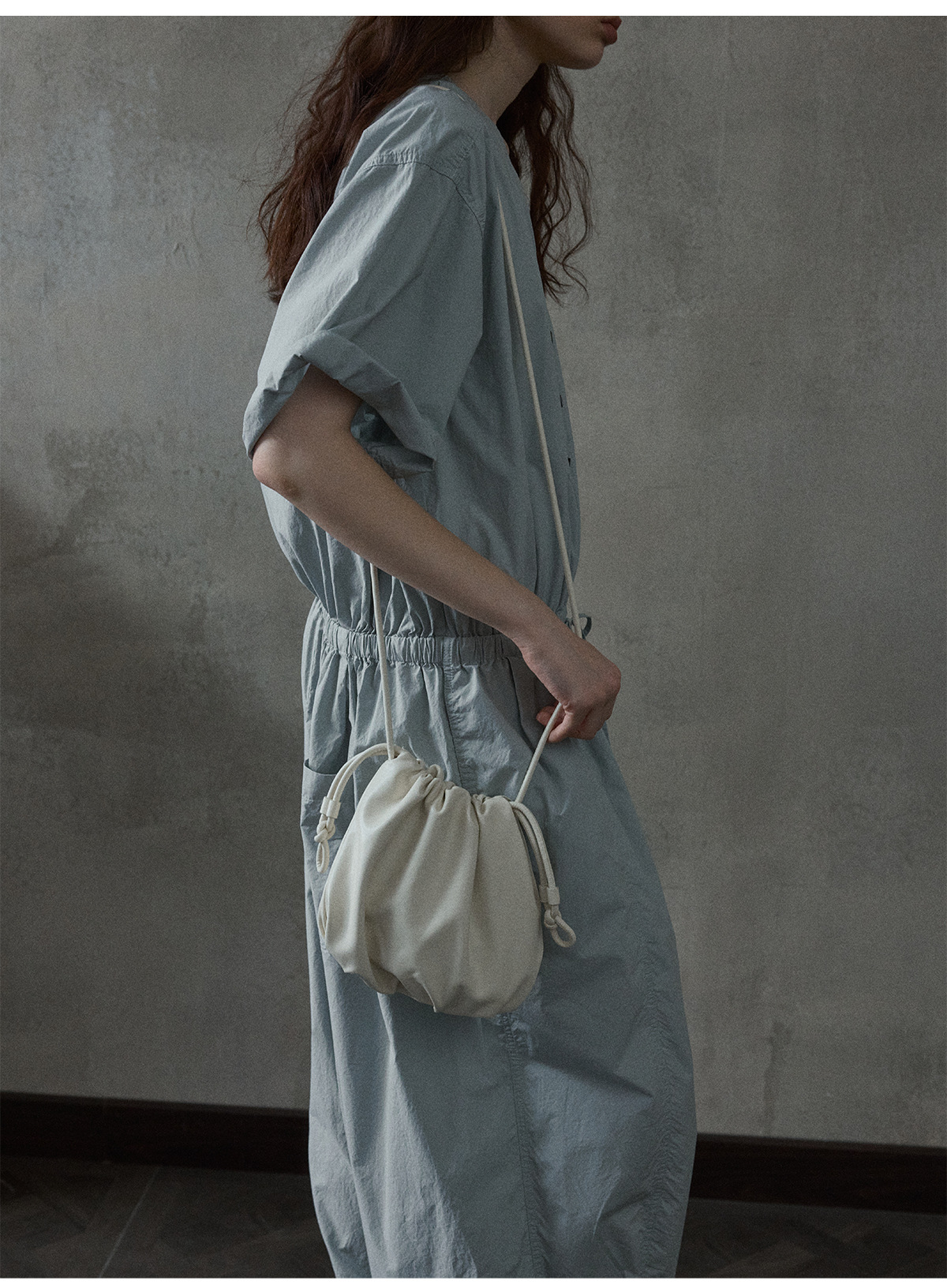 [몇 가지 알고] 소프트 왁스 클라우드 센스 드로스트링 크로스 바디 작은 가방 매일 일치하는 통근 휴대용 쉘 M8658