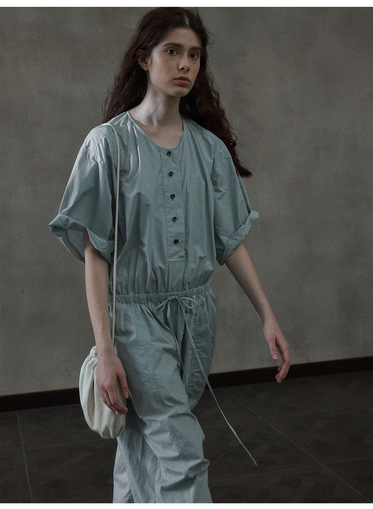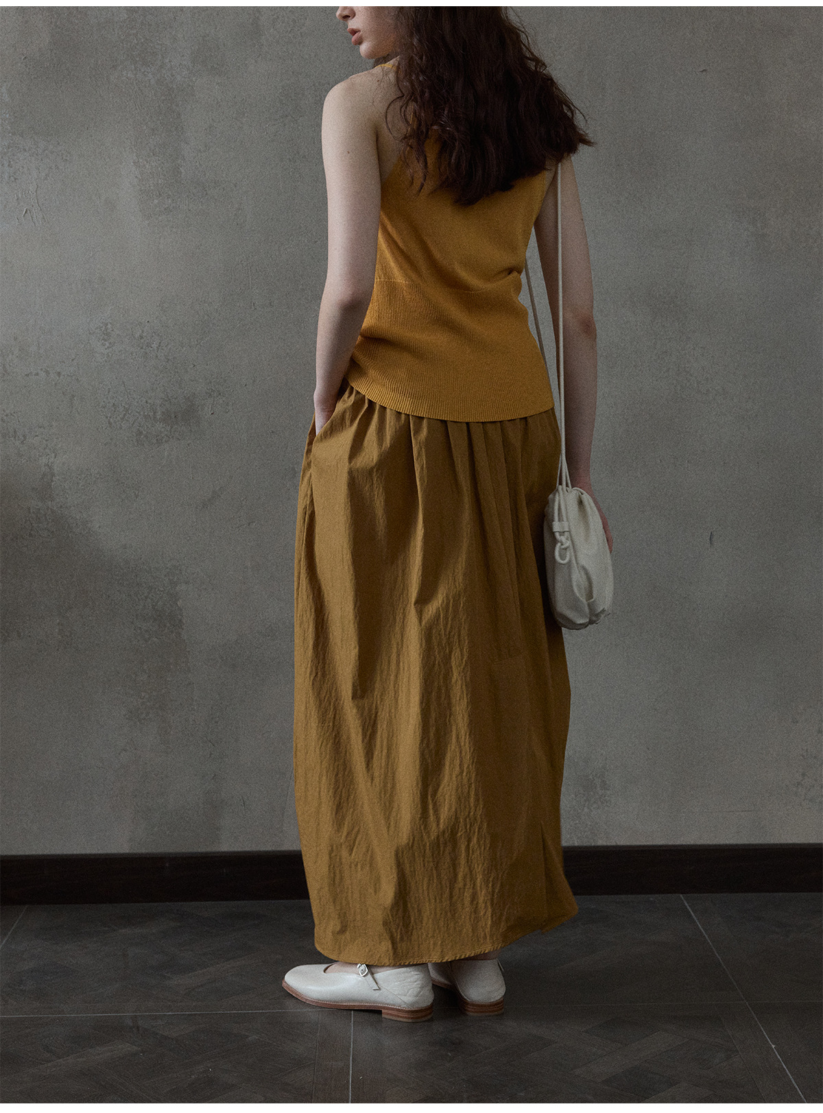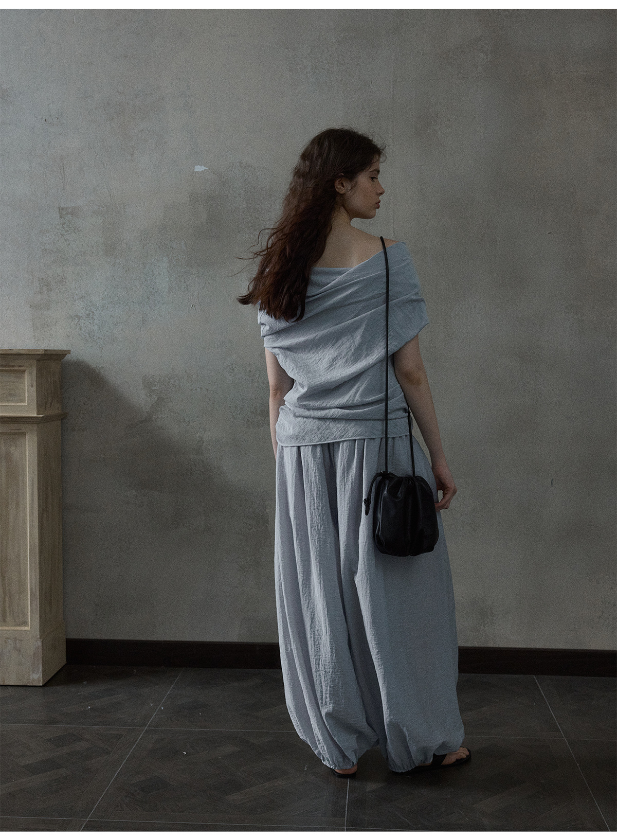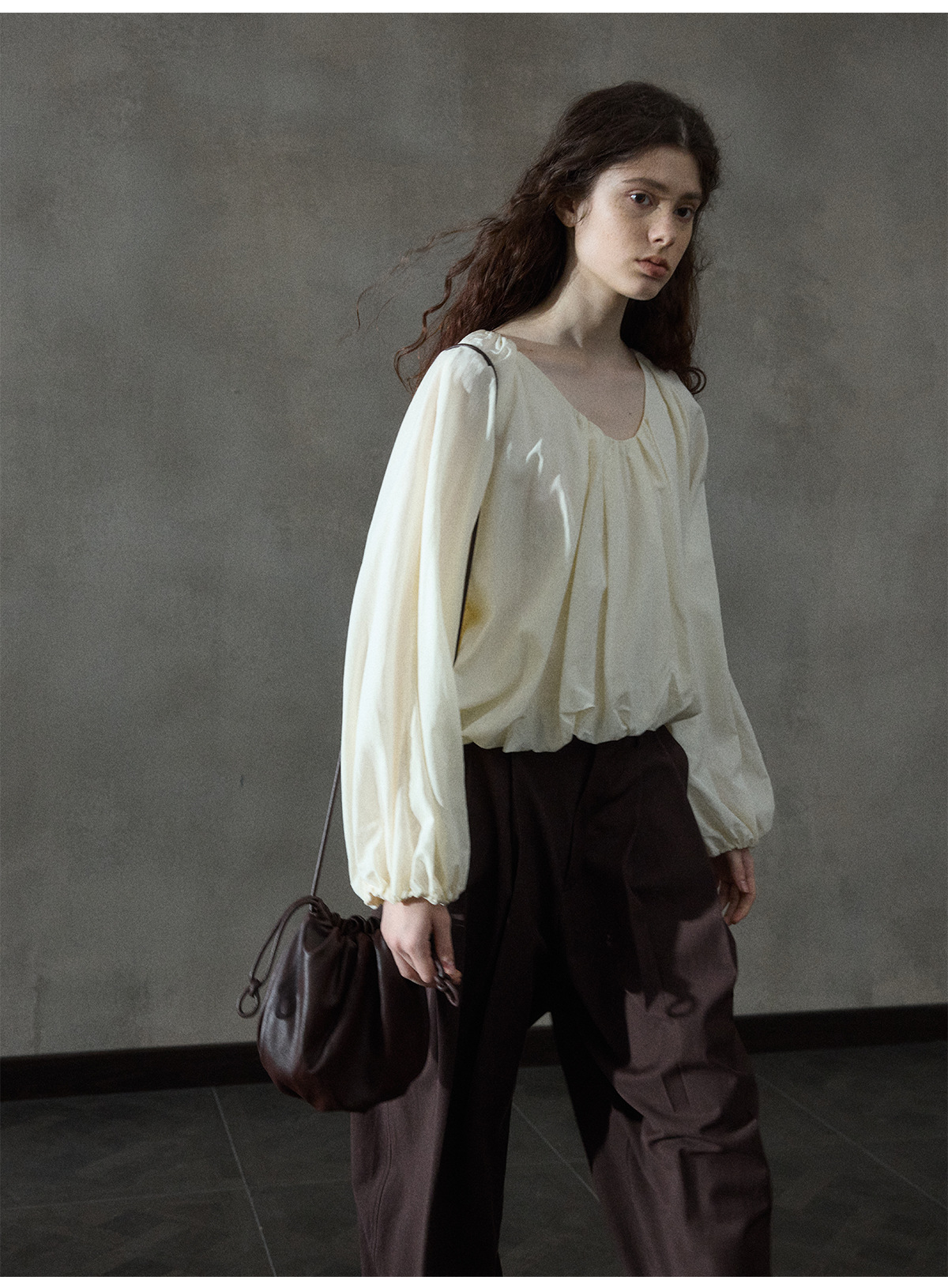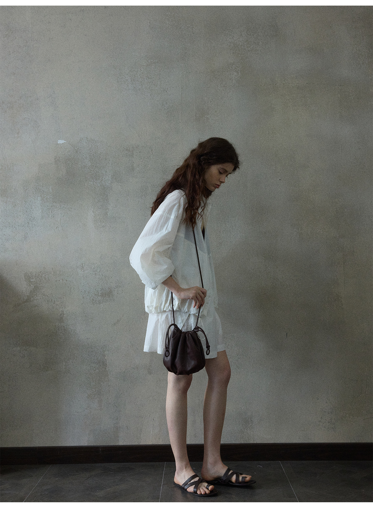 [몇 가지 알고] 소프트 왁스 클라우드 센스 드로스트링 크로스 바디 작은 가방 매일 일치하는 통근 휴대용 쉘 M8658