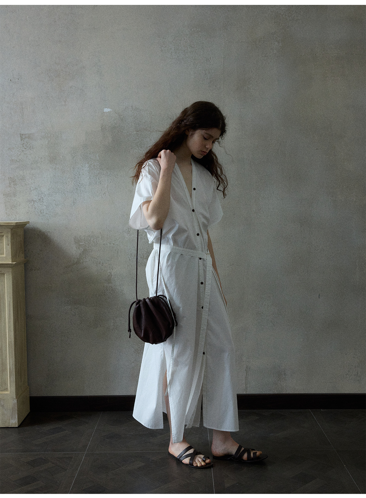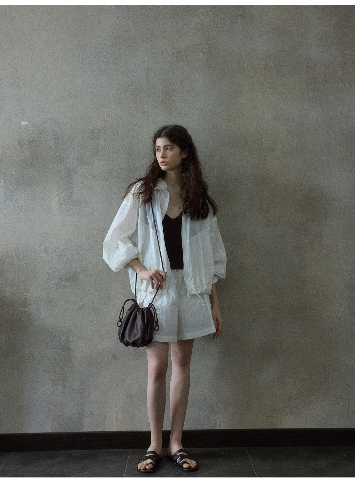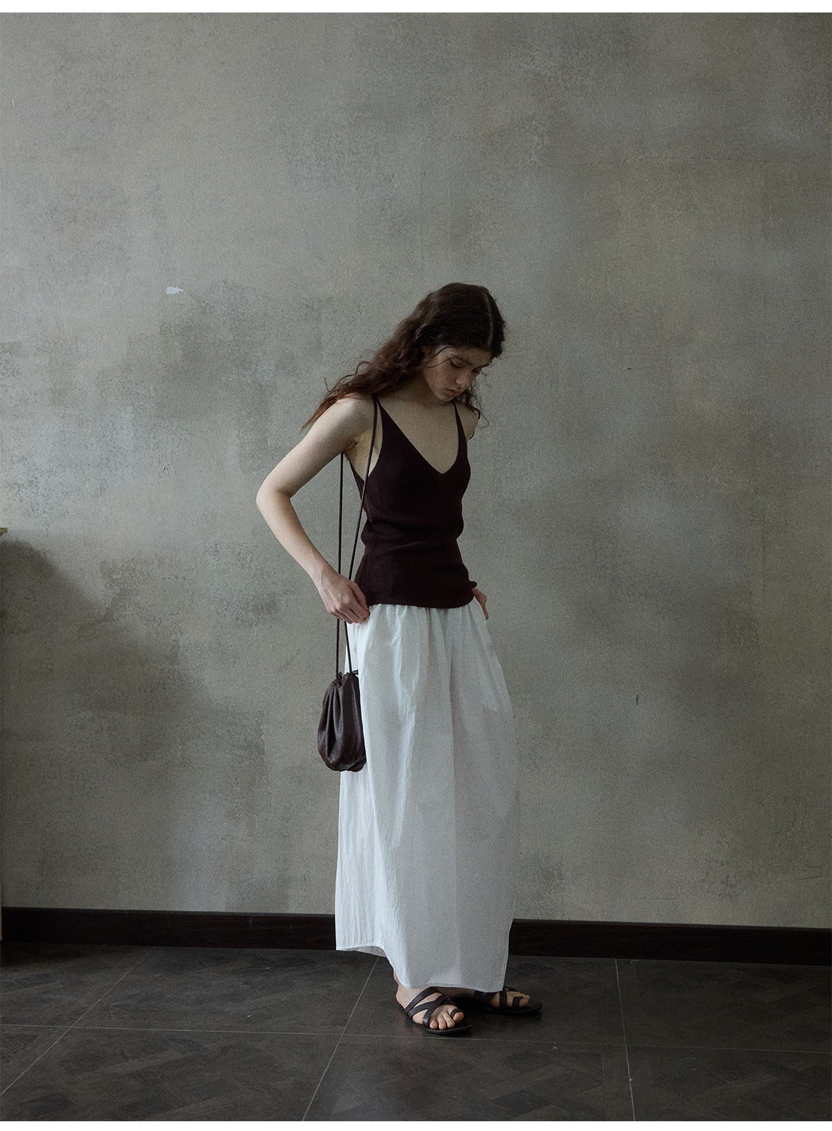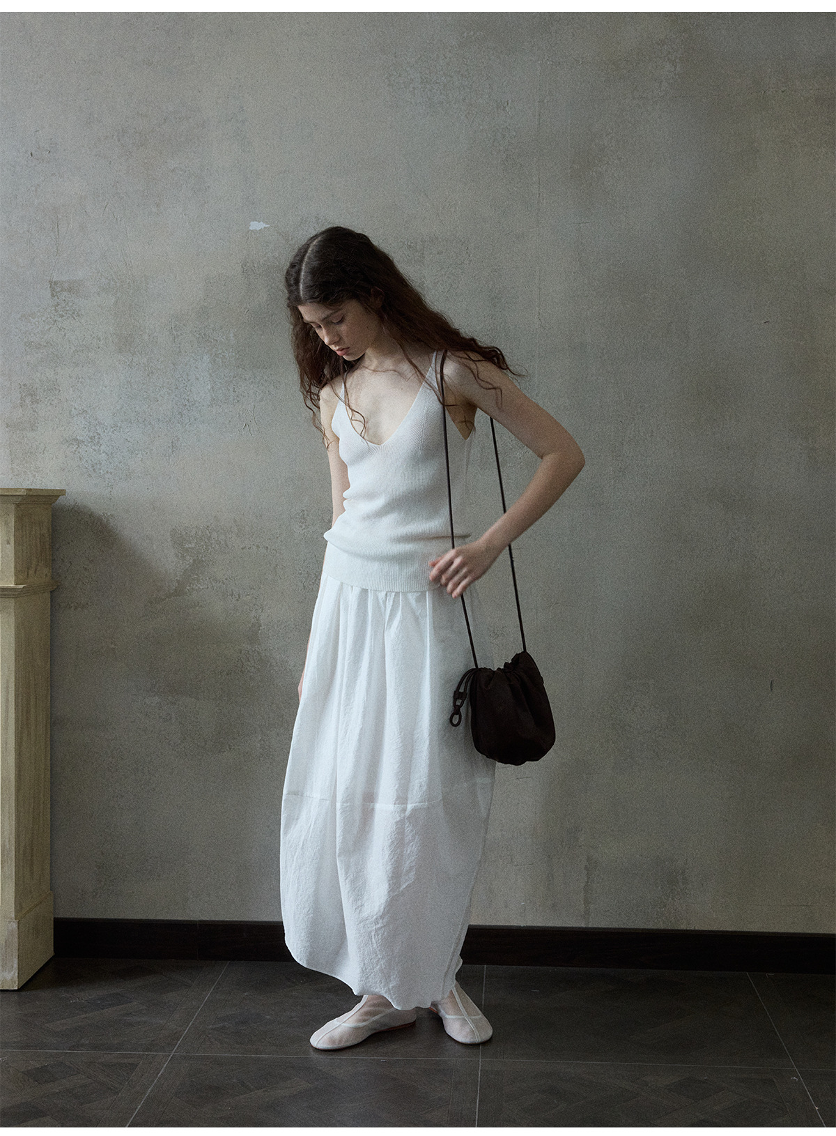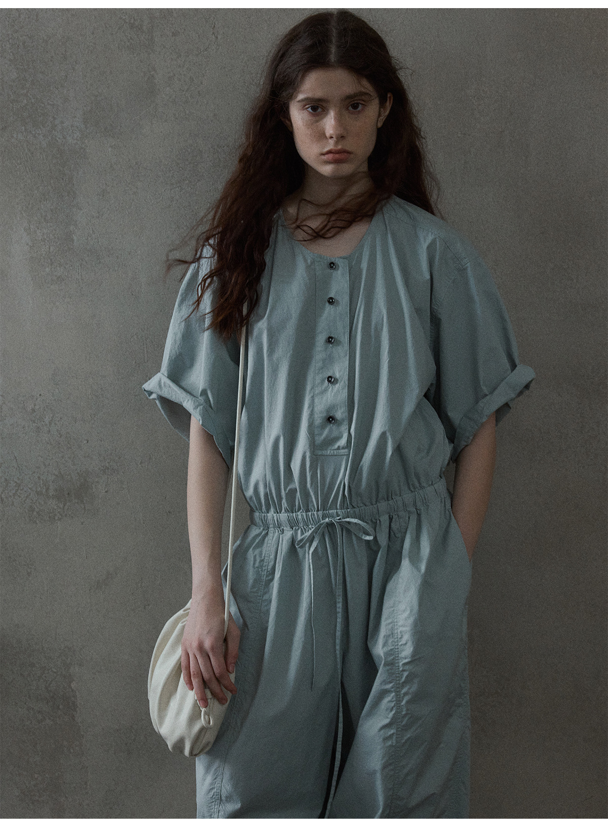 [몇 가지 알고] 소프트 왁스 클라우드 센스 드로스트링 크로스 바디 작은 가방 매일 일치하는 통근 휴대용 쉘 M8658