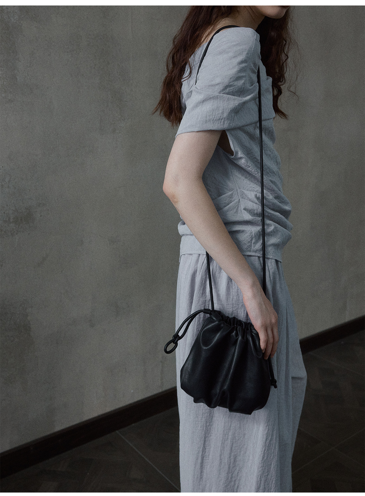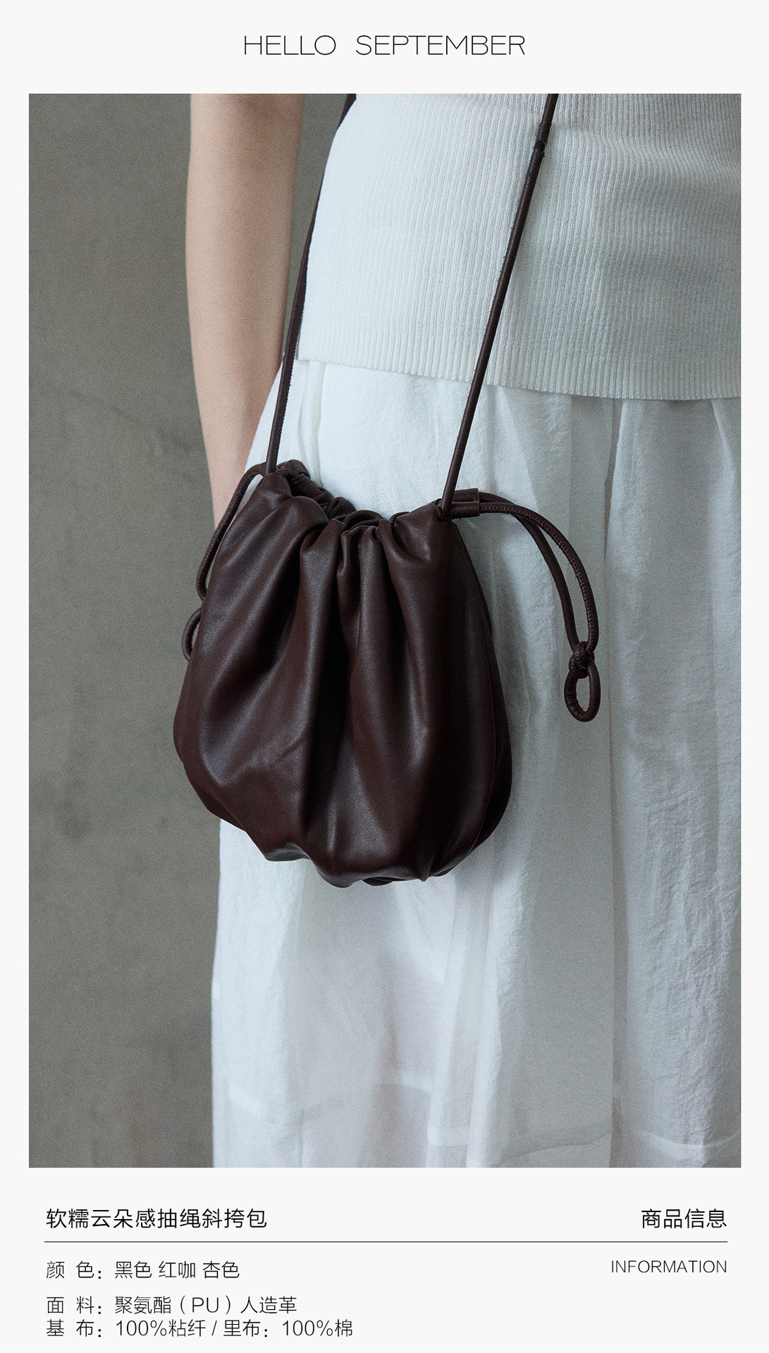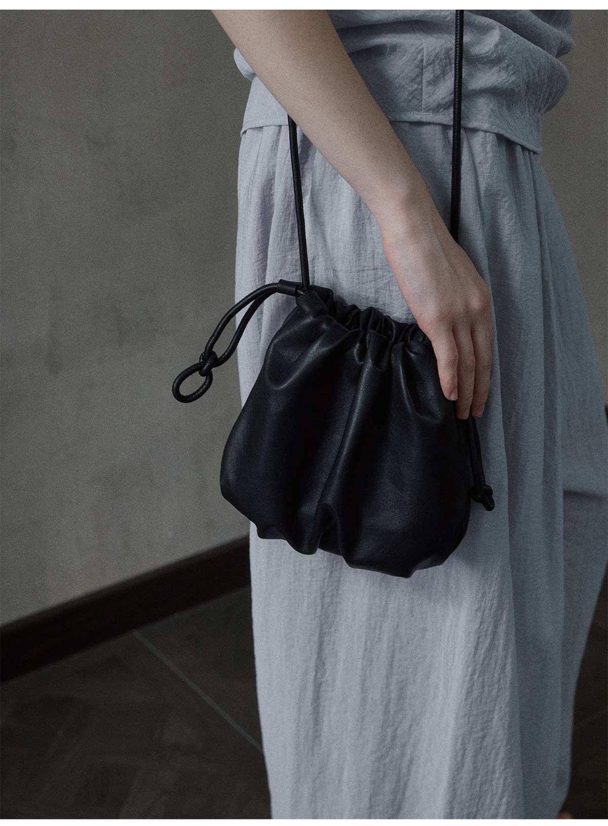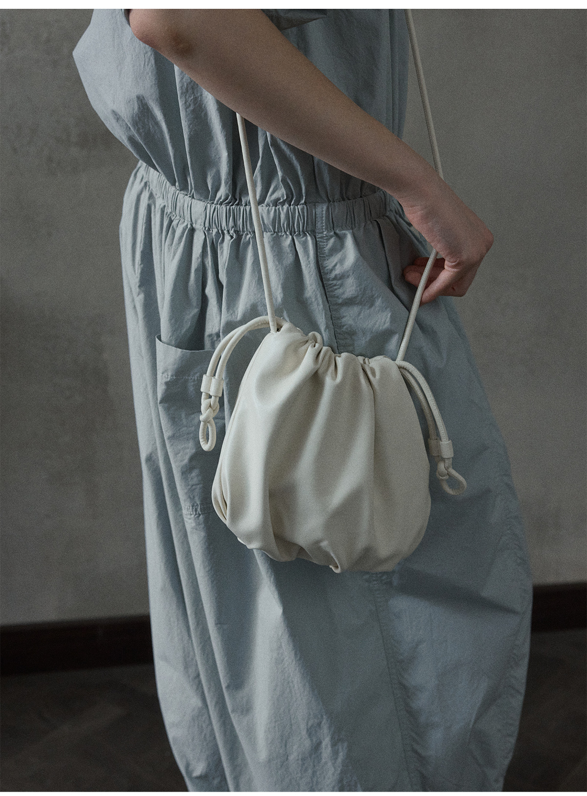 [몇 가지 알고] 소프트 왁스 클라우드 센스 드로스트링 크로스 바디 작은 가방 매일 일치하는 통근 휴대용 쉘 M8658스토어 가기