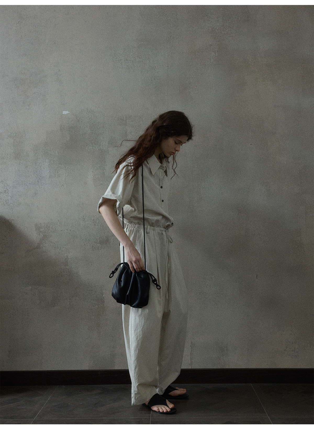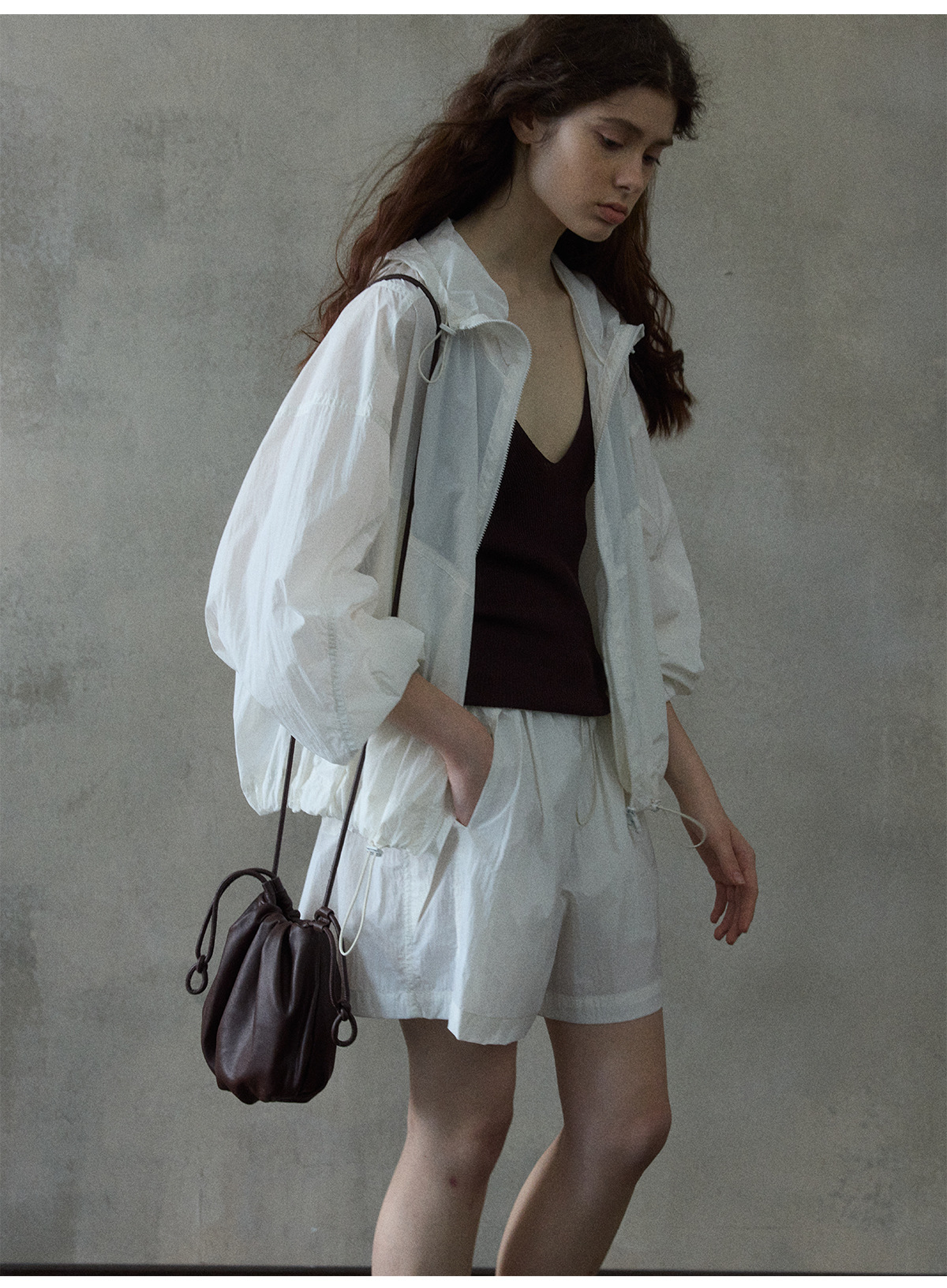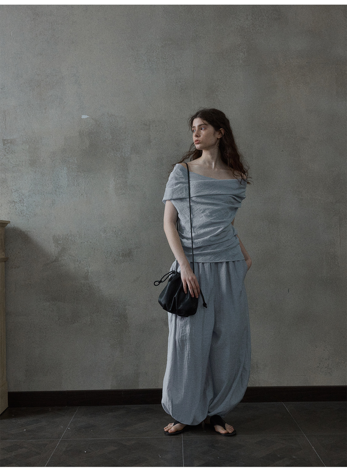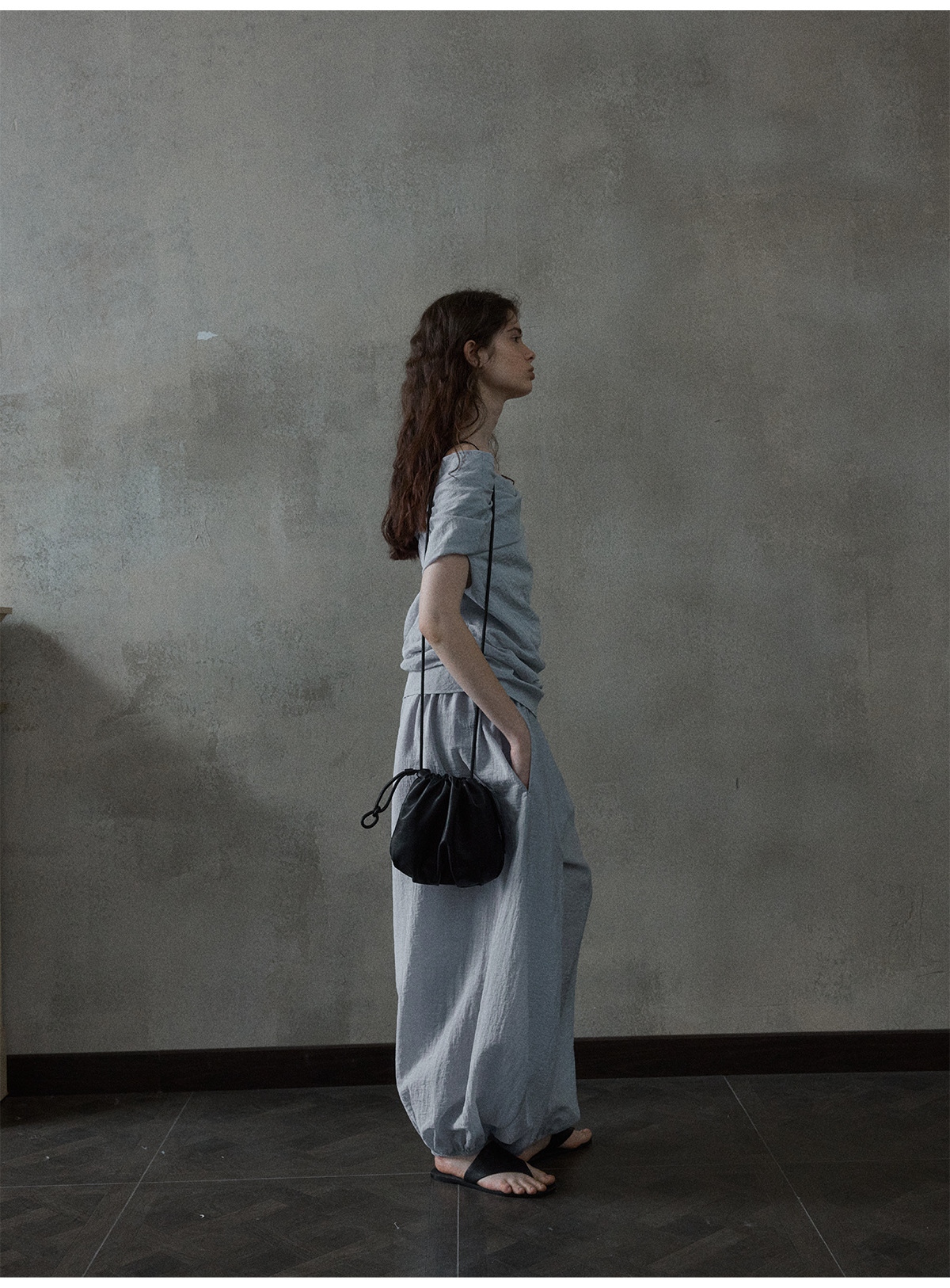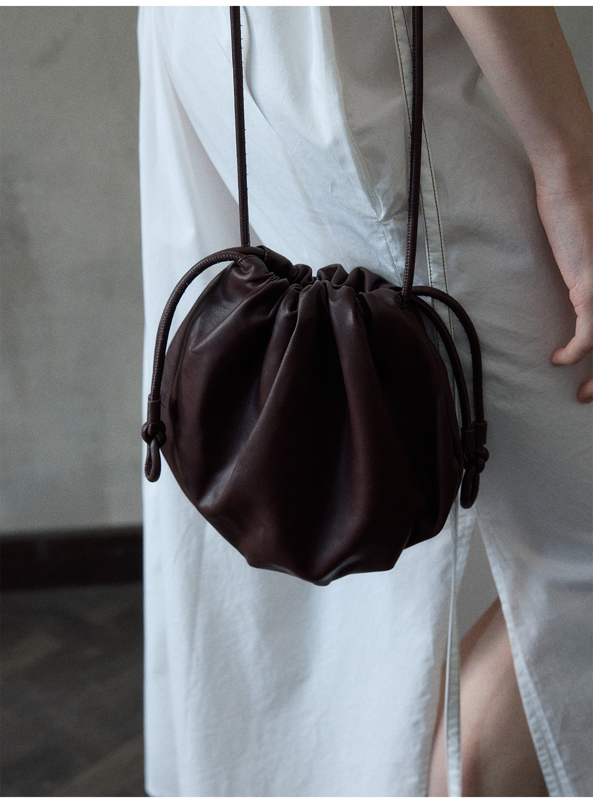 [몇 가지 알고] 소프트 왁스 클라우드 센스 드로스트링 크로스 바디 작은 가방 매일 일치하는 통근 휴대용 쉘 M8658스토어 가기