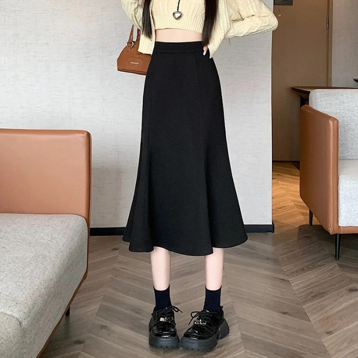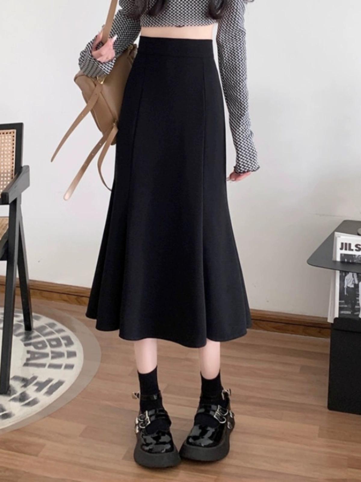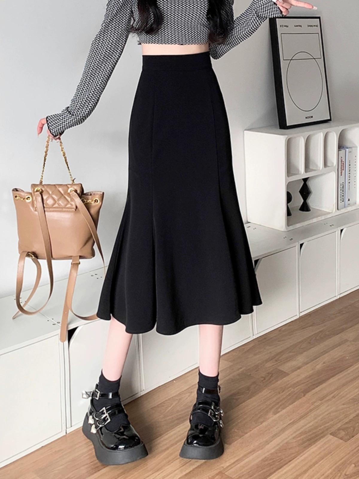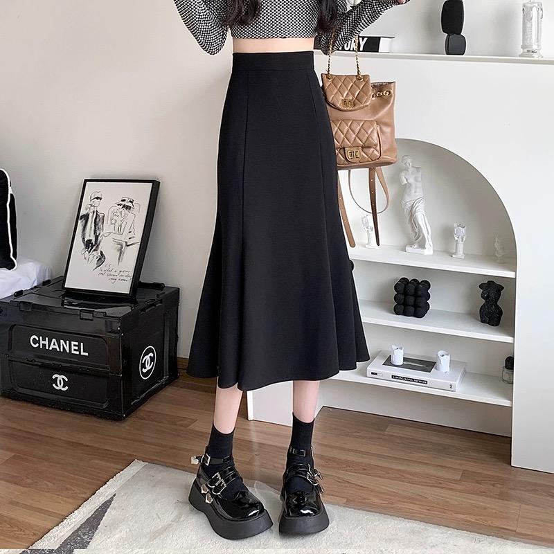 여성을위한 크로스 보더 2025 새로운 검은 정장 스커트 봄, 여름 높은 허리 탄성 슬리밍 중간 길이 a 라인 힙 스커트스토어 가기