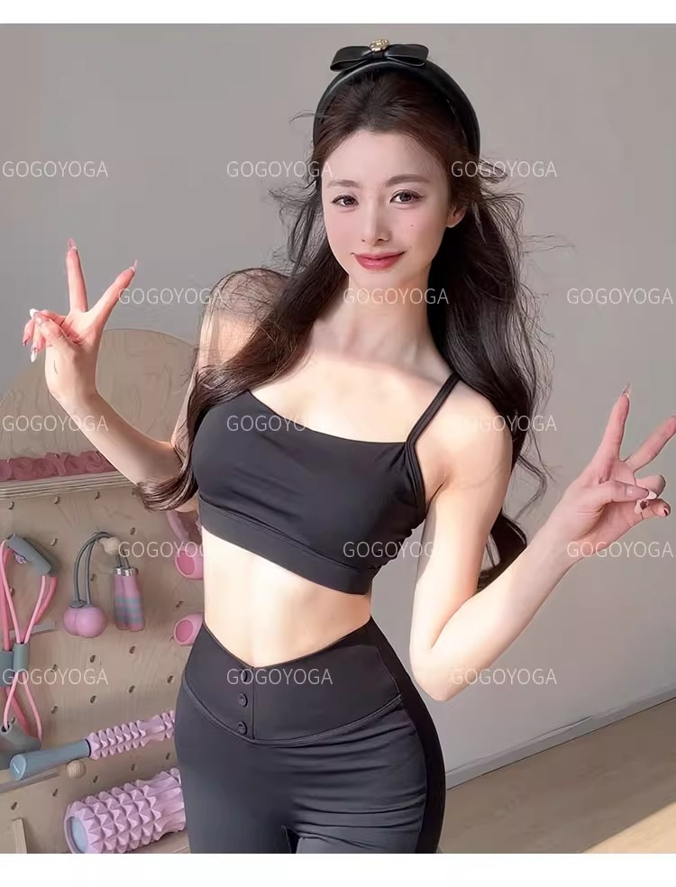 여성용 봄 여름 스포츠 브라, 고정 컵, 아름다운 등, 충격 방지 요가 조끼, 서스펜더, 필라테스 트레이닝 피트니스 브라