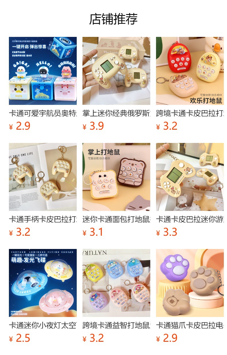 만화 미니 틱택토 퍼즐 감압 휴대용 전자 게임기 카피바라 열쇠고리 작은 펜던트 어린이 장난감스토어 가기