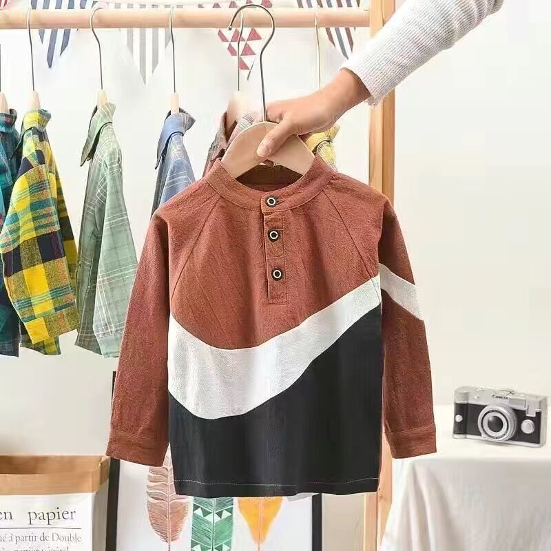 • 초콜릿 컬러 블록 크루넥 셔츠