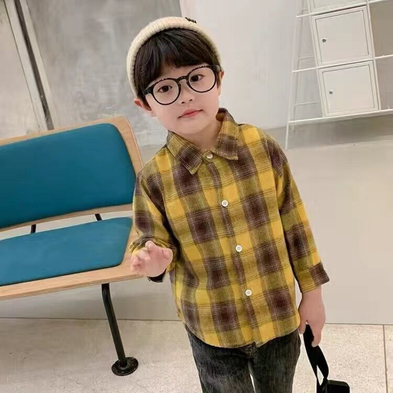 • 레몬 옐로우 스몰 체크 무늬 잉글리시 셔츠