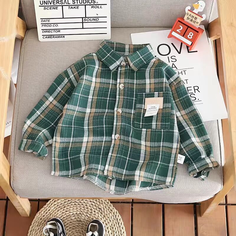 • 에메랄드 그린 더블 라벨 체크 무늬 셔츠
