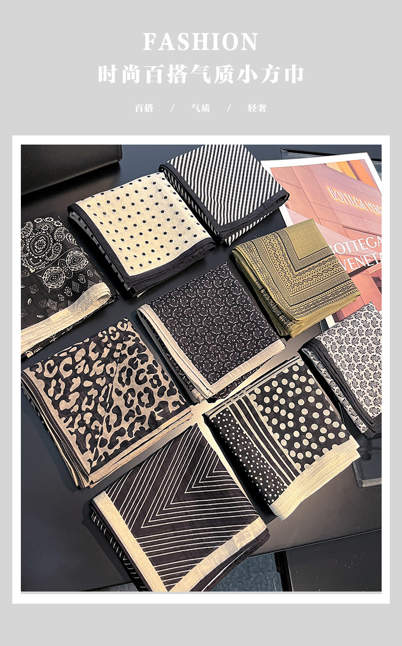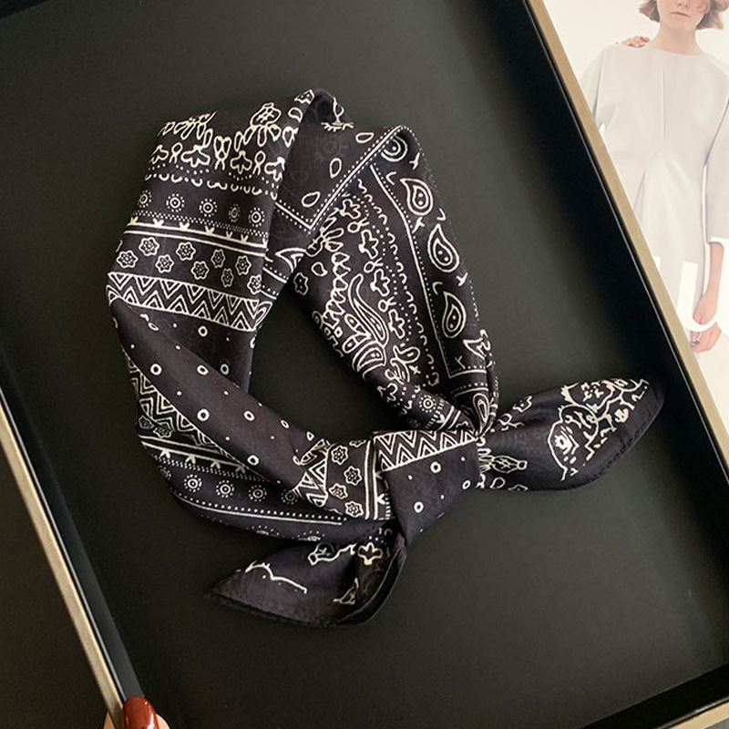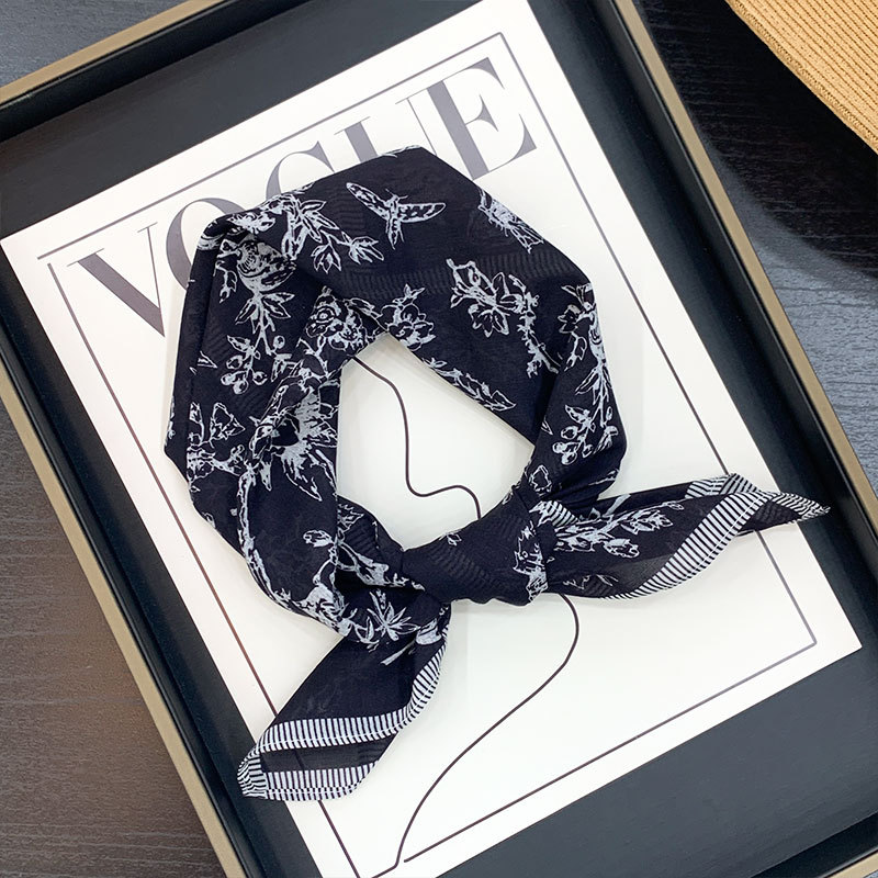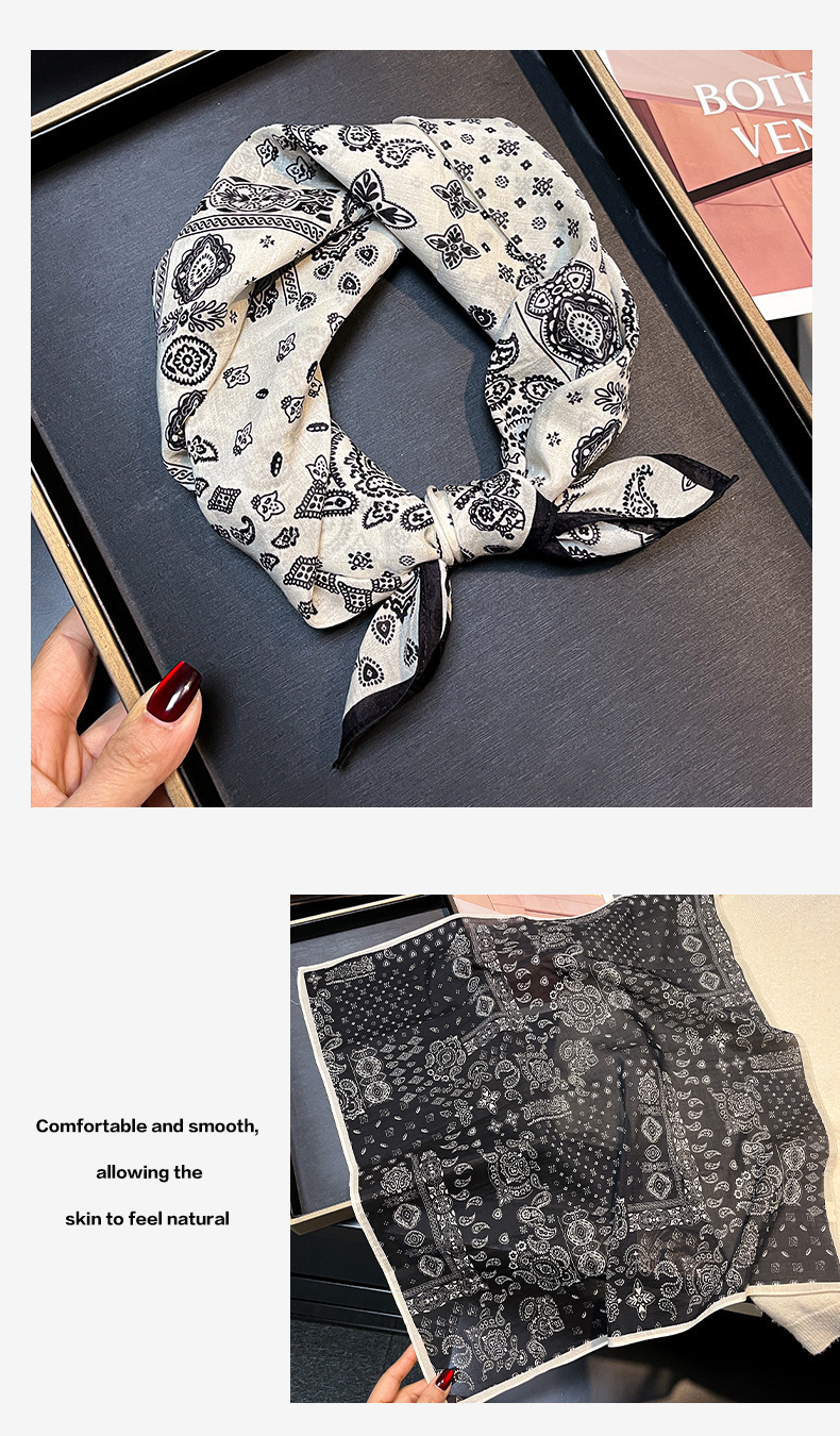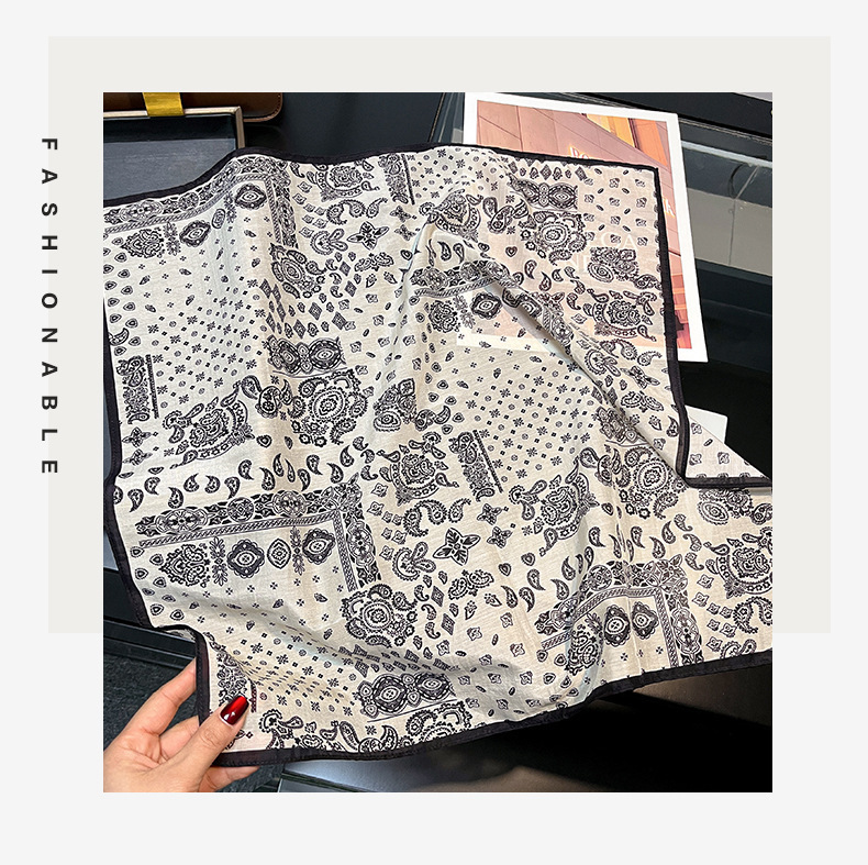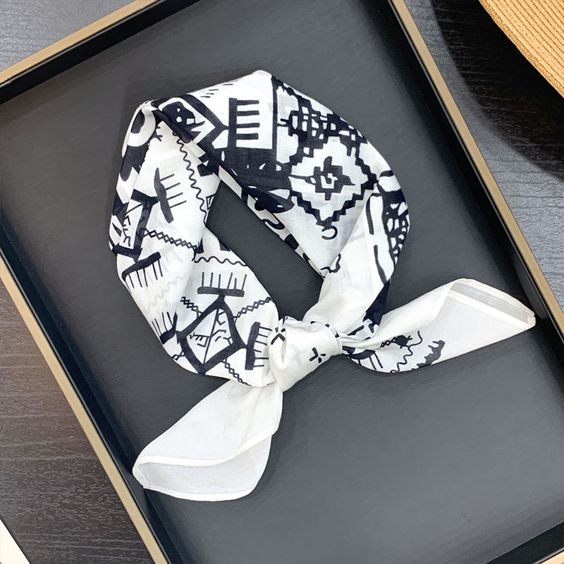 실크 치실! [미술 방황] 중세 흑백 실크 유기농면 스카프 여성 다용도 작은 사각형 스카프