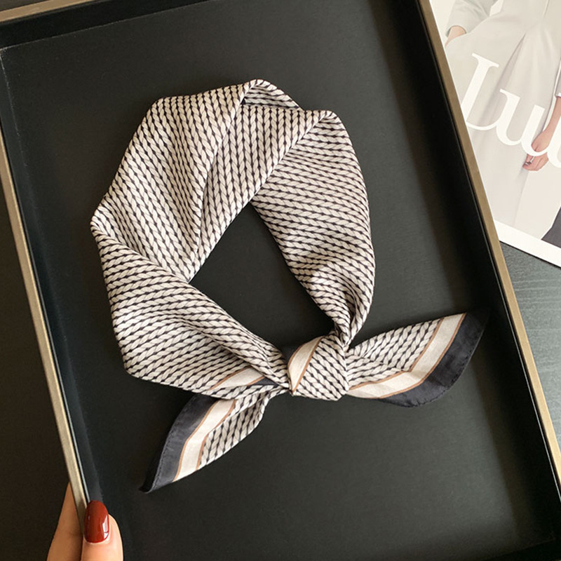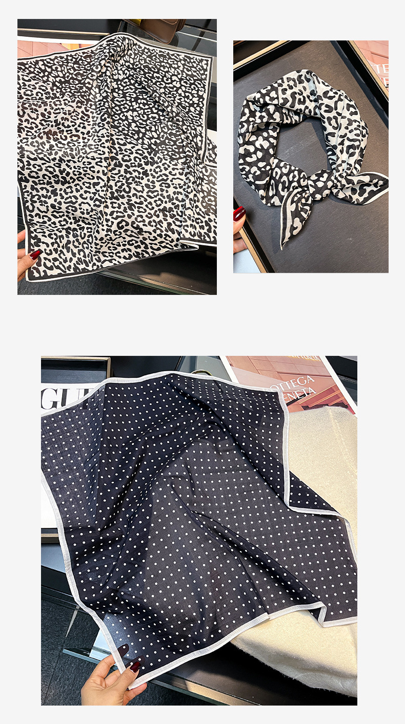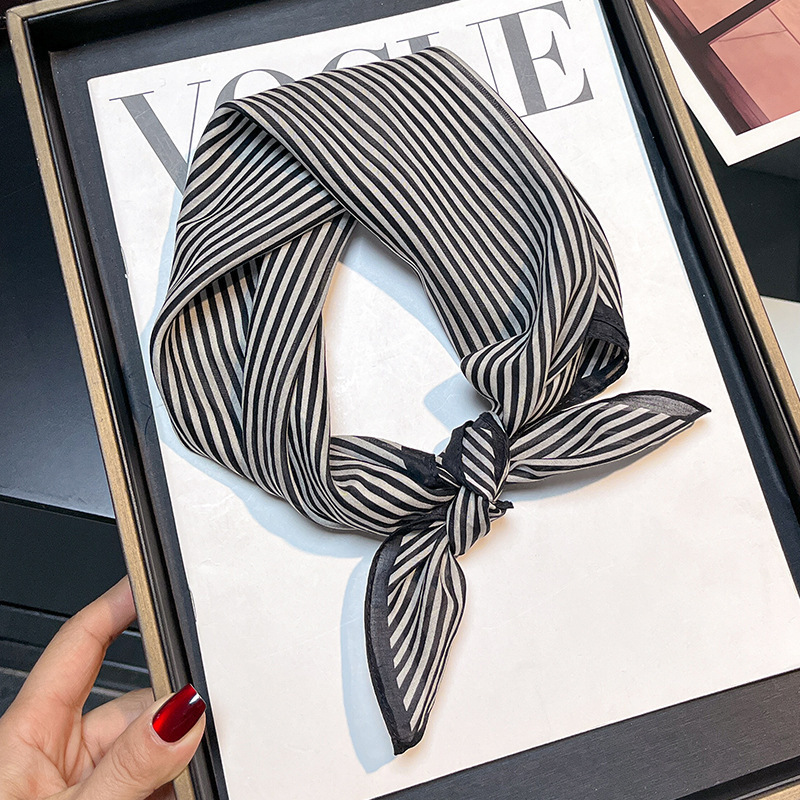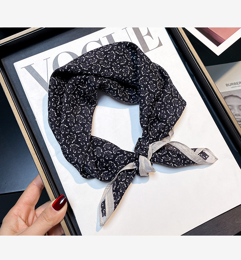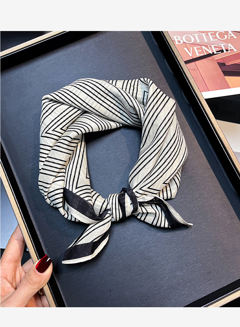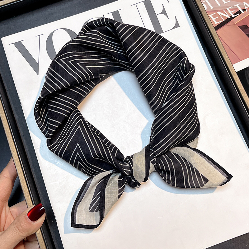 실크 치실! [미술 방황] 중세 흑백 실크 유기농면 스카프 여성 다용도 작은 사각형 스카프