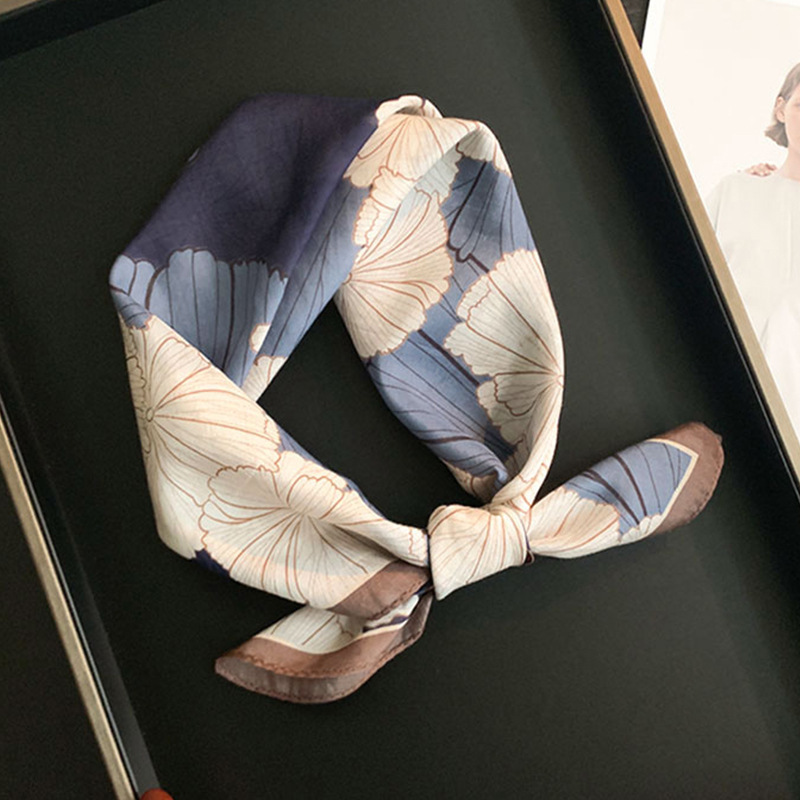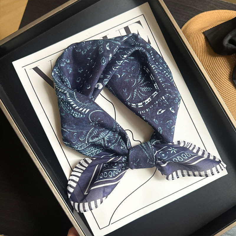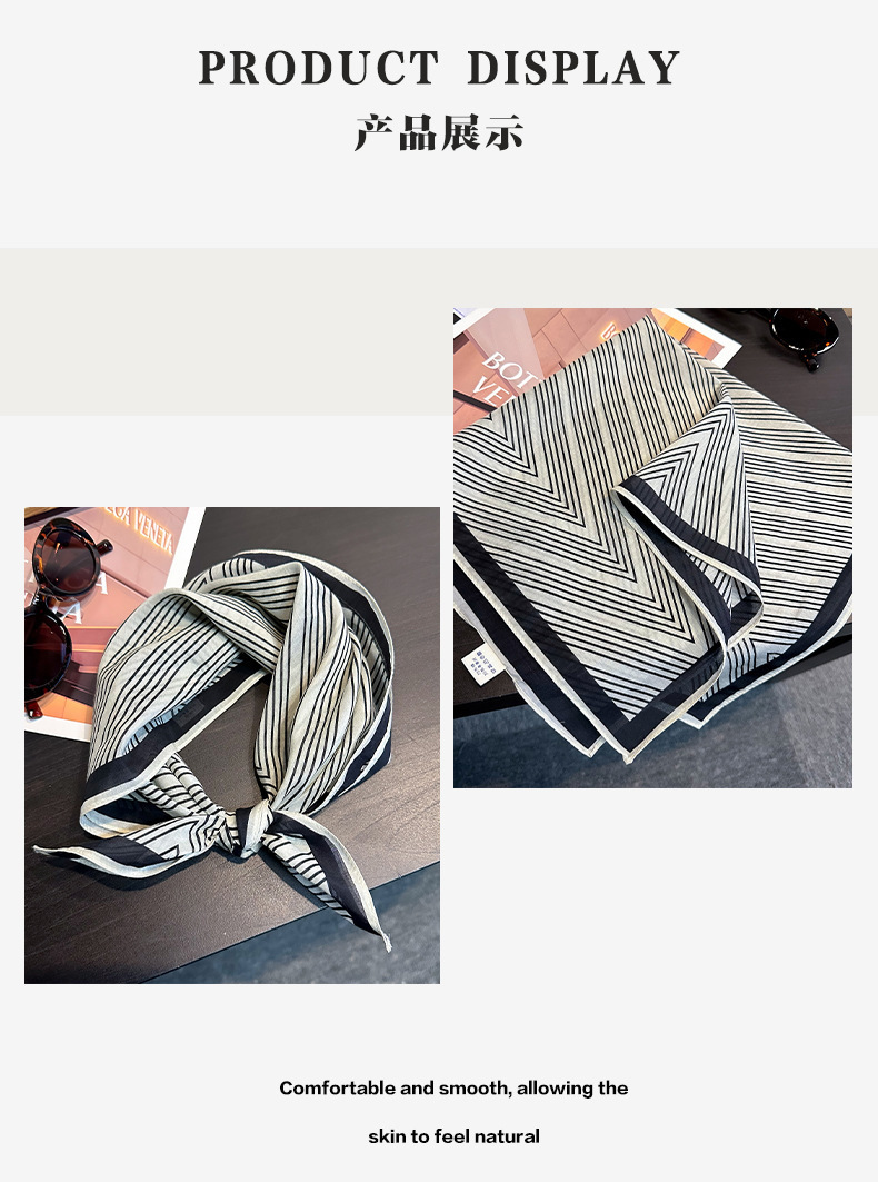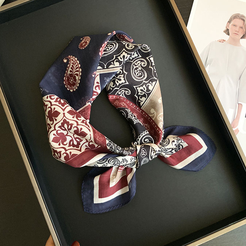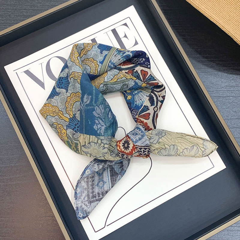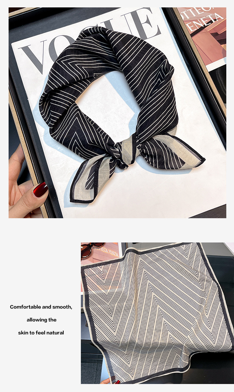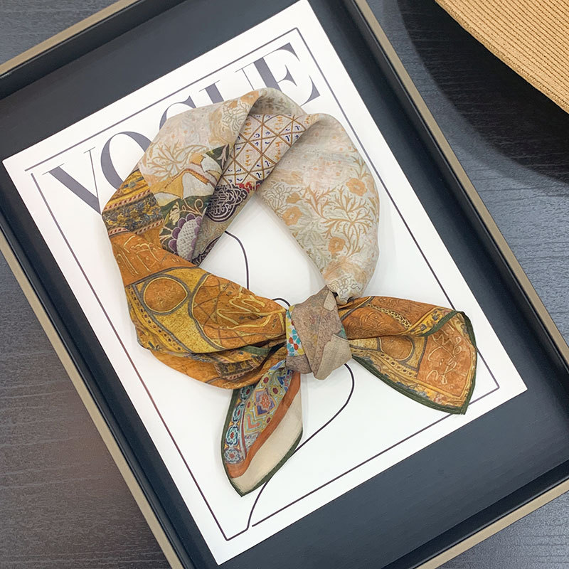 실크 치실! [미술 방황] 중세 흑백 실크 유기농면 스카프 여성 다용도 작은 사각형 스카프