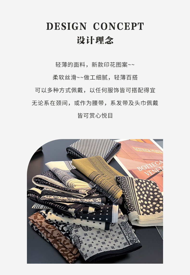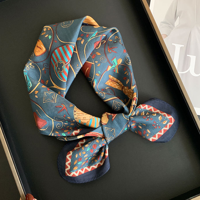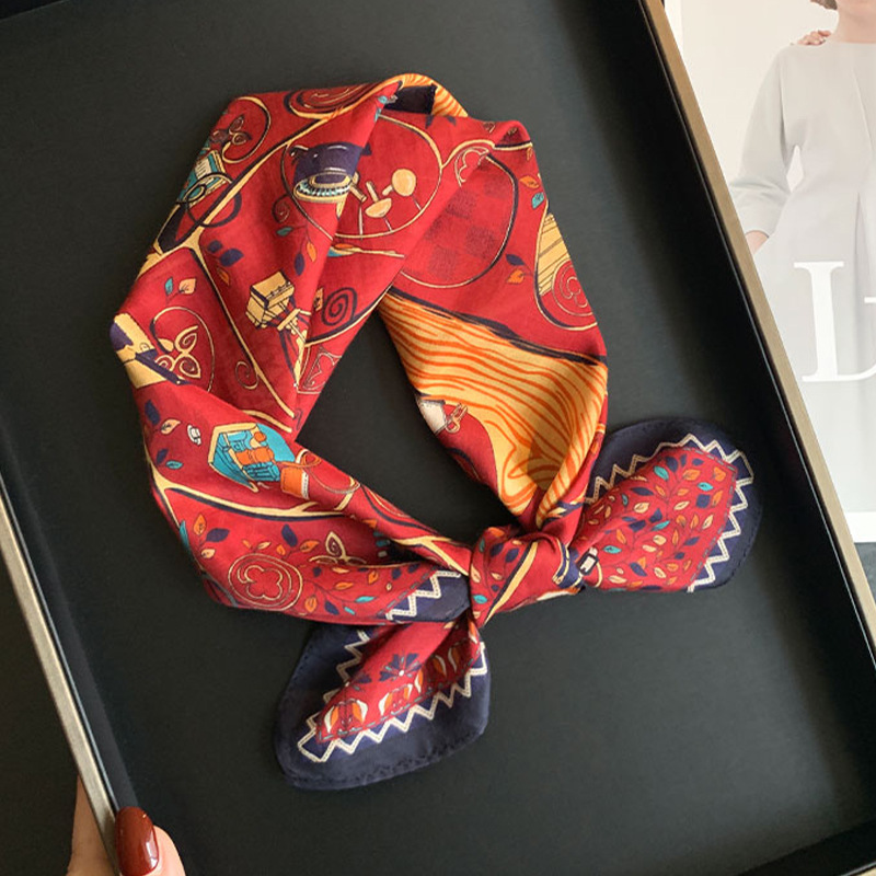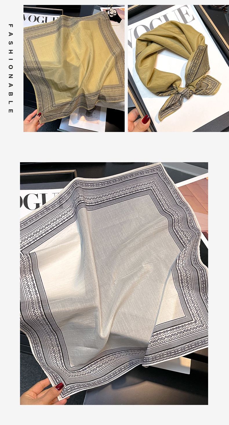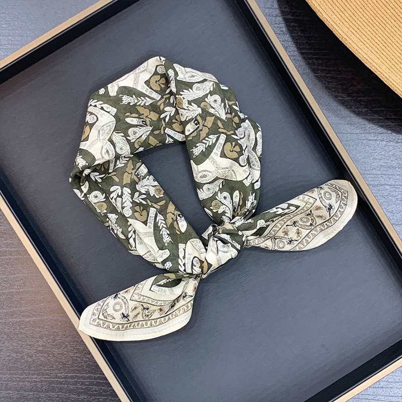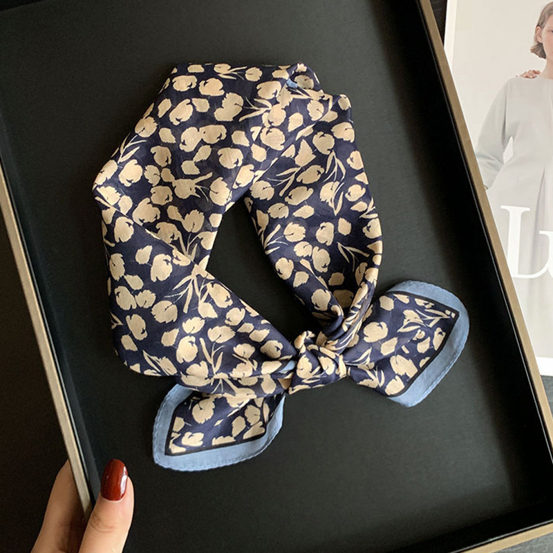 실크 치실! [미술 방황] 중세 흑백 실크 유기농면 스카프 여성 다용도 작은 사각형 스카프