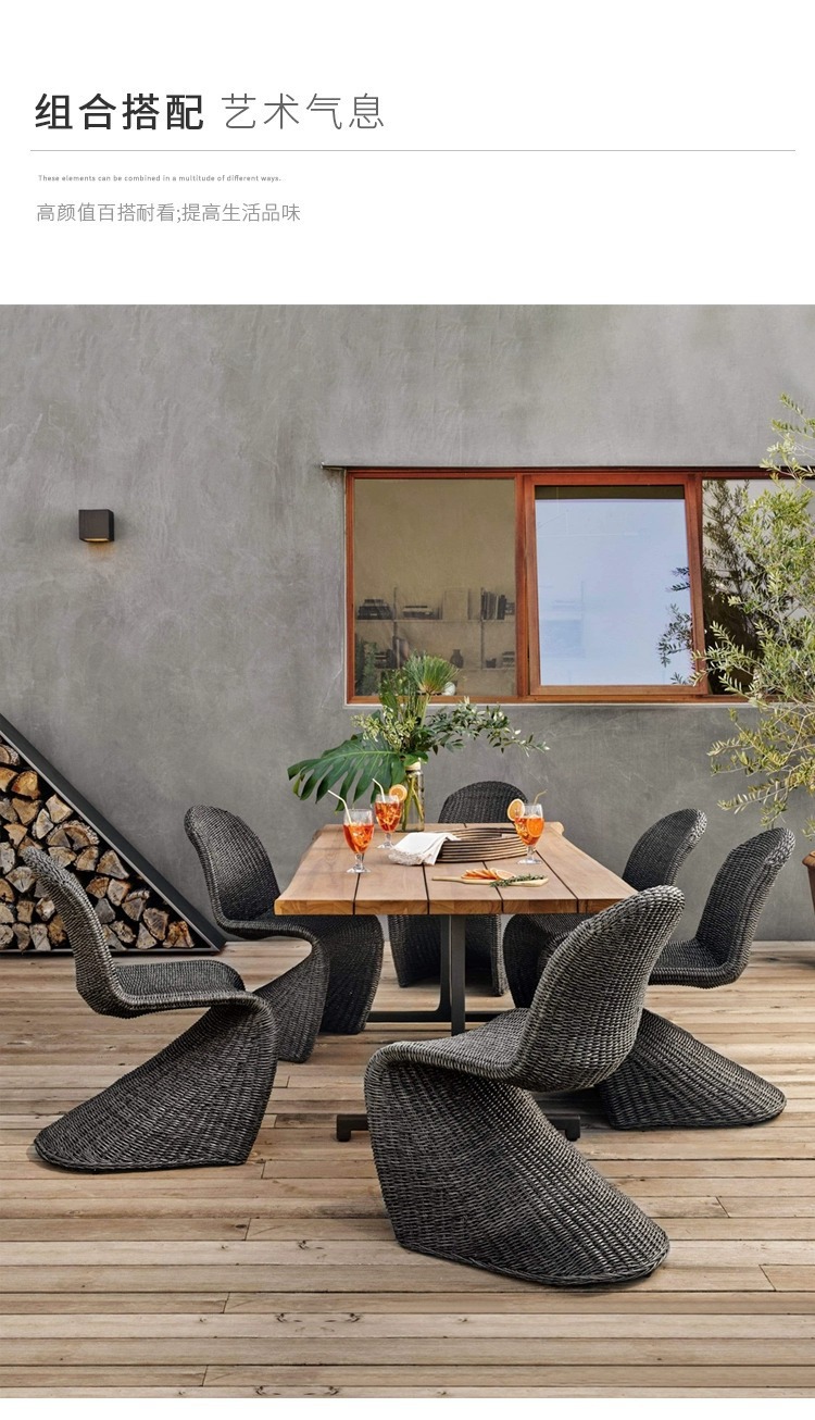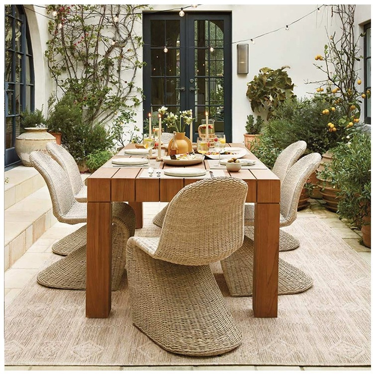 야외 안뜰, 테라스, 정원, B&B 라운지 공간, 발코니, 티크 테이블 및 등나무 의자 조합을 위한 레저 등나무 식탁 및 의자