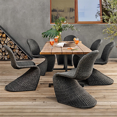 야외 안뜰, 테라스, 정원, B&B 라운지 공간, 발코니, 티크 테이블 및 등나무 의자 조합을 위한 레저 등나무 식탁 및 의자스토어 가기