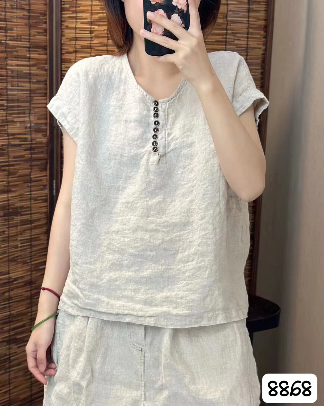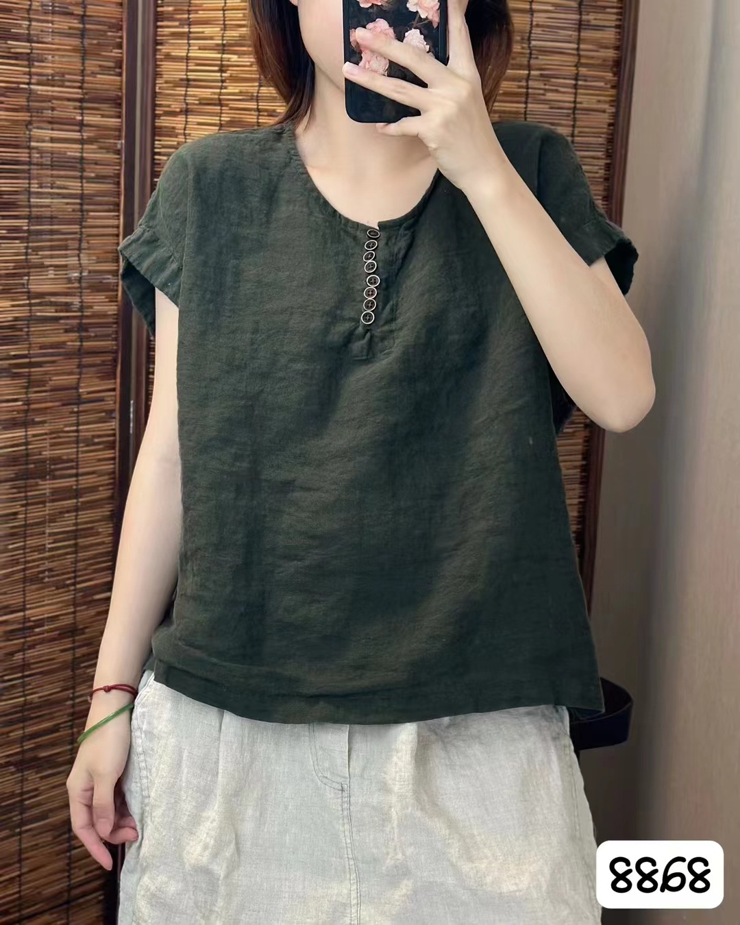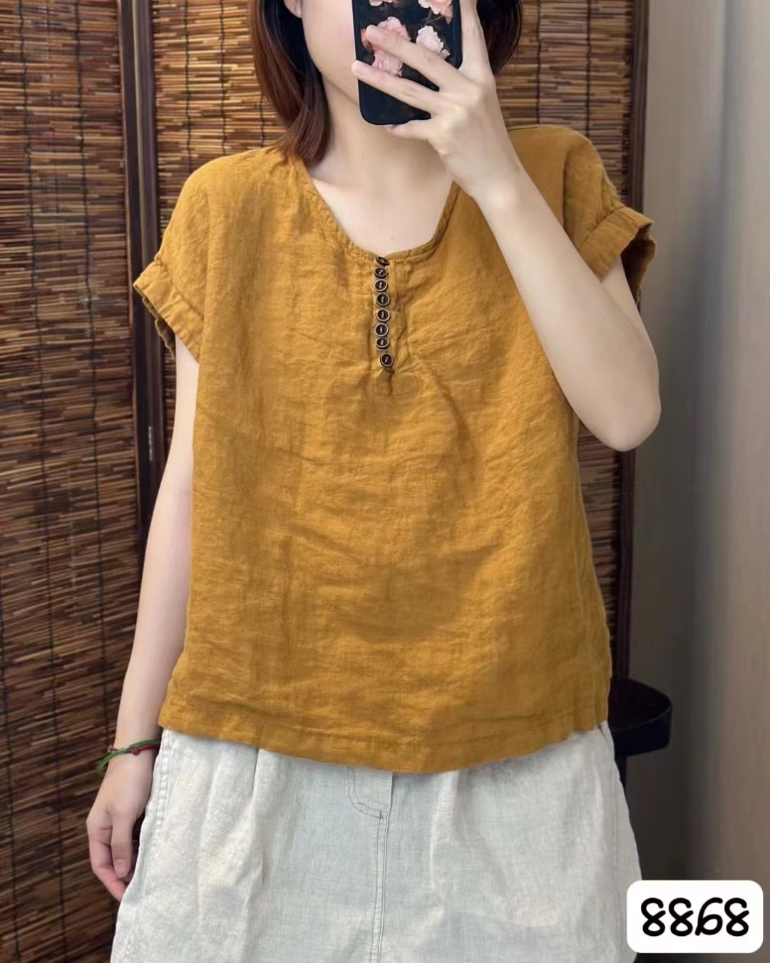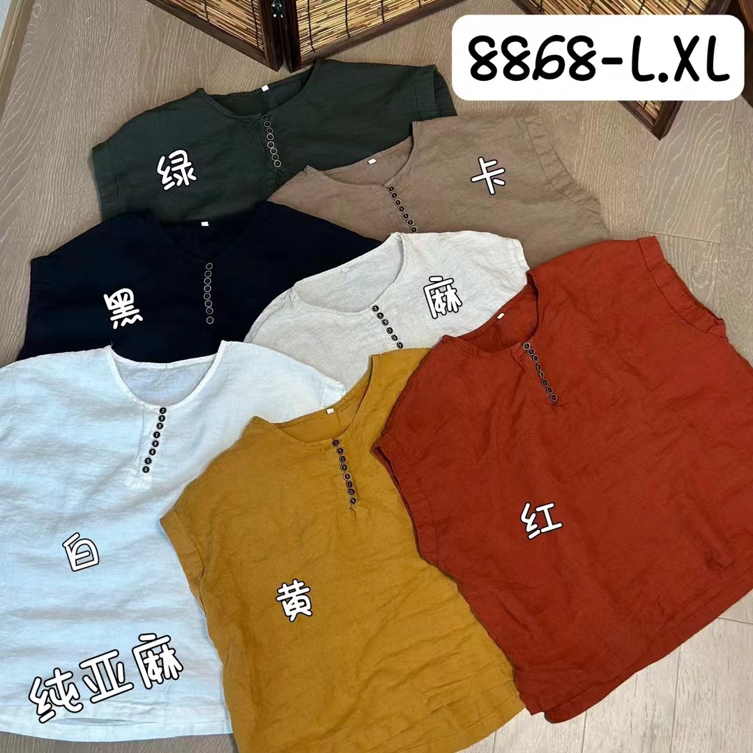 새로운 예술적 모래 세척 리넨 풀오버 최고 여성의 둥근 목 느슨한 짧은 소매 우아한 단색 티셔츠스토어 가기