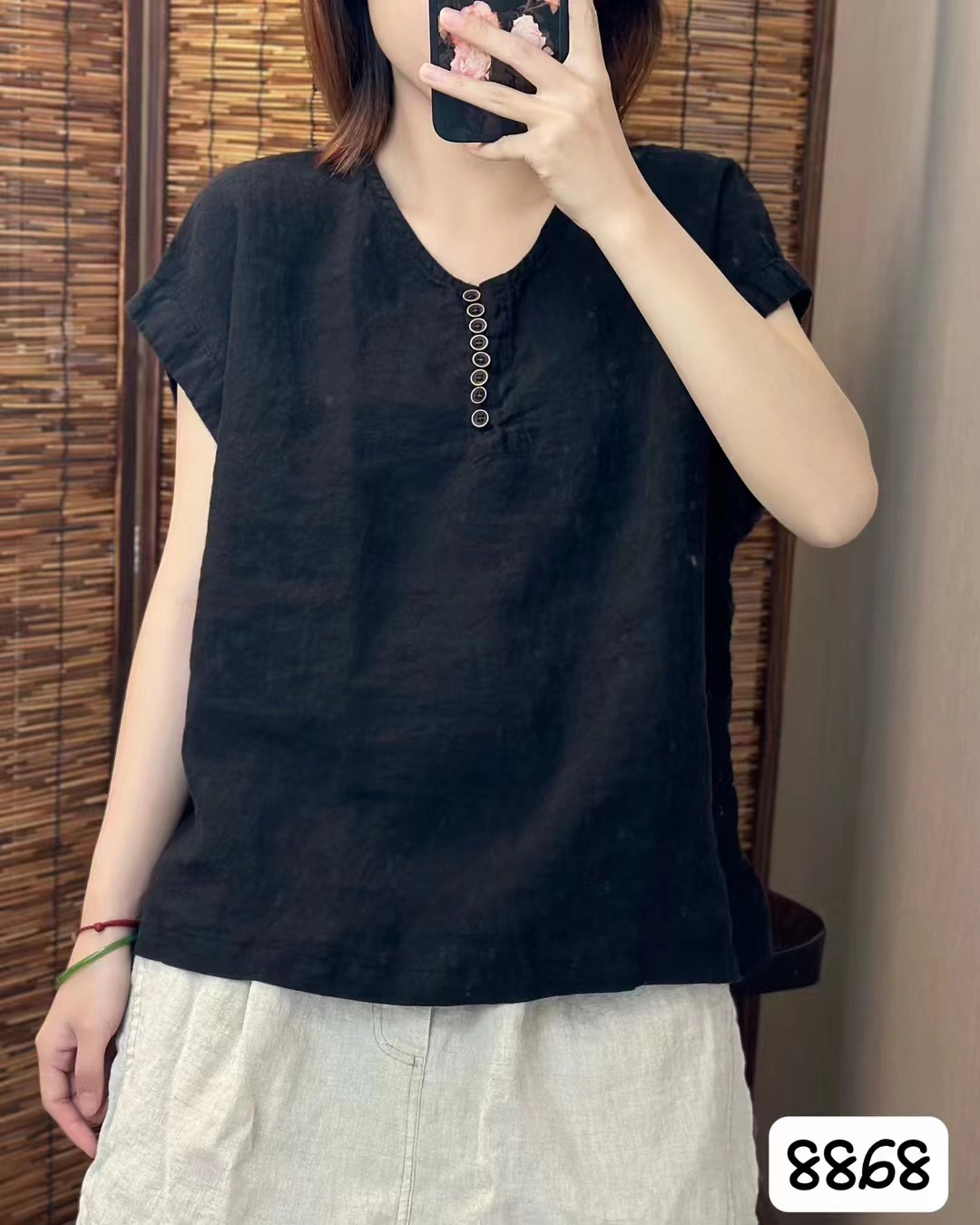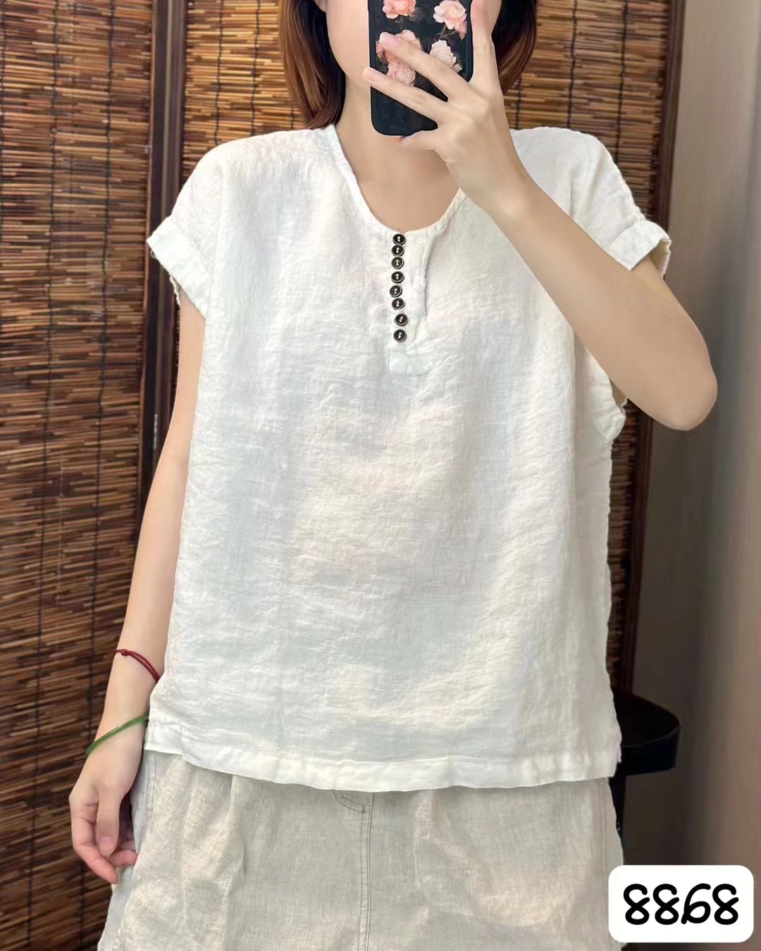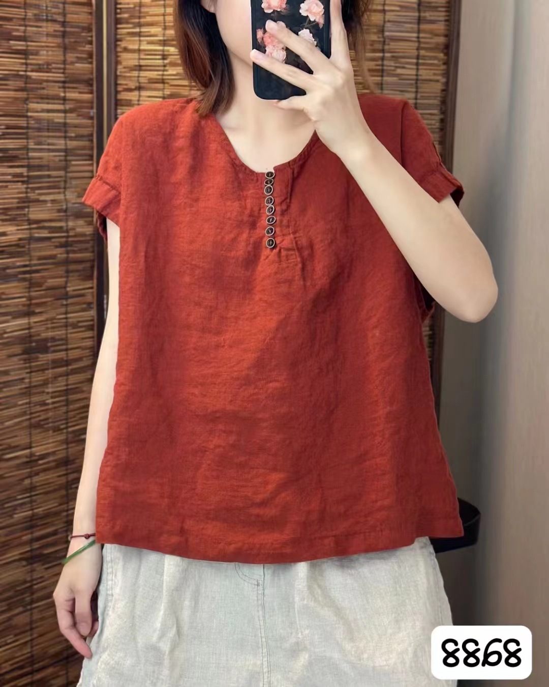 새로운 예술적 모래 세척 리넨 풀오버 최고 여성의 둥근 목 느슨한 짧은 소매 우아한 단색 티셔츠스토어 가기