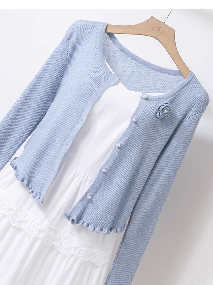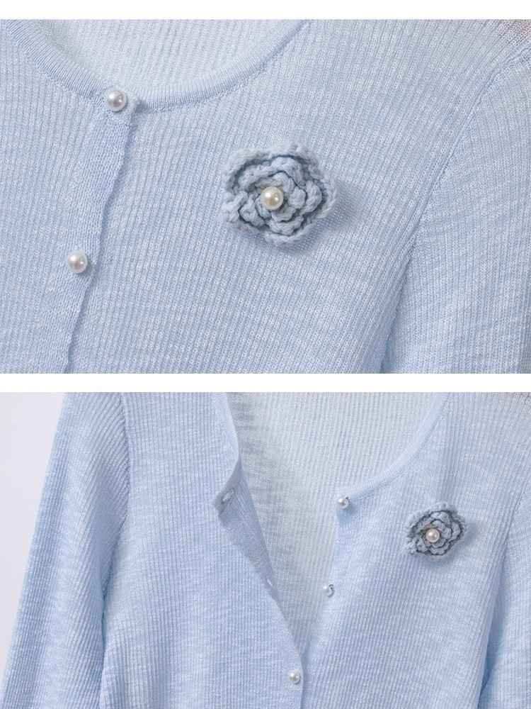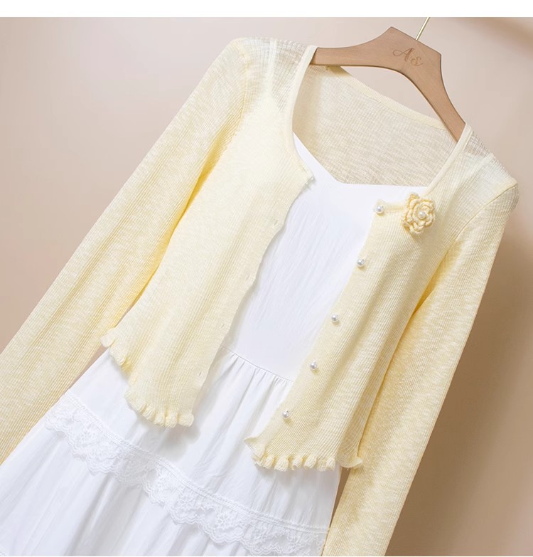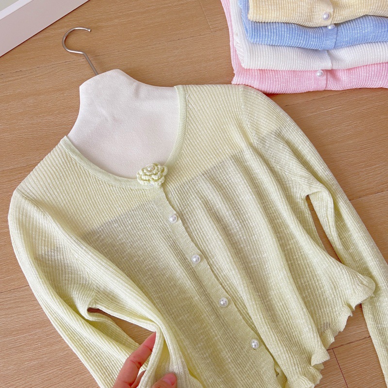 2025 슈퍼 요정 우아한 니트 코트 여성용 선 스크린 코트 얇은 봄과 여름 새로운 패션 조커스토어 가기