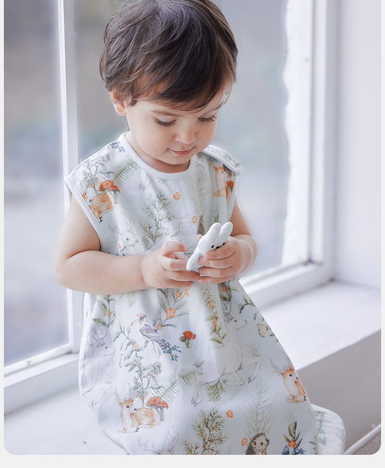 Xikati 아기 침낭 여름 새로운 어린이 민소매 구름 같은 거즈 아기 얇은 조끼 스타일 시원한 잠옷스토어 가기