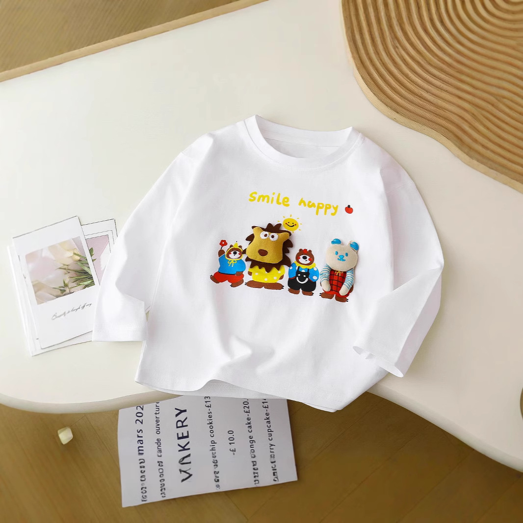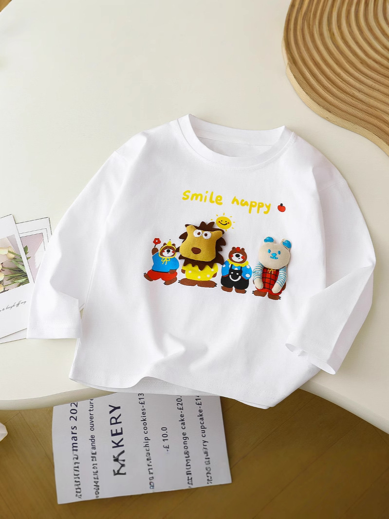 아동용 긴팔 셔츠, 남아 여아용, 봄 가을용, 만화 입체 인형 동물 아기 상의, 베이스 레이어 셔츠, 유아복