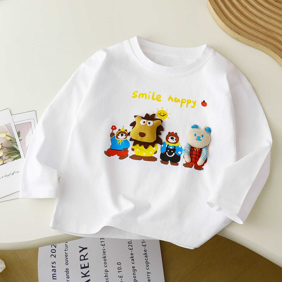 아동용 긴팔 셔츠, 남아 여아용, 봄 가을용, 만화 입체 인형 동물 아기 상의, 베이스 레이어 셔츠, 유아복스토어 가기