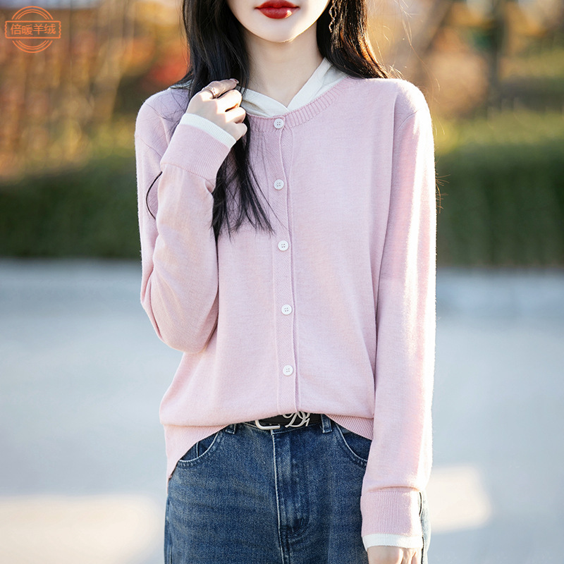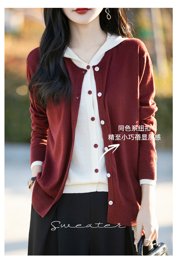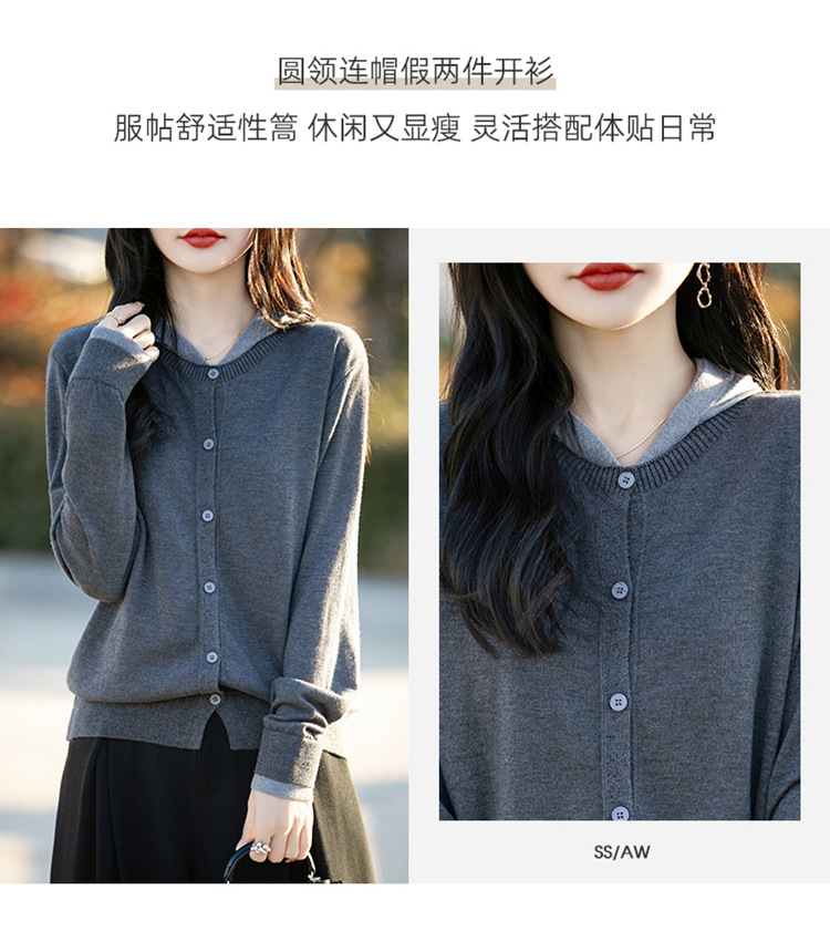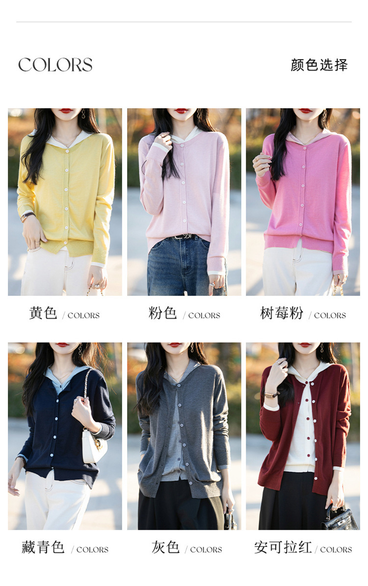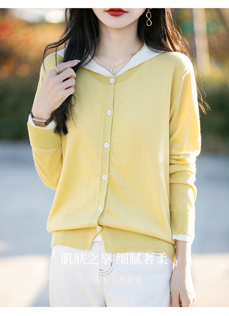 대비 색상 가짜 투피스 후드 니트 카디건 여성용 소모사 울 캐주얼 재킷 스웨터 새로운 다용도 컬러 블록 탑