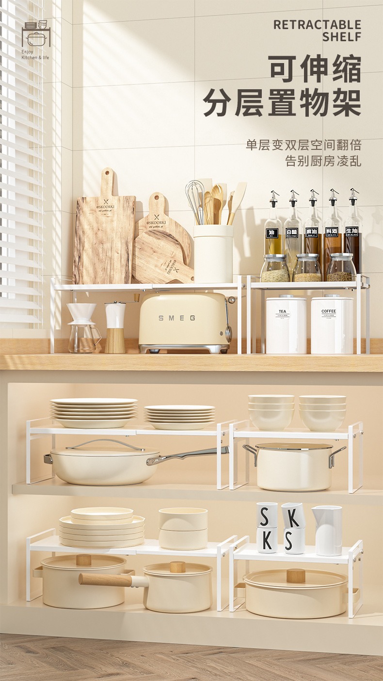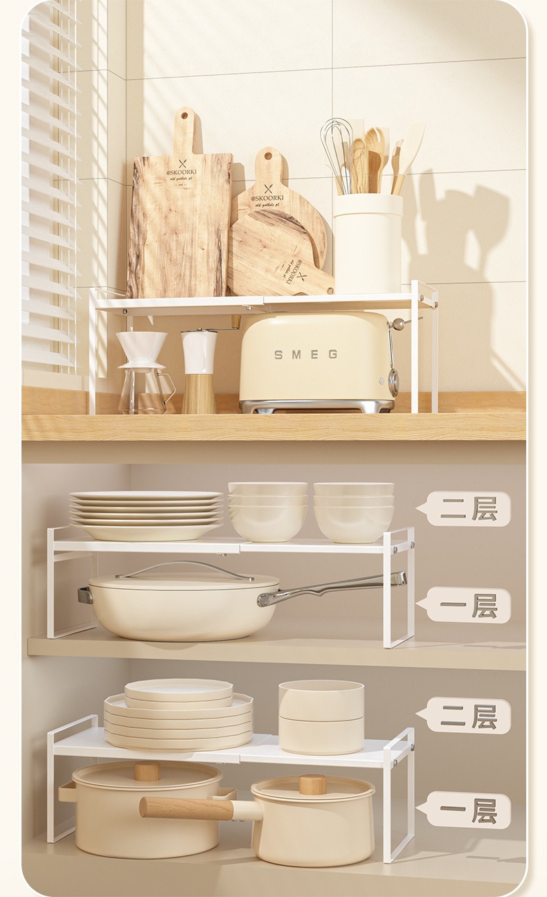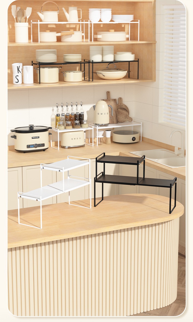 확장형 주방 수납 선반, 조리대 계층형 선반, 캐비닛 칸막이, 캐비닛 수납, 조미료 냄비 선반, 데스크탑 소형 선반