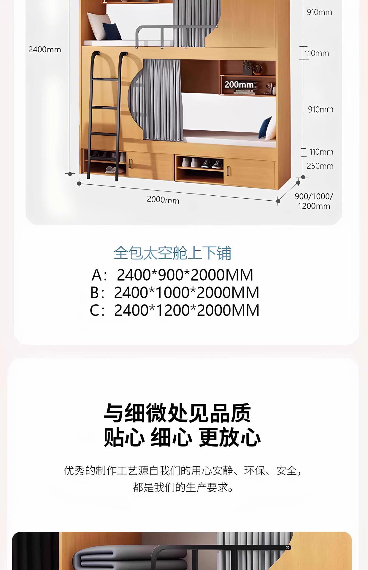 • [심플한 초승달 모델] 길이 2000 폭 1200 높이 2400mm 싱글 침대