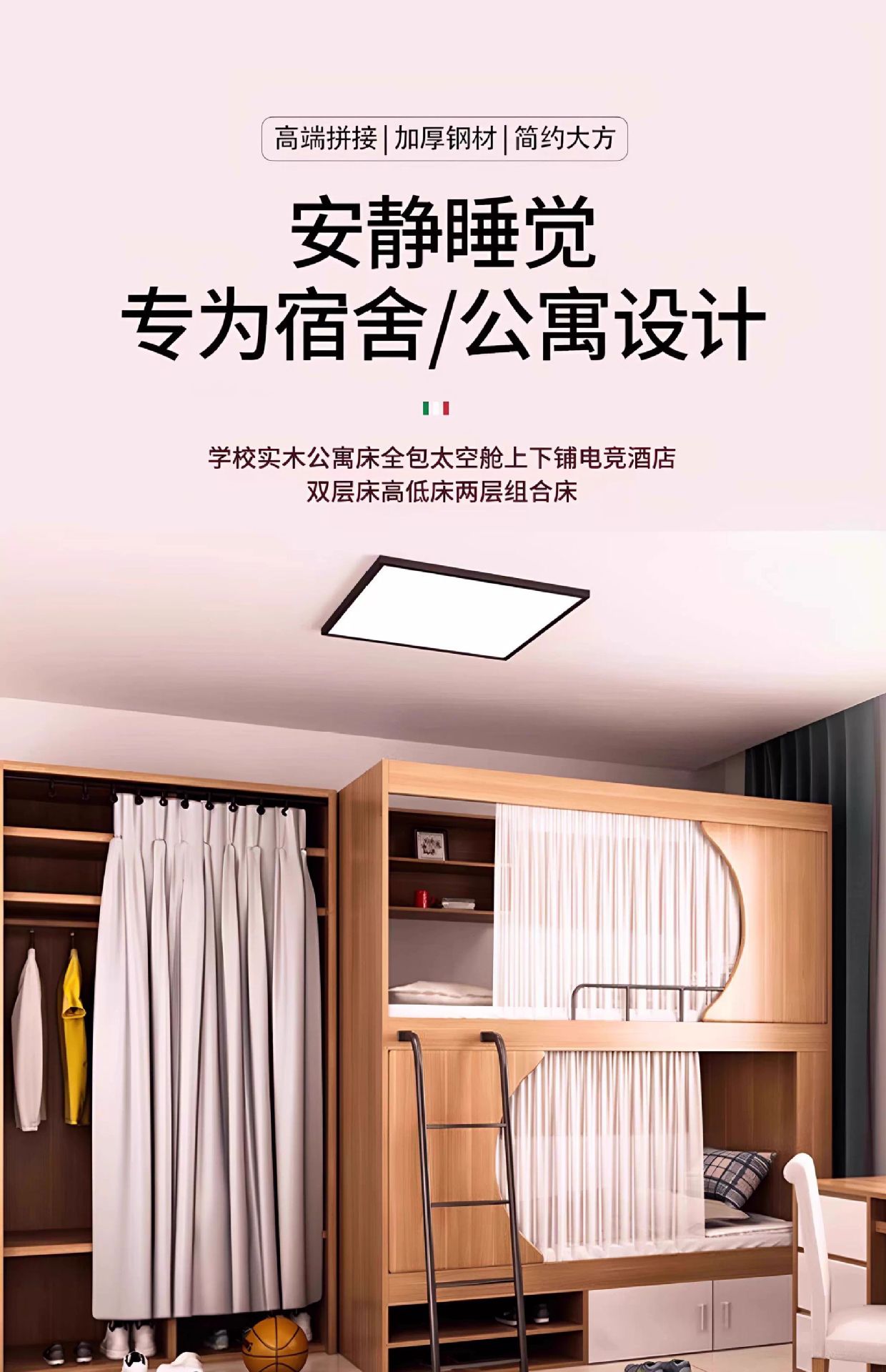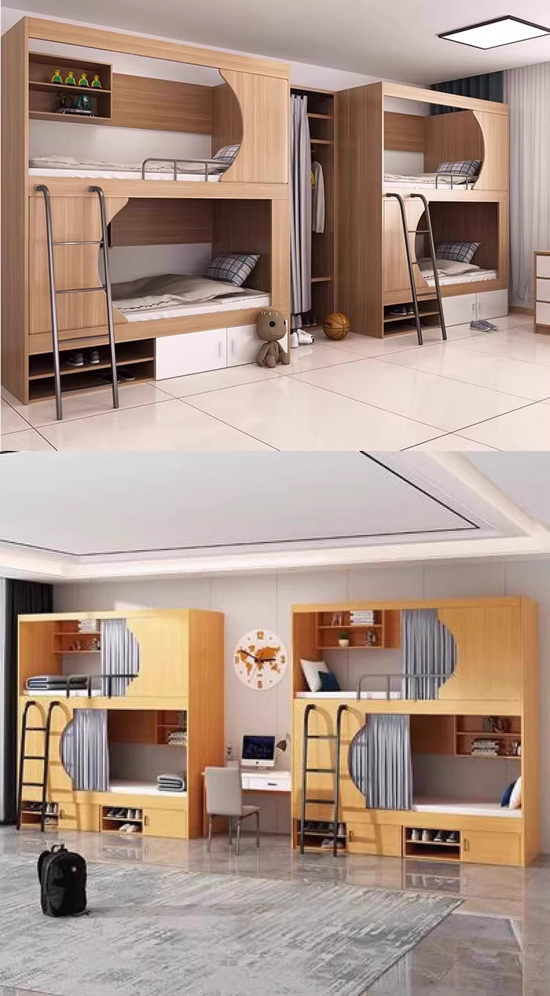 공간 캡슐 학교 더블 간단한 벙크 침대 청소년 호스텔 침대 및 침대 어린이 침대 홈 기숙사 아파트 침대