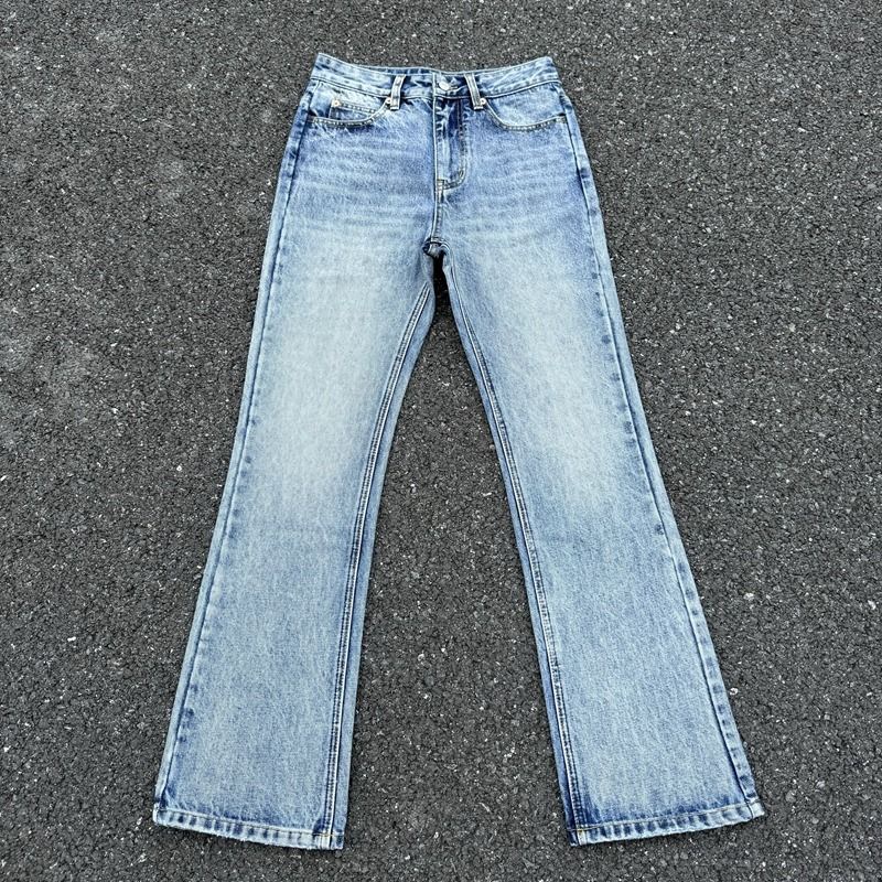 라이트 블루 클린핏 부츠컷 청바지 눈송이 패턴 통근 캐주얼 슬림핏 스트레치 바지 남성용 다용도