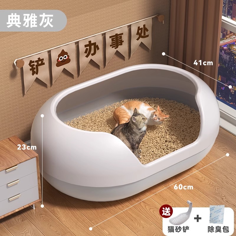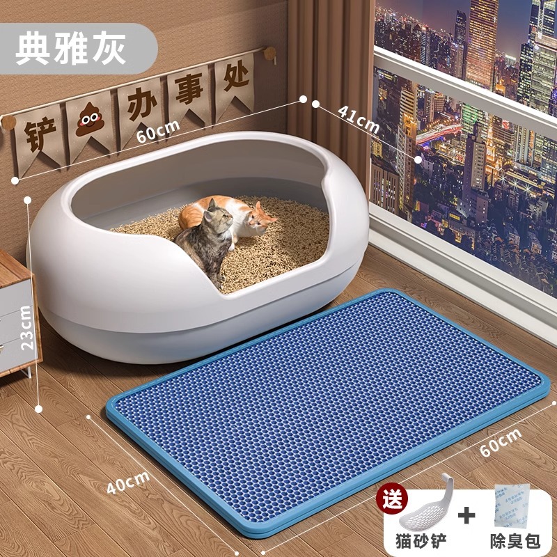 • 우아한 그레이 + 비말 방지 고양이 모래 매트, 무료 고양이 모래 삽 + 탈취 가방 [고양이 15kg 마리/여러 마리에 적합]