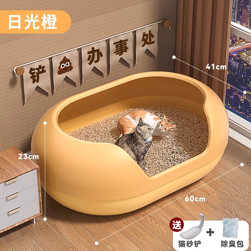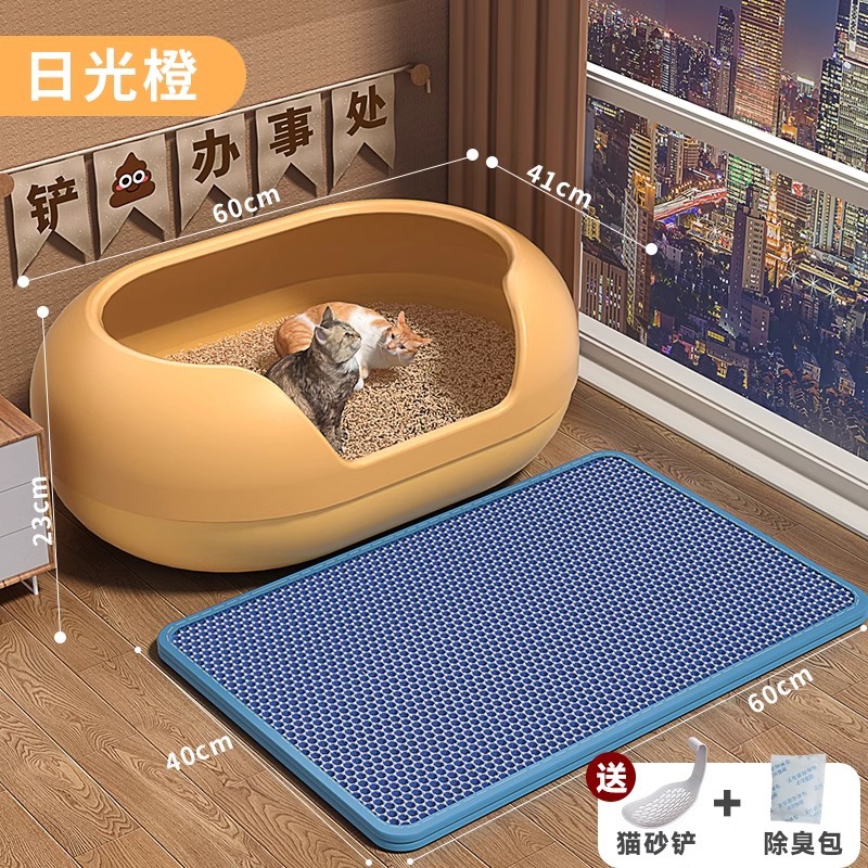• 데이라이트 오렌지 + 비말 방지 모래 고양이 모래 매트, 무료 고양이 모래 삽 + 탈취 가방 [고양이 15kg 마리/여러 마리에 적합]