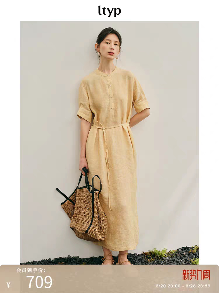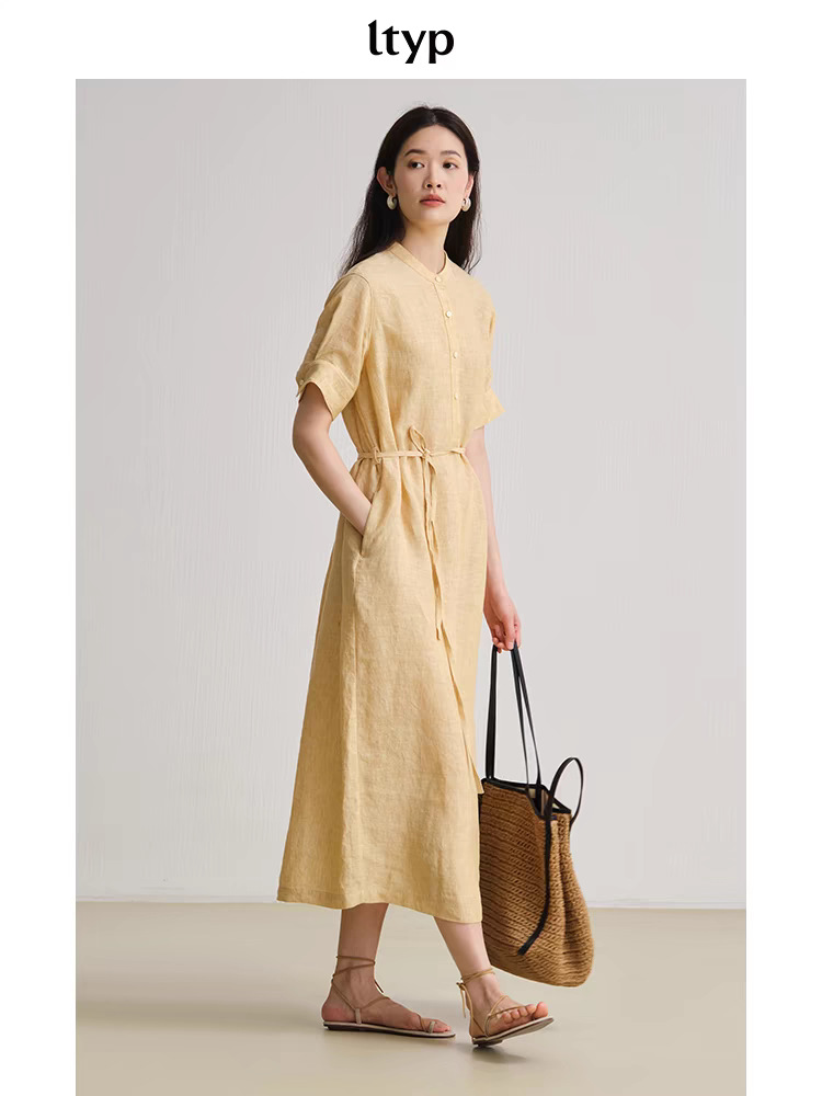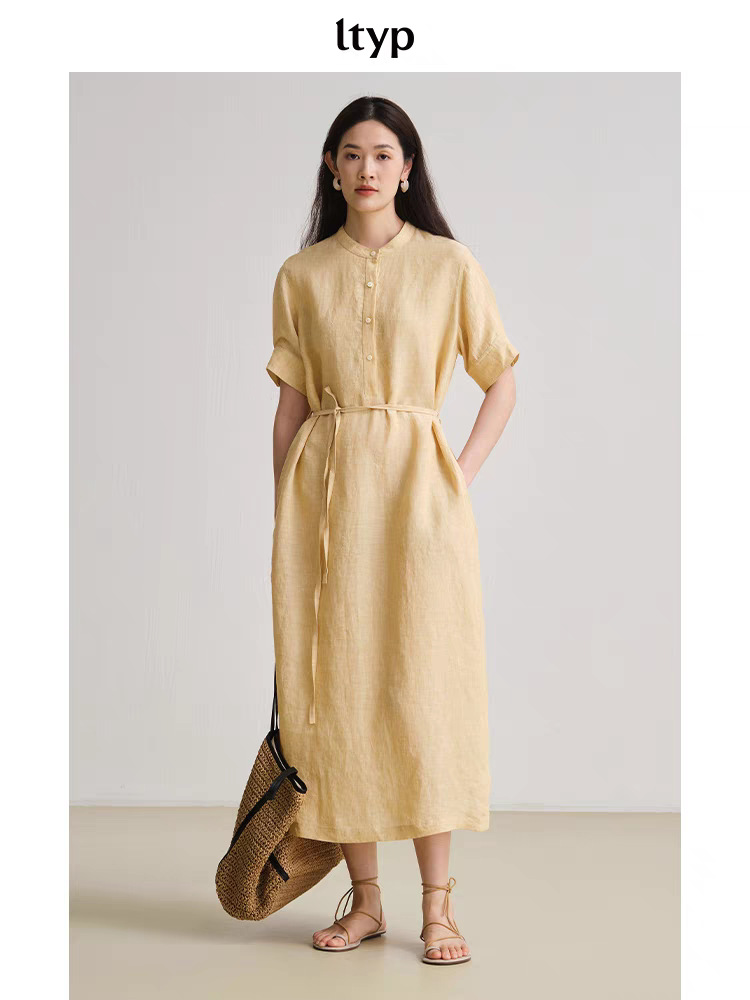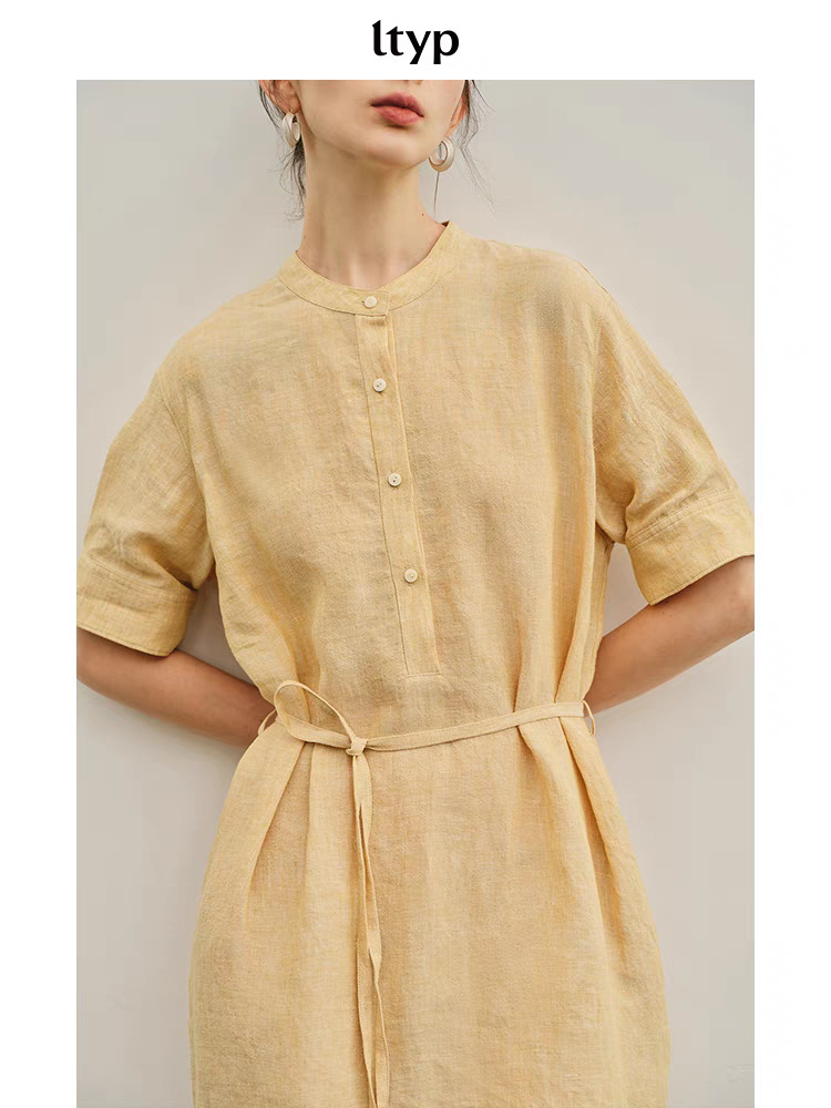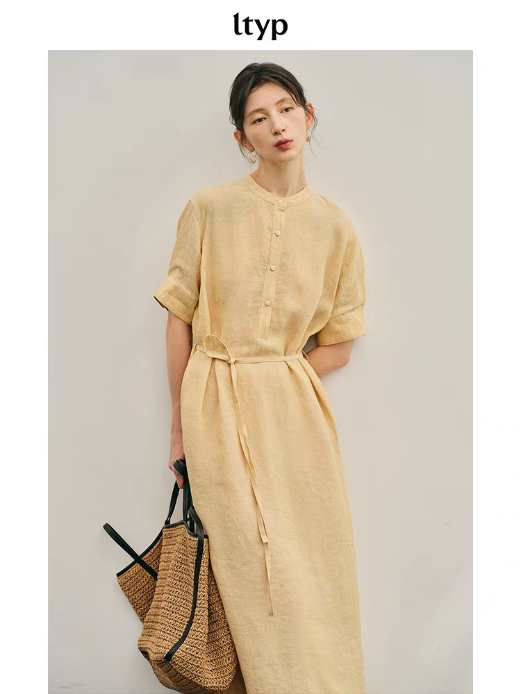 여행 오리지널 대마 하프 플래킷 새로운 중국 스타일 드레스 여성을위한 예술적 라운드 넥 반팔 롱 스커트 여름스토어 가기