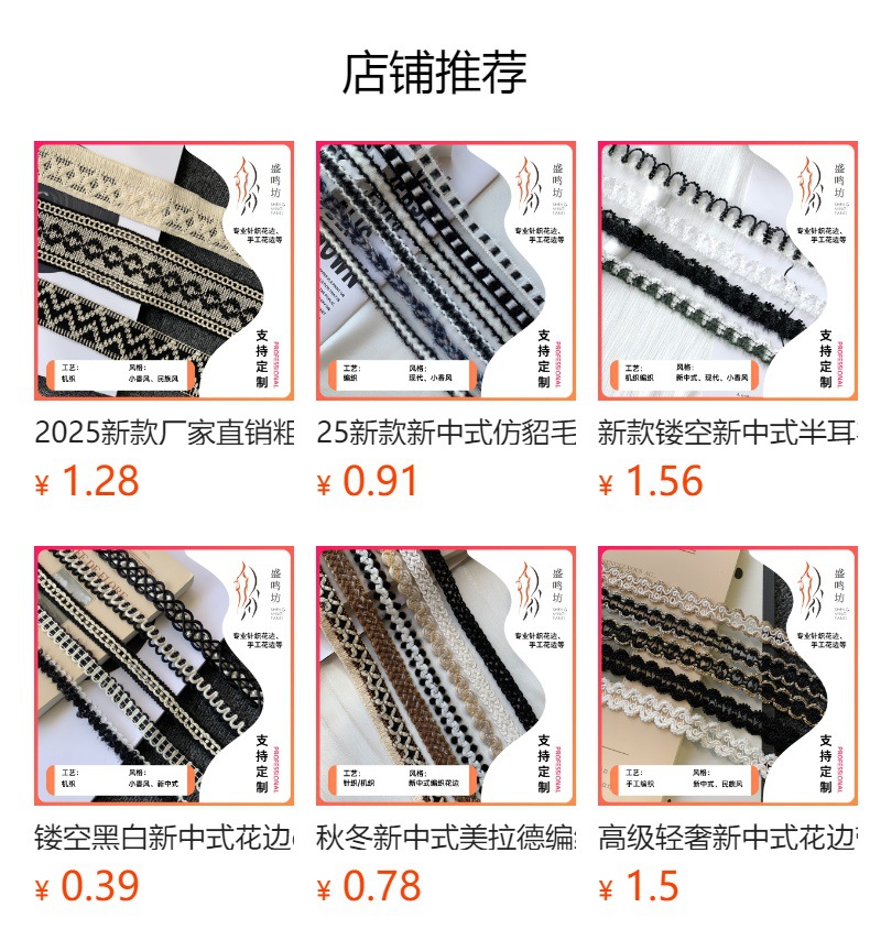 고급 새로운 중국 스타일 레이스 액세서리 면사 땋은 DIY 수제 작은 향기로운 리본 크리 에이 티브 딱정벌레 프레스 엣지 테이프스토어 가기