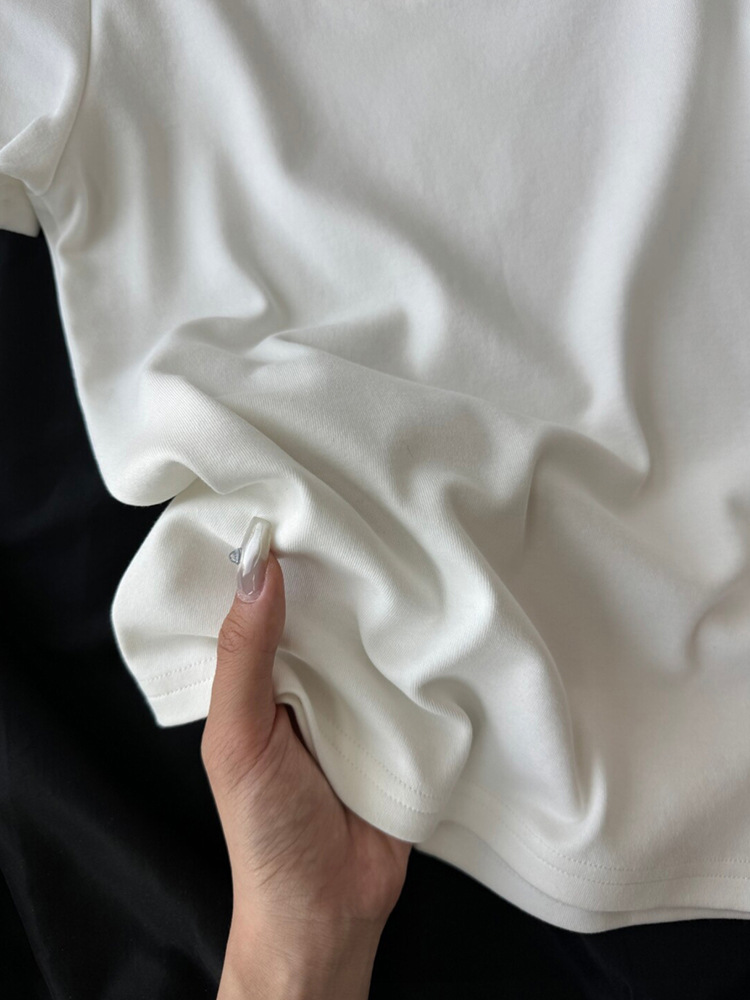 • 【라운드넥 기모】 화이트 그레이