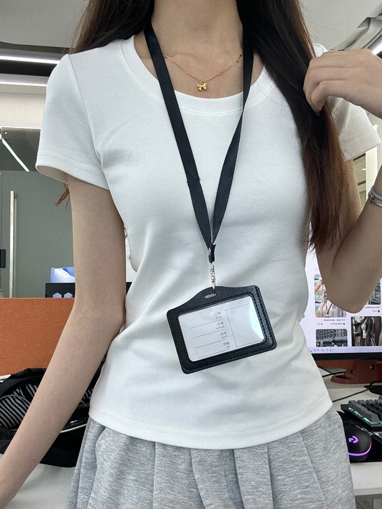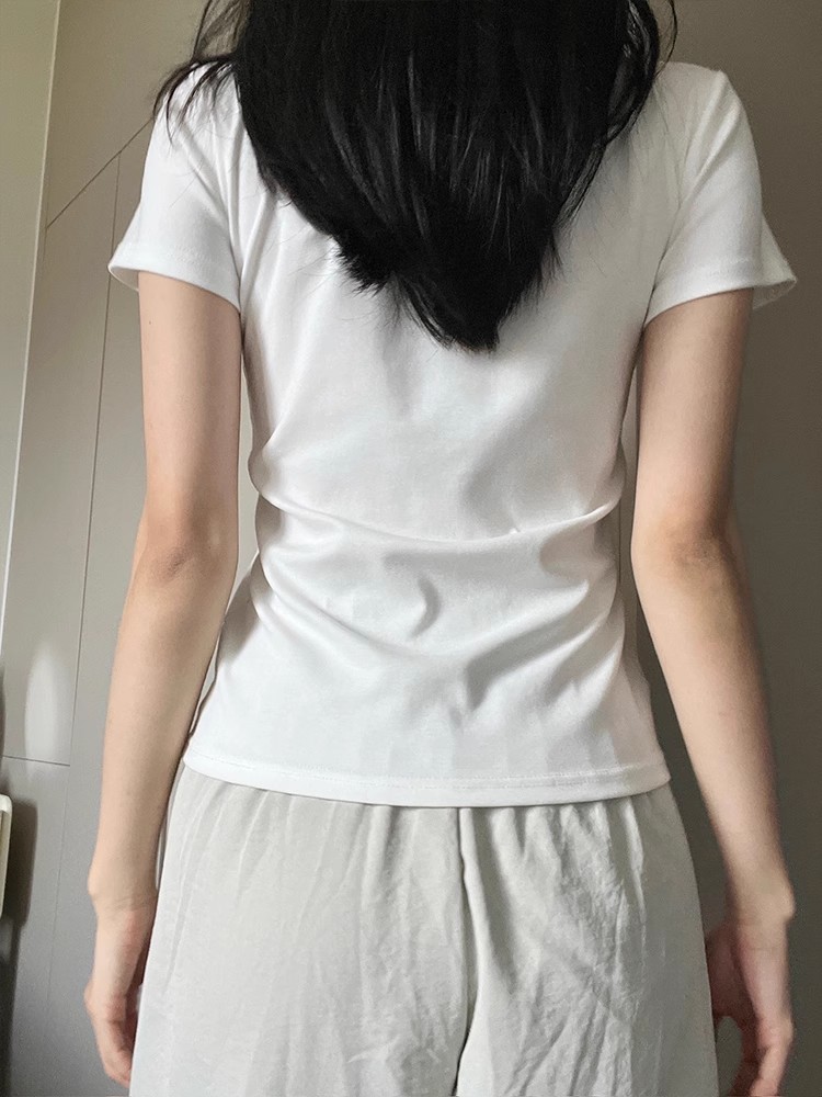 어깨 반팔 티셔츠 여자 2025 년 여름 새 달콤한 스파이스 소녀 라운드 넥 슬림 핏 스파이스 걸 슬림 핏 캐주얼 올 매치 탑스토어 가기