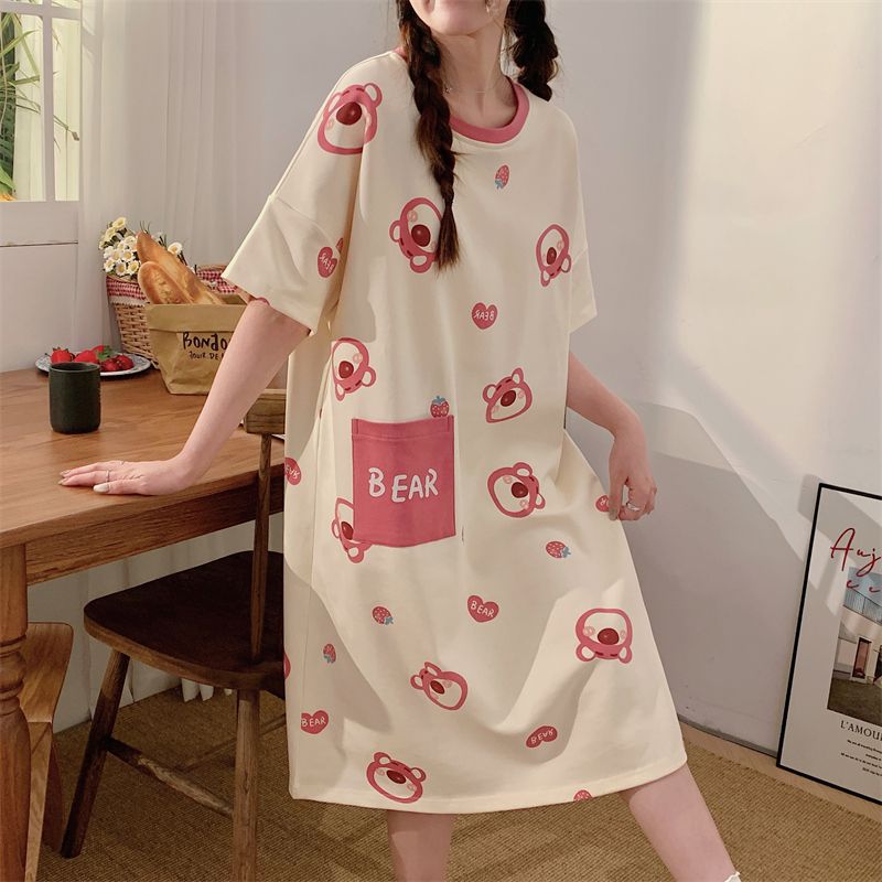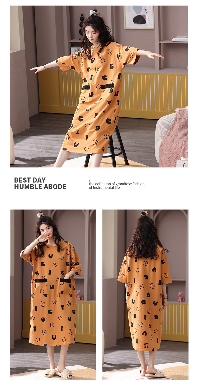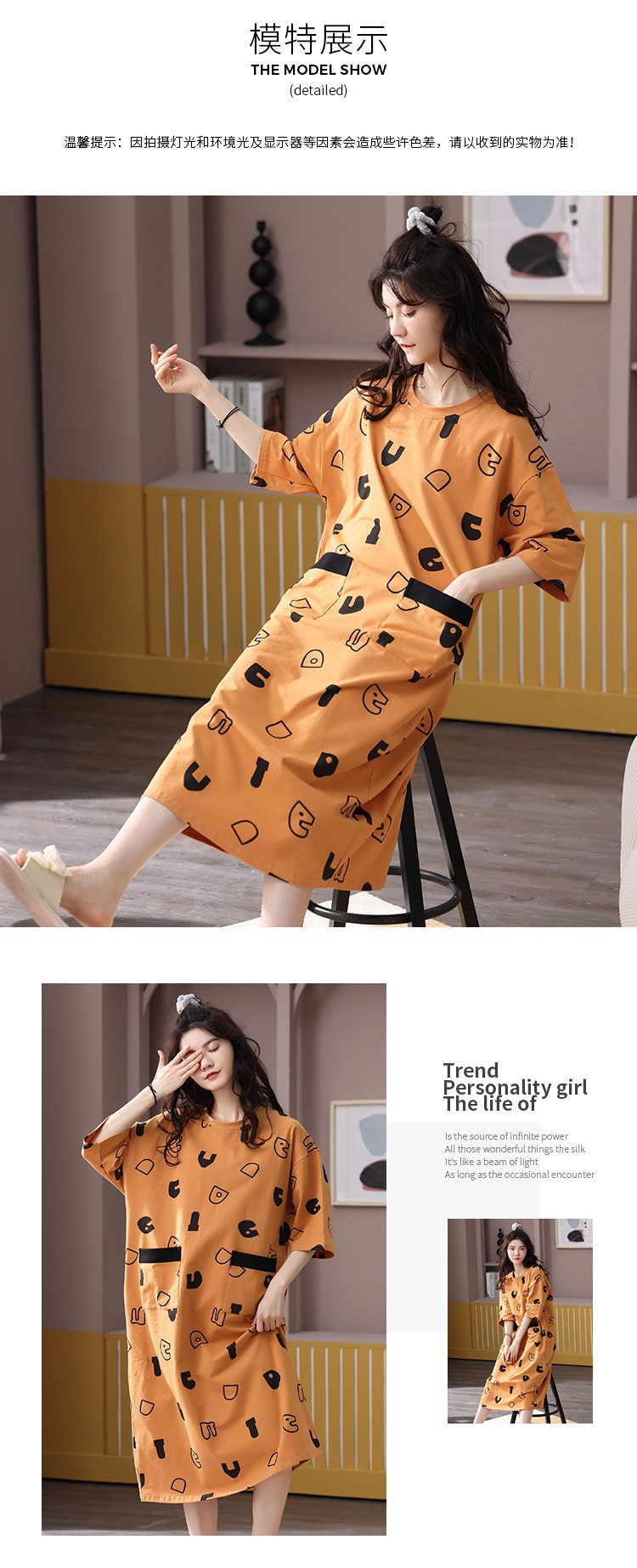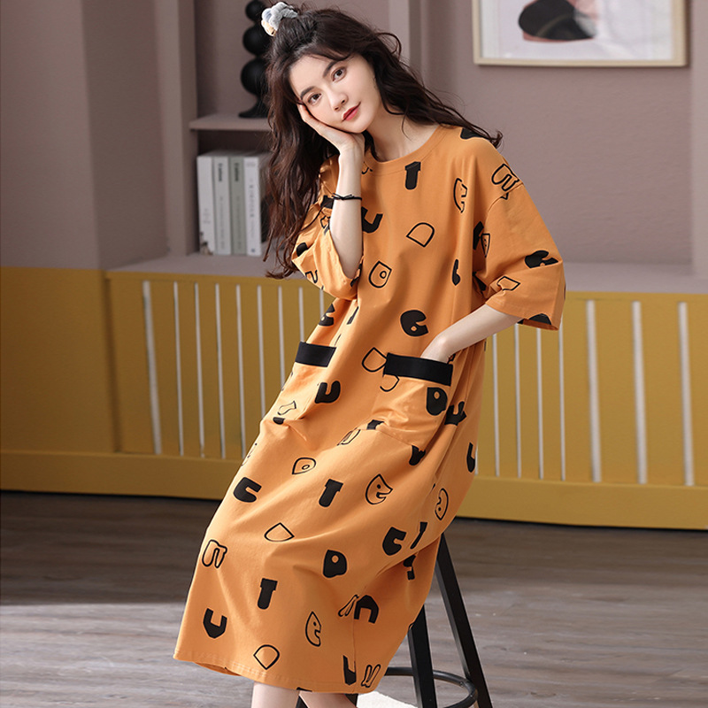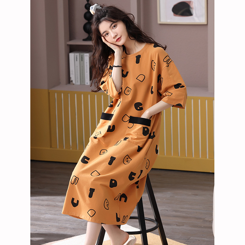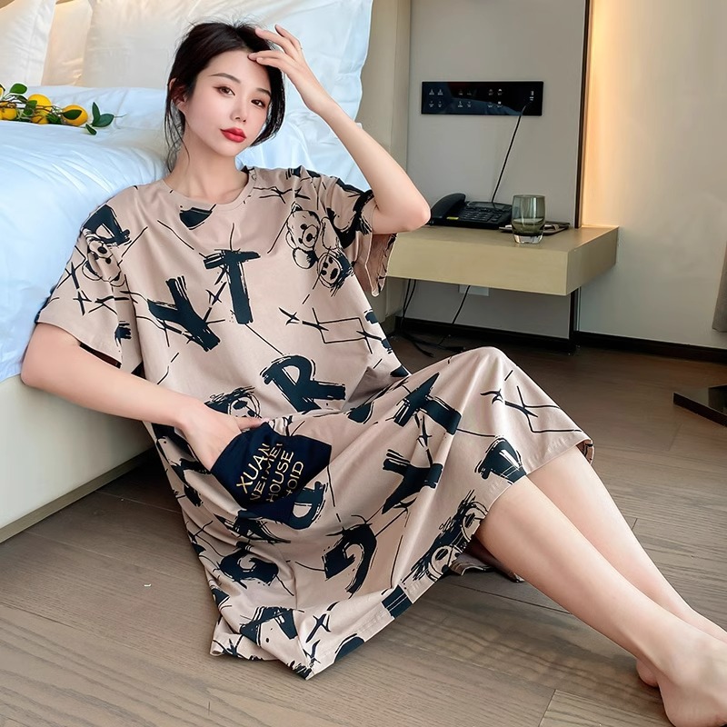 2025 새로운 임산부 나이트드레스 여성의 여름 느슨한 플러스 사이즈 통통녀 파자마 여성 여름 반팔 얇은 홈 옷스토어 가기