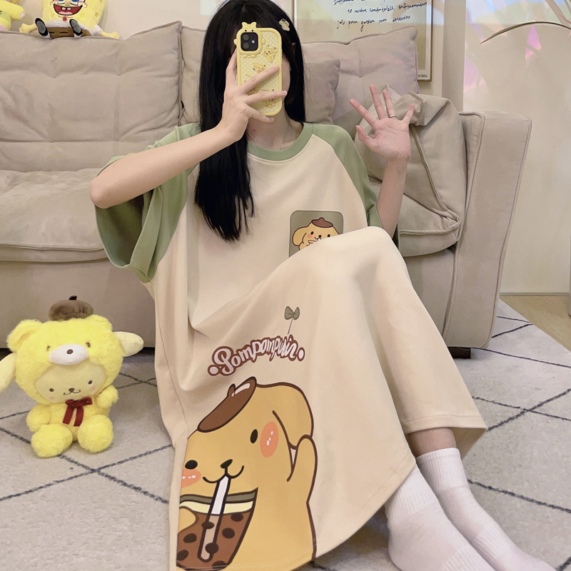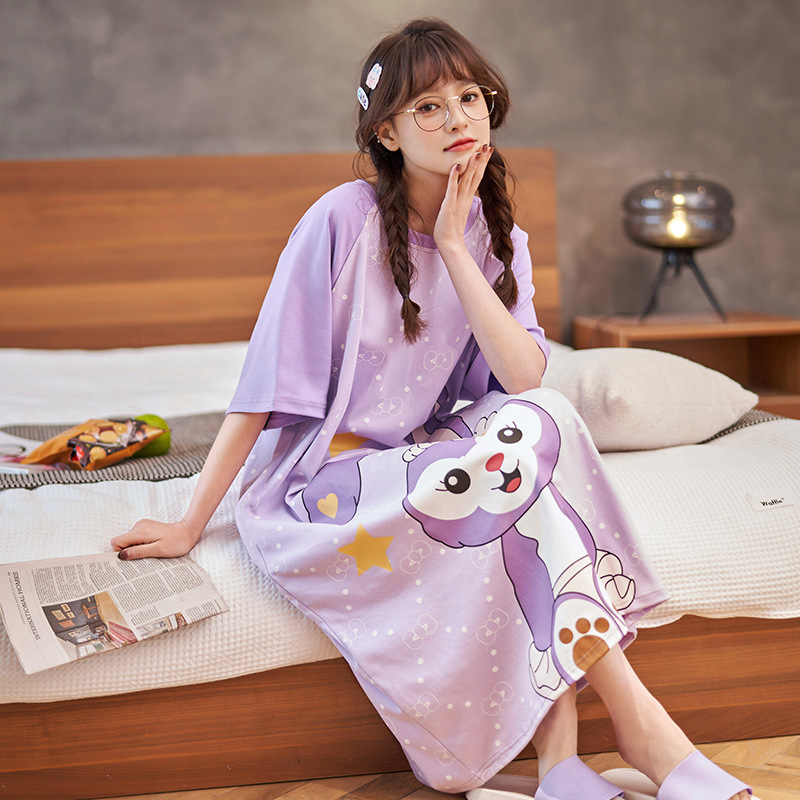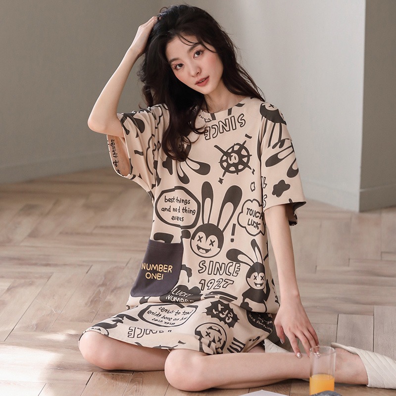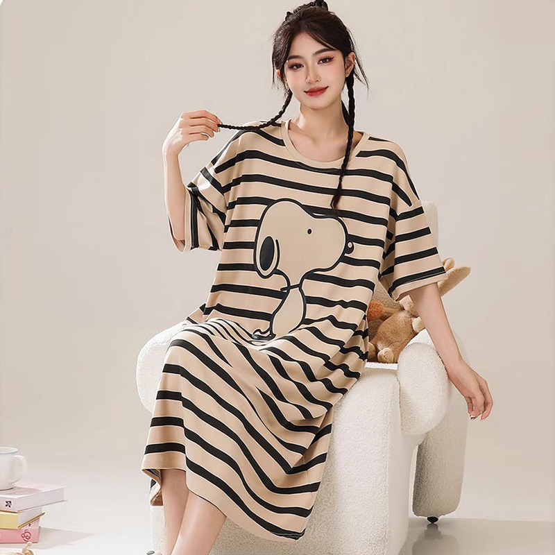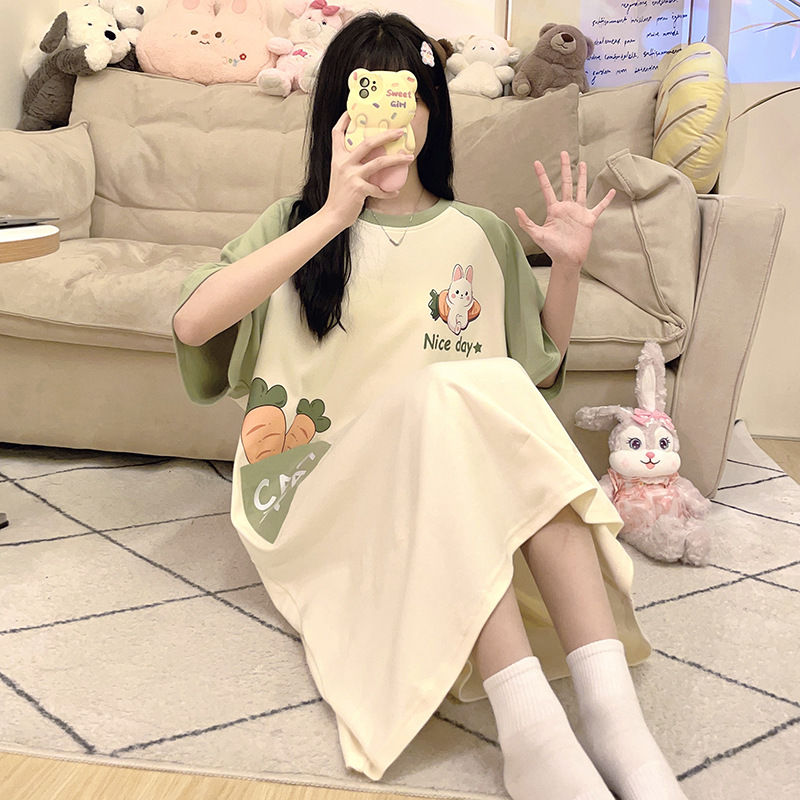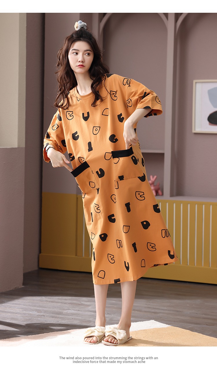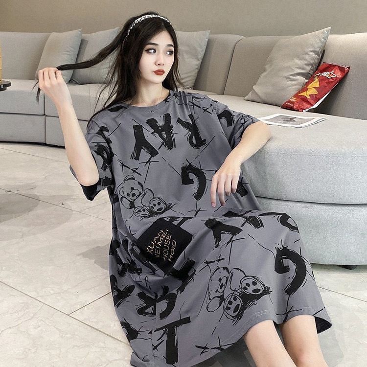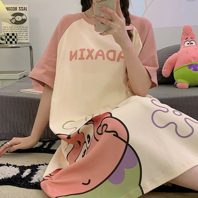 2025 새로운 임산부 나이트드레스 여성의 여름 느슨한 플러스 사이즈 통통녀 파자마 여성 여름 반팔 얇은 홈 옷스토어 가기