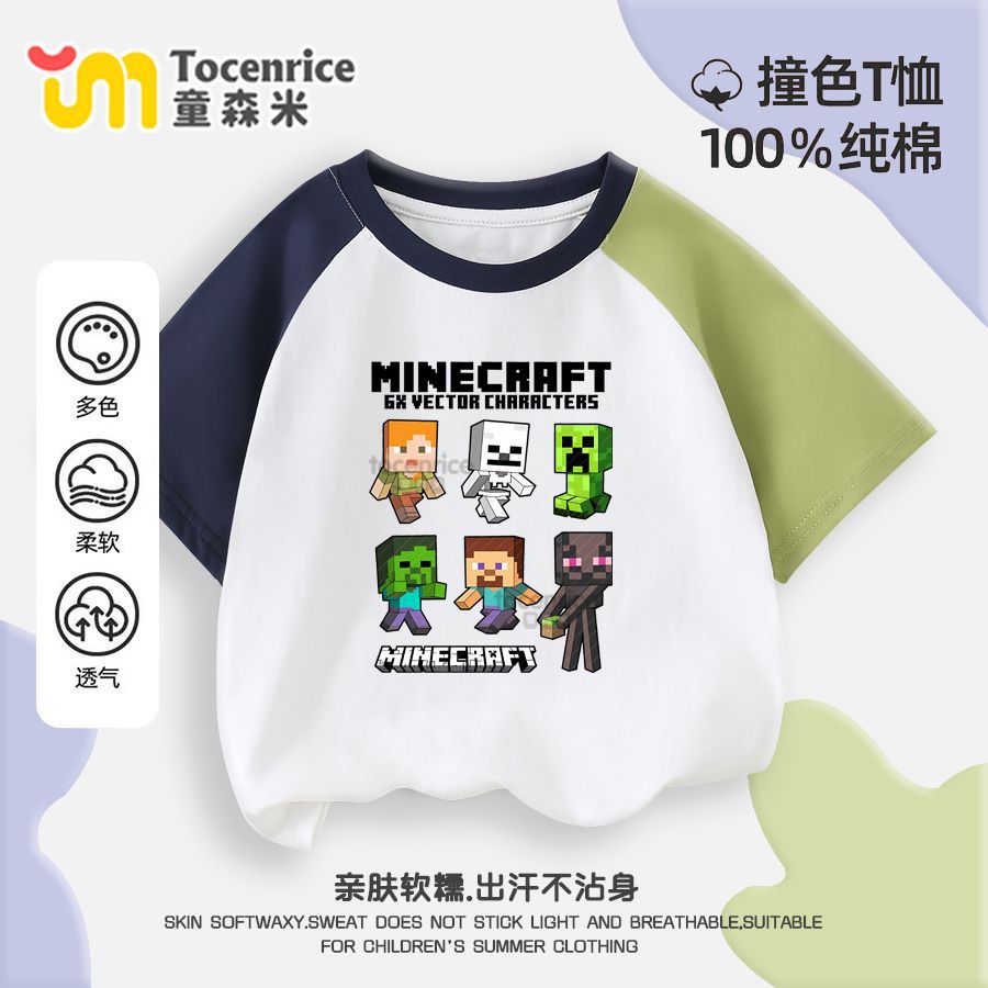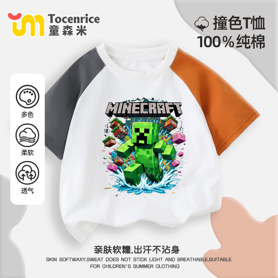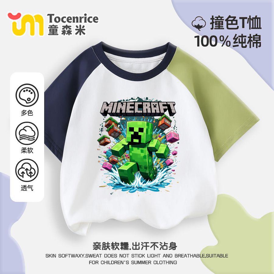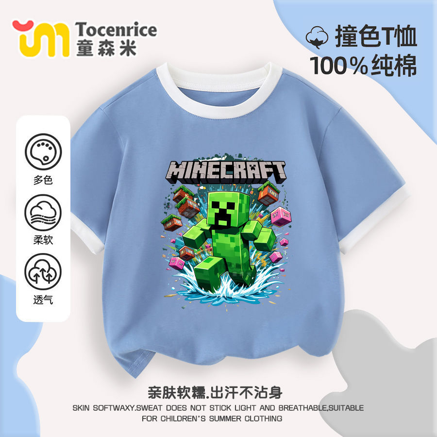 마인 크래프트 마이 월드 의류 어린이 반팔 티셔츠 여름 소년 반소매 컬러 매칭 코튼 탑 트렌디 7