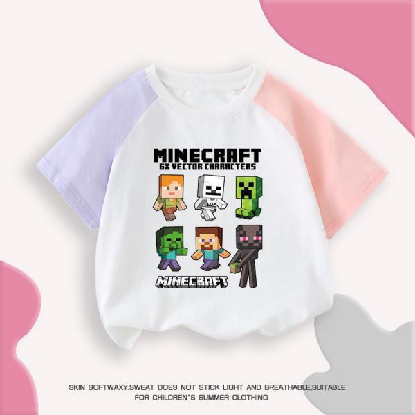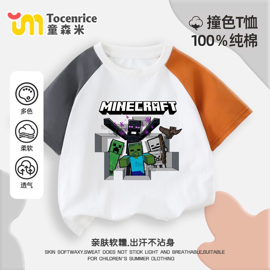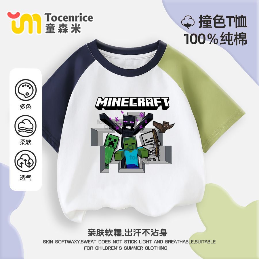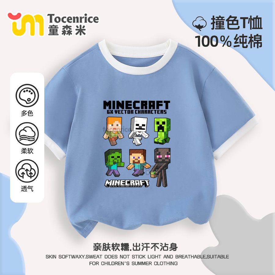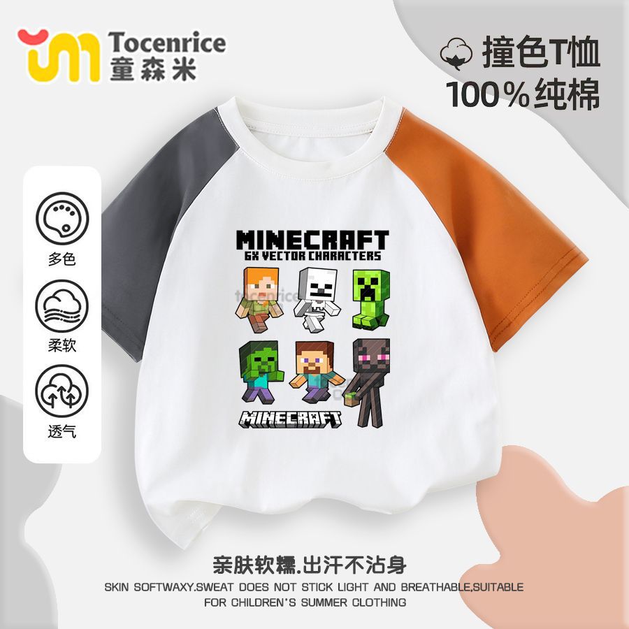 마인 크래프트 마이 월드 의류 어린이 반팔 티셔츠 여름 소년 반소매 컬러 매칭 코튼 탑 트렌디 7