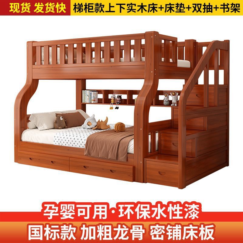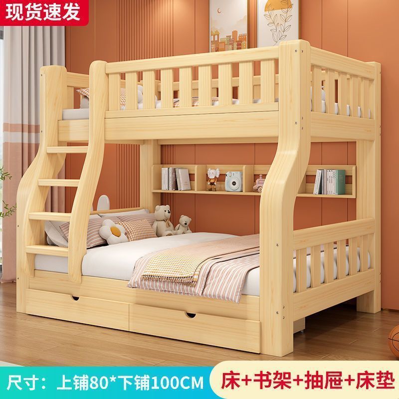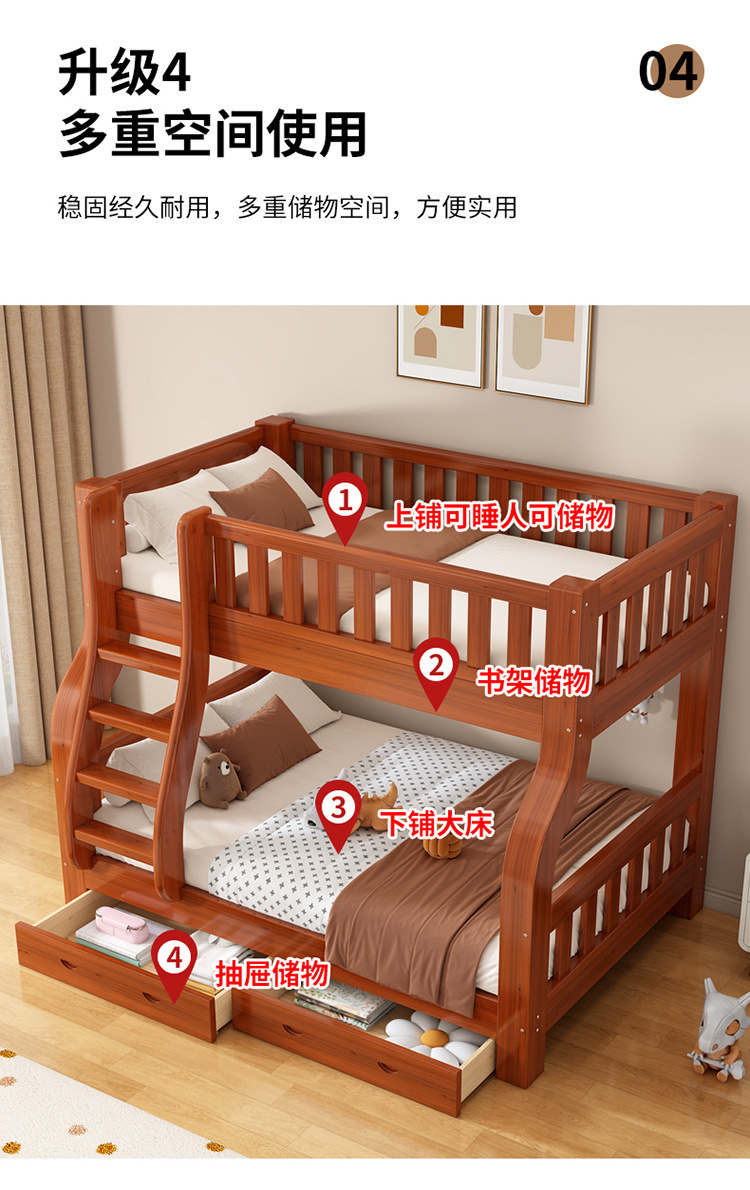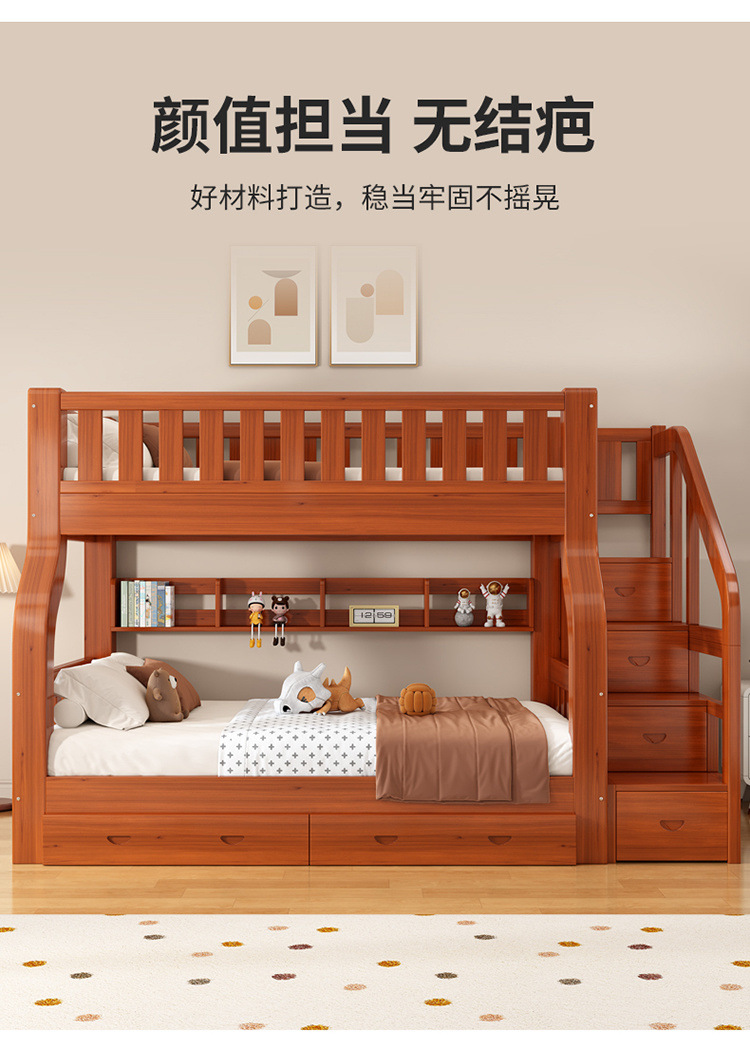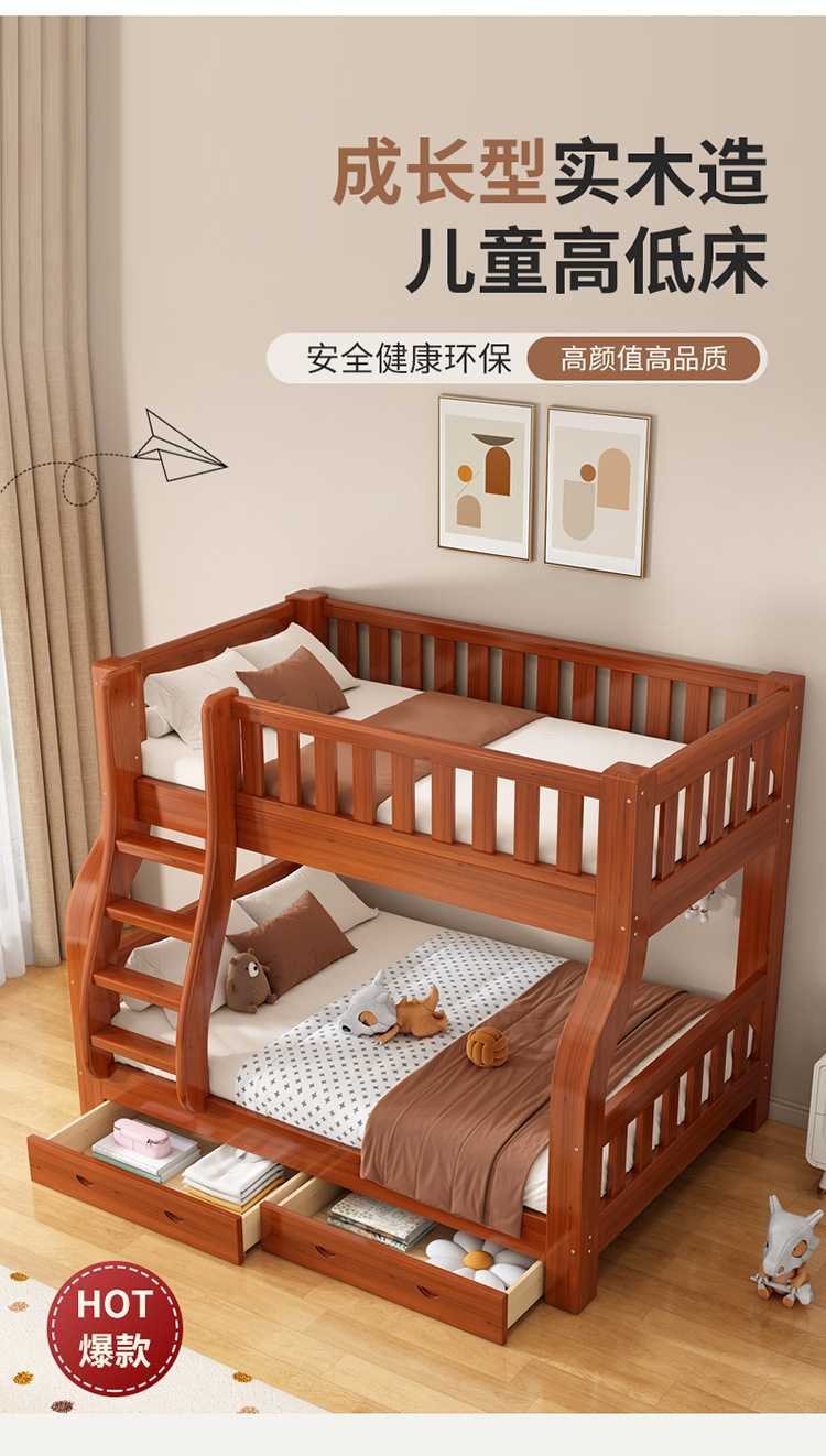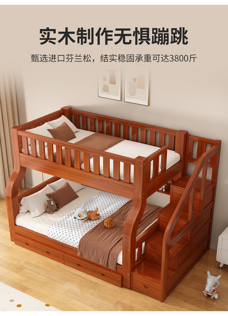 원목 이층침대, 높낮이 이층침대, 이층침대, 소형 다기능 조합, 어린이 이층침대