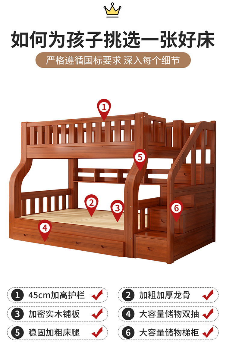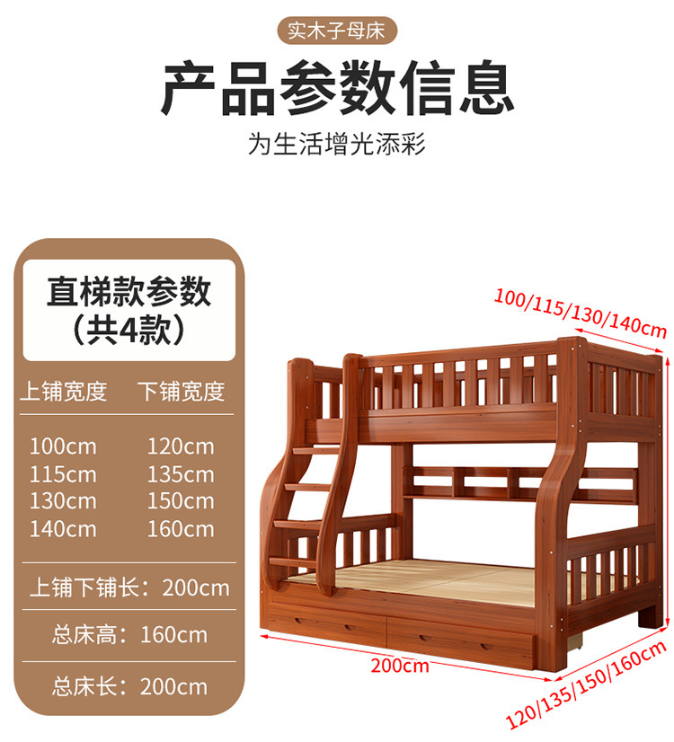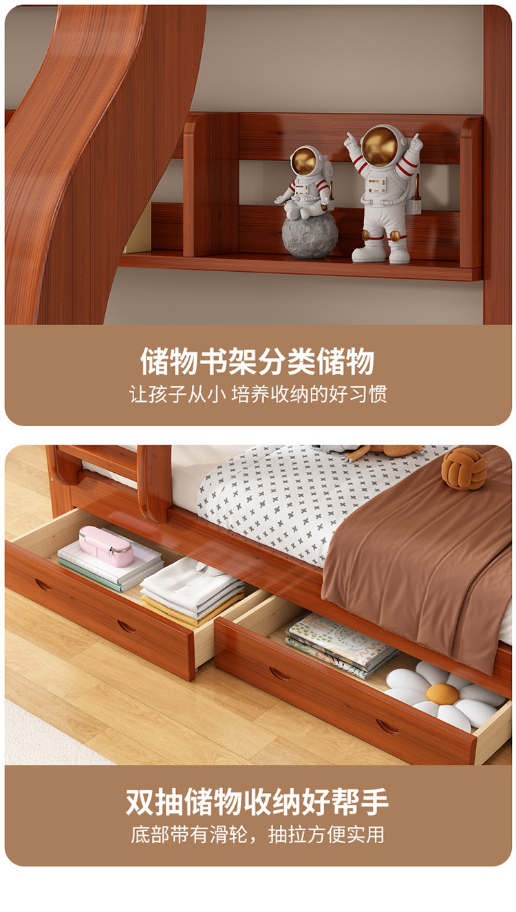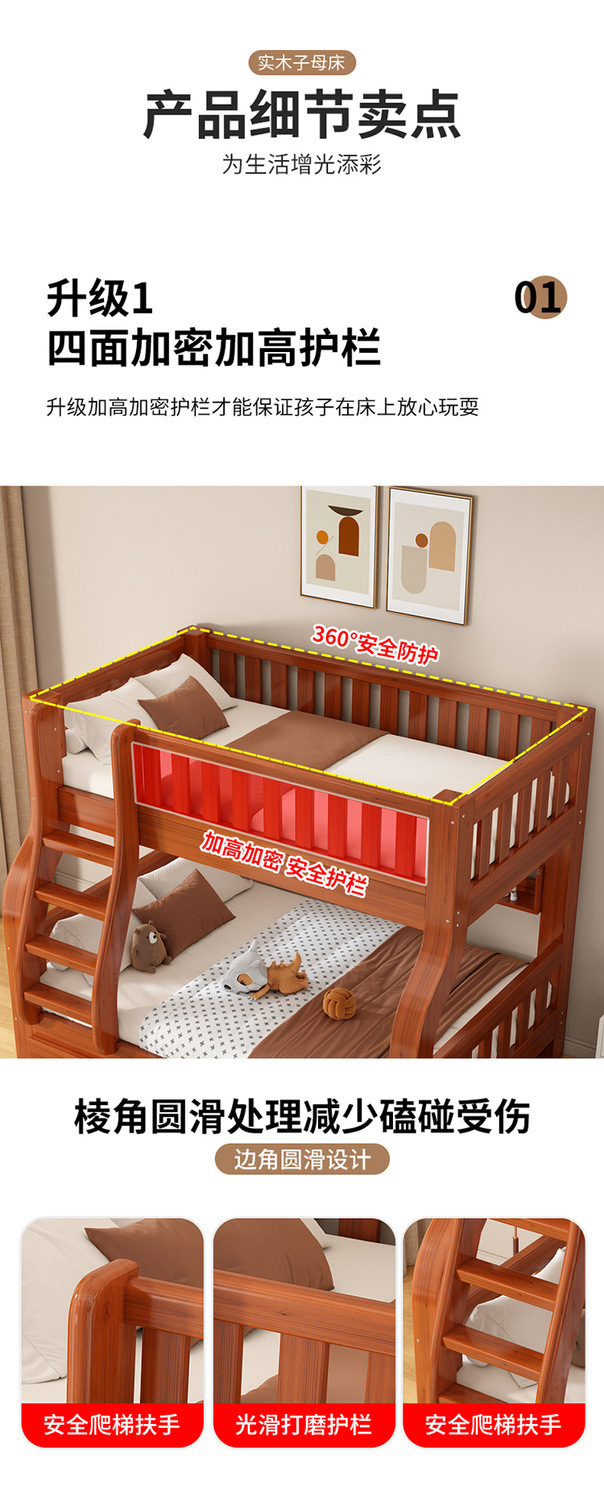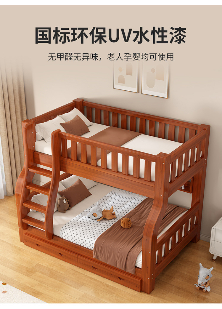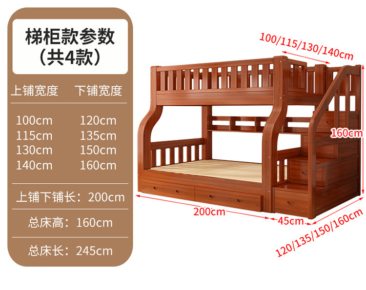 원목 이층침대, 높낮이 이층침대, 이층침대, 소형 다기능 조합, 어린이 이층침대