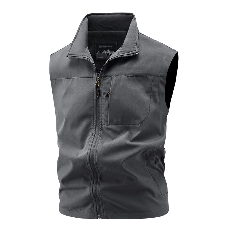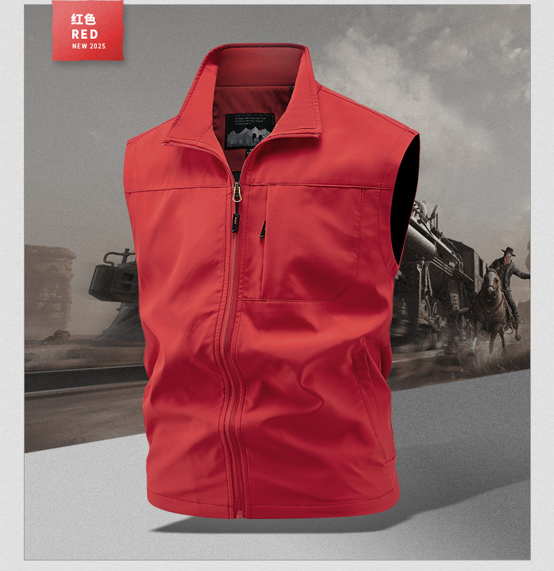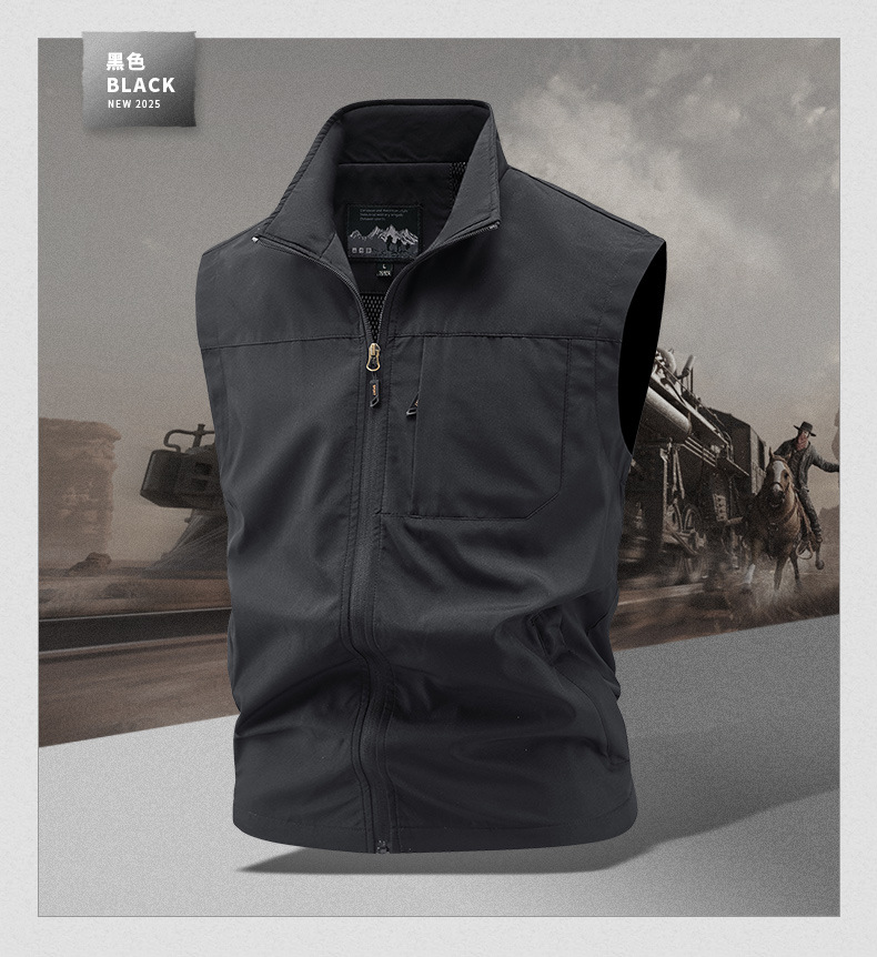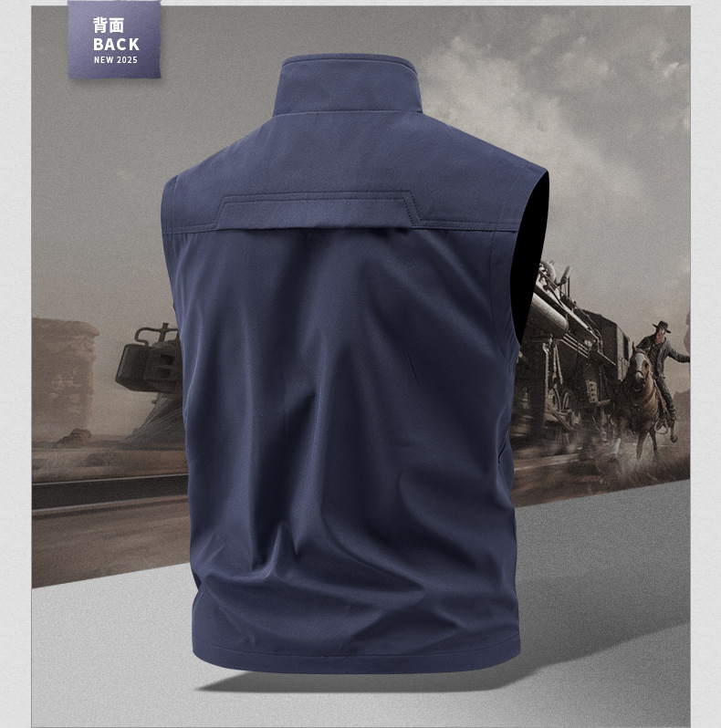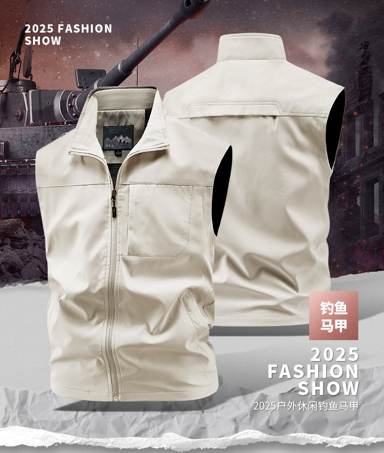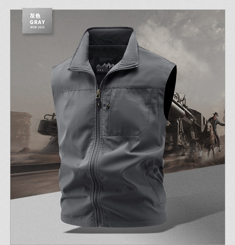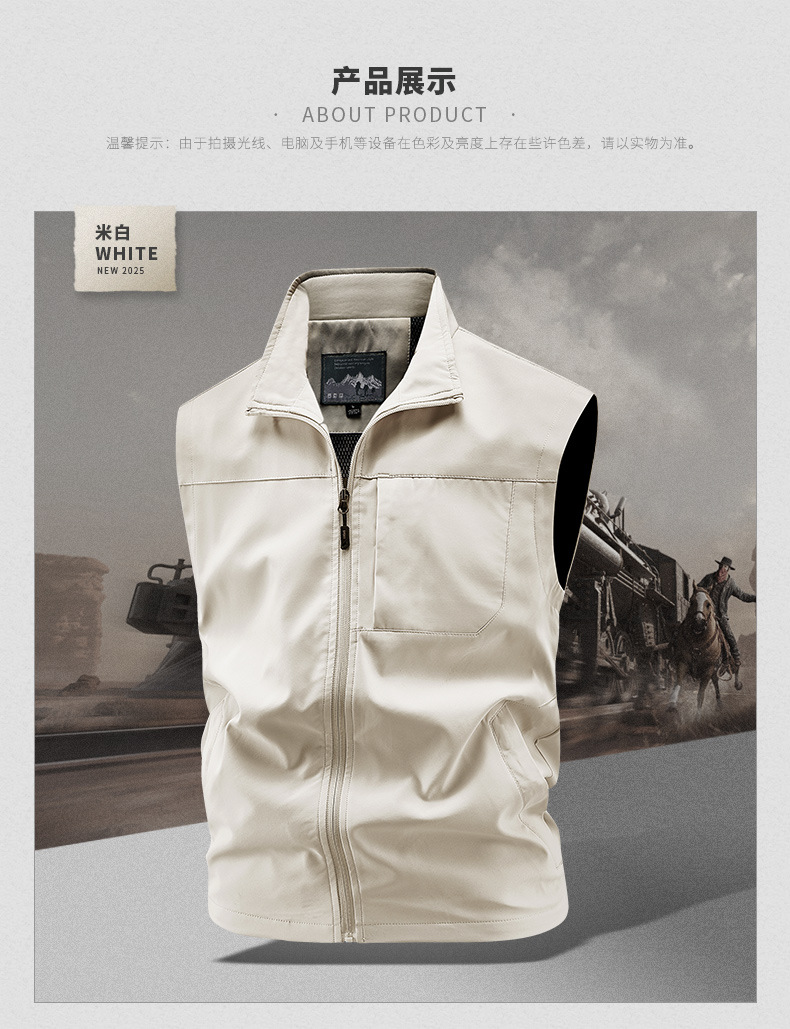 국경 간 새로운 스타일의 남성용 스탠드 칼라 멀티 포켓 야외 방풍 캐주얼 스포츠 공동 구매 조끼 로고 인쇄 가능