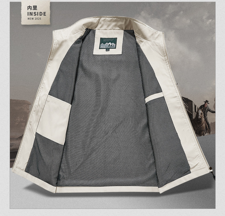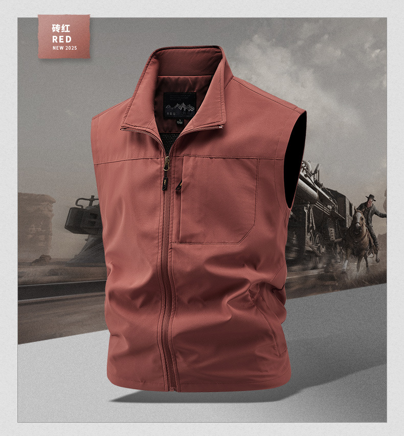국경 간 새로운 스타일의 남성용 스탠드 칼라 멀티 포켓 야외 방풍 캐주얼 스포츠 공동 구매 조끼 로고 인쇄 가능스토어 가기