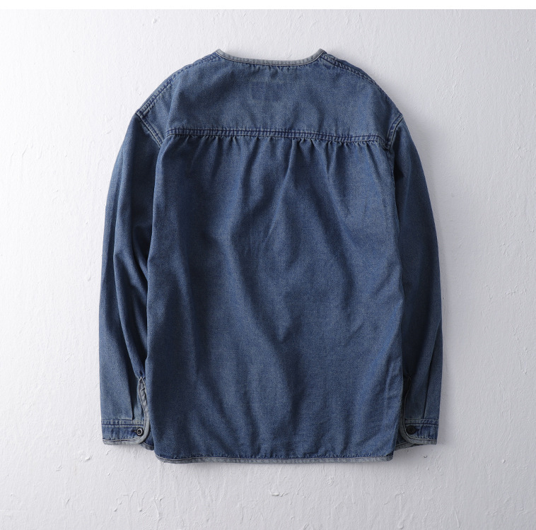 워싱 헤비웨이트 칼라리스 데님 재킷 남성 코트 로브 작업복 일본 복고풍 카디건 탑 트렌디 코튼