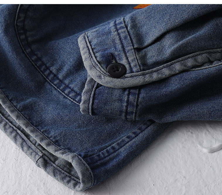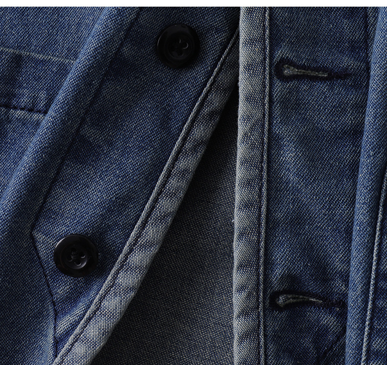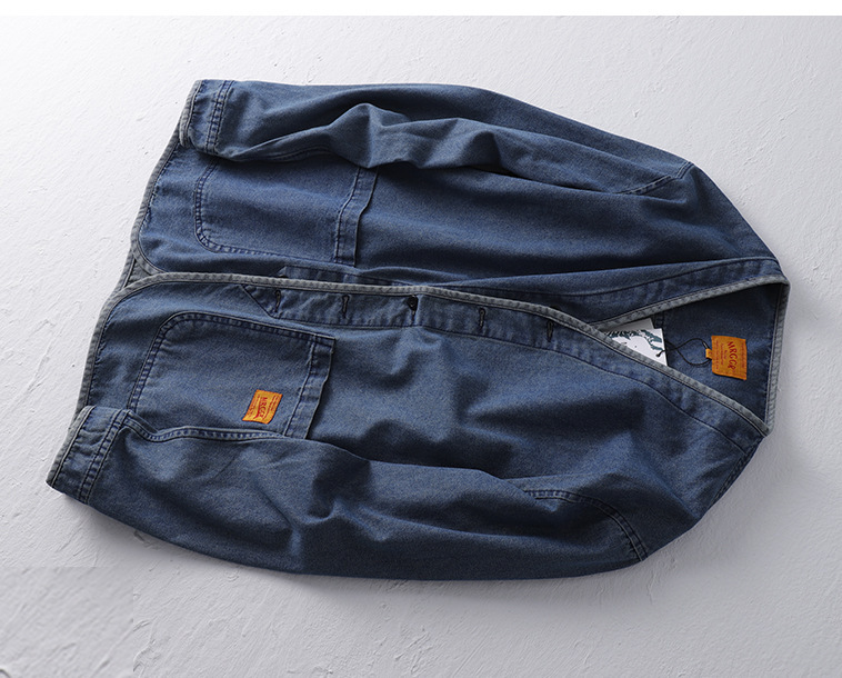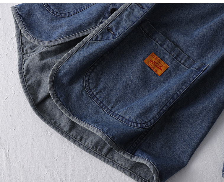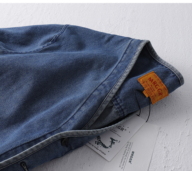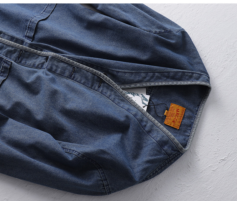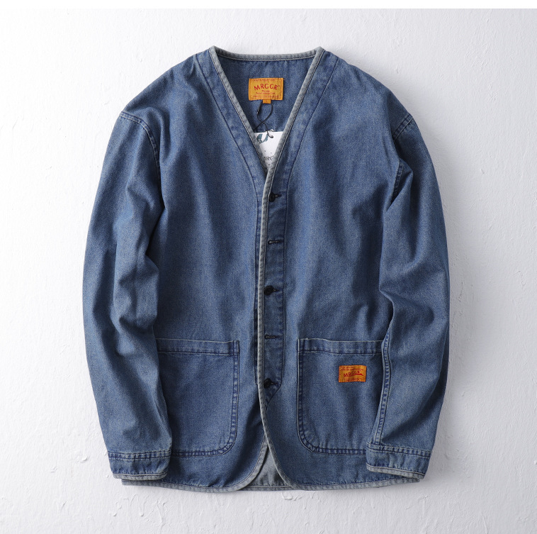 워싱 헤비웨이트 칼라리스 데님 재킷 남성 코트 로브 작업복 일본 복고풍 카디건 탑 트렌디 코튼스토어 가기