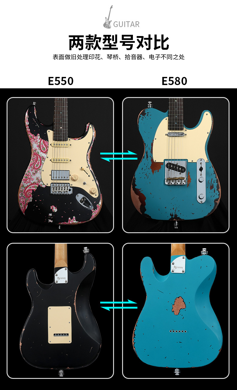 • Starway E550 일렉트릭 기타-Black Shadow (패키지 포함)