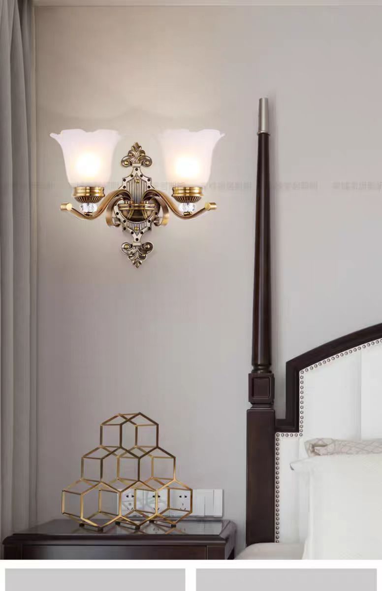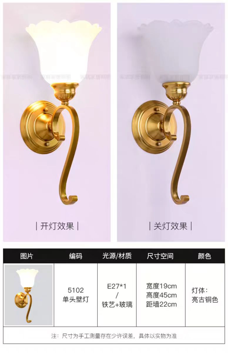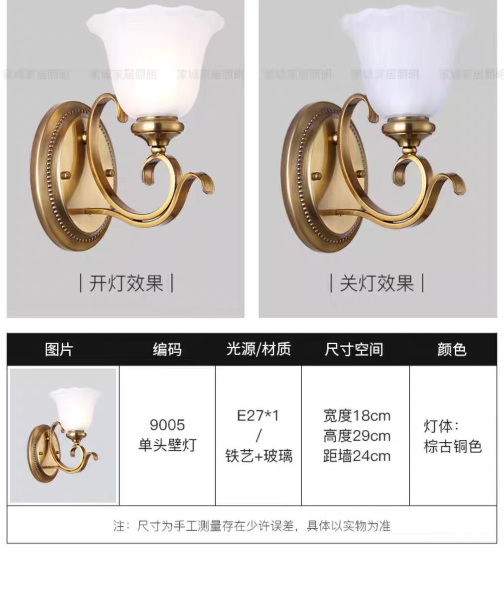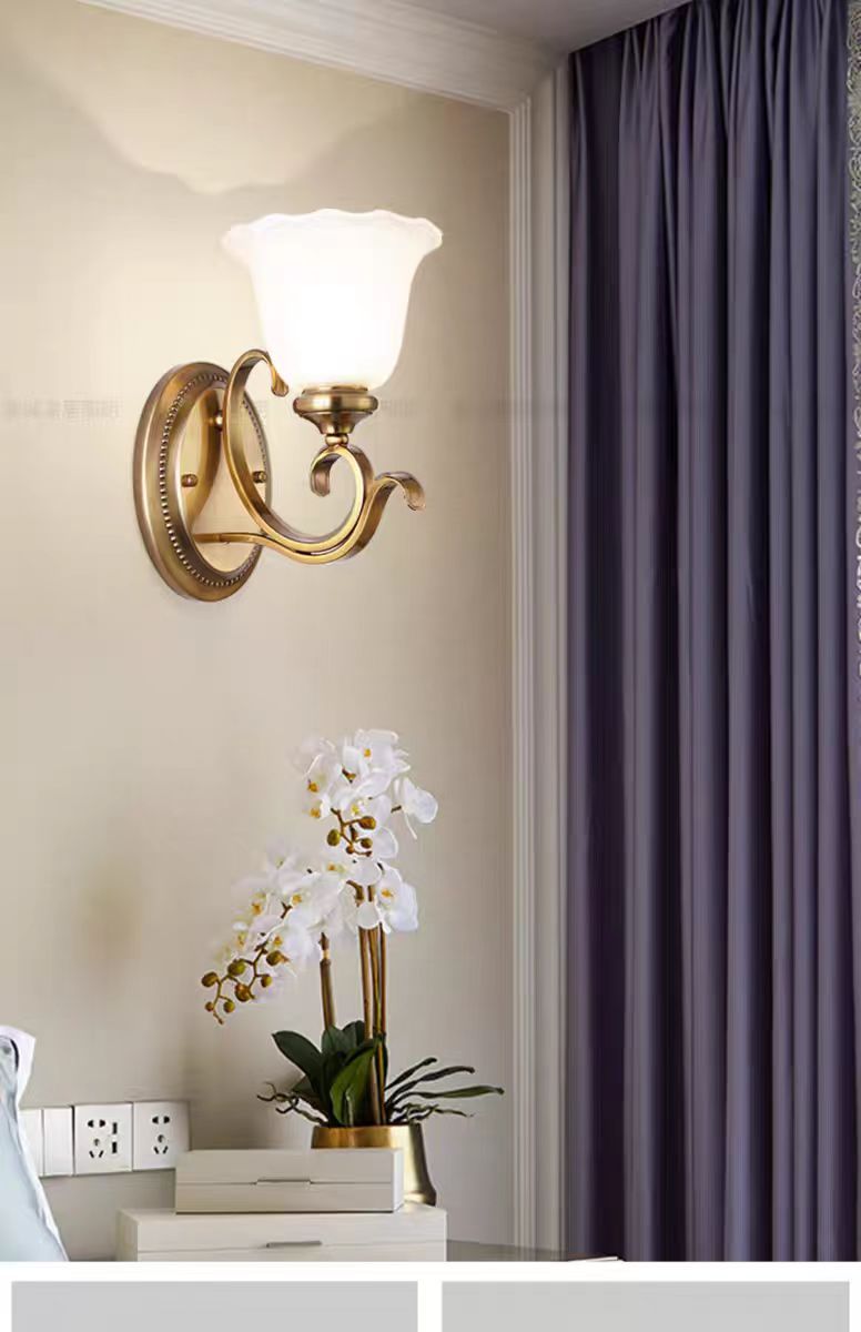 미국 세라믹 거실 전체 구리 벽 램프 유럽 스타일의 간단한 홀 TV 배경 벽 침실 머리맡 램프 빌라 램프스토어 가기