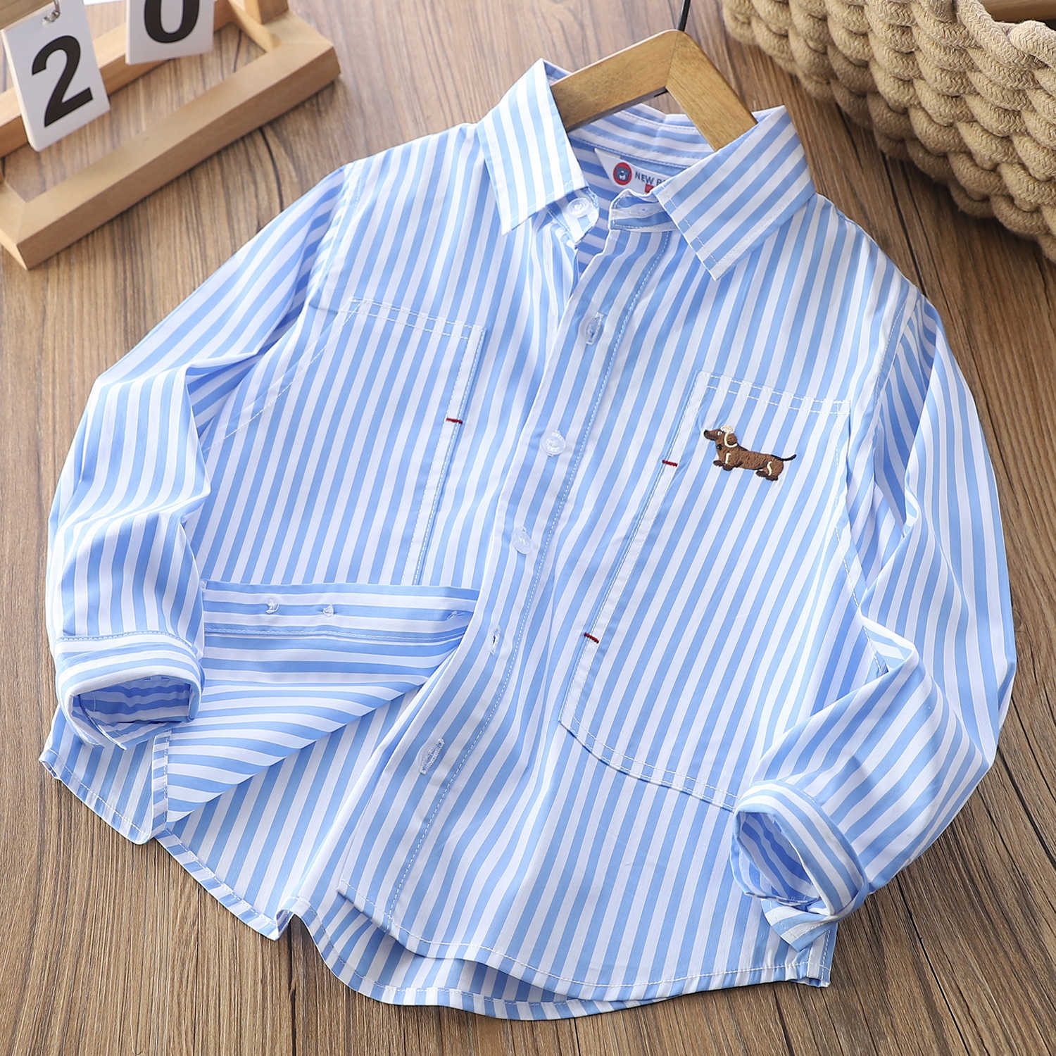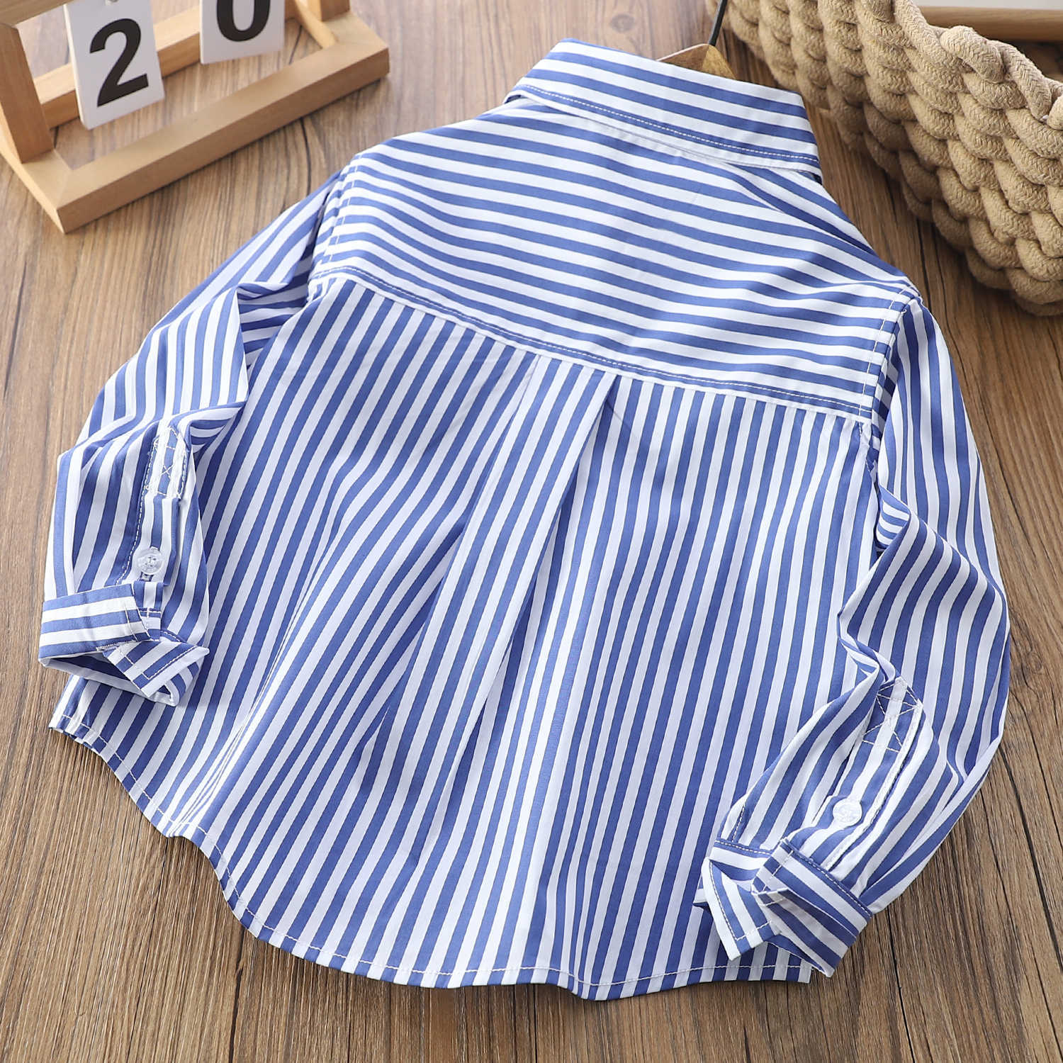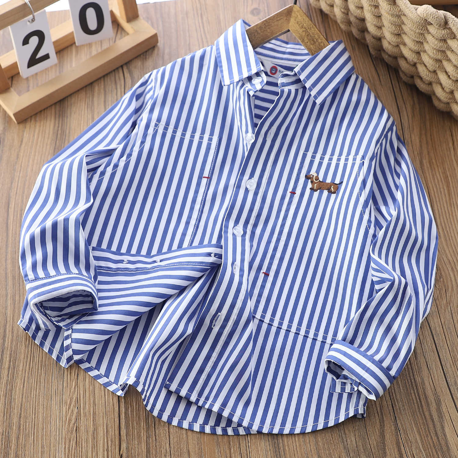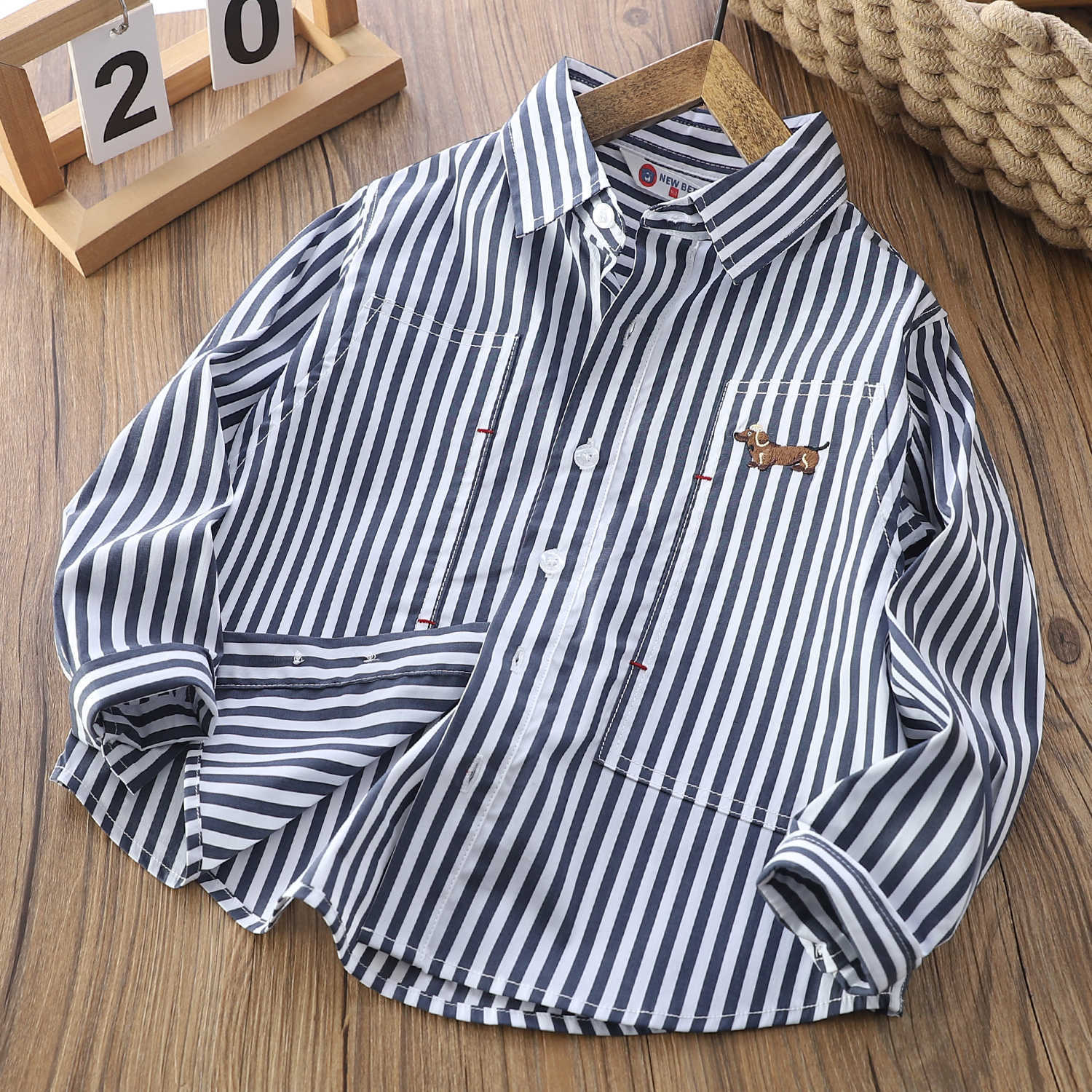 Xiong Zaijia 2 봄 신상품 어린이 세로 줄무늬 셔츠, 큰 어린이를 위한 긴팔 탑, 패셔너블하고 멋집니다.
