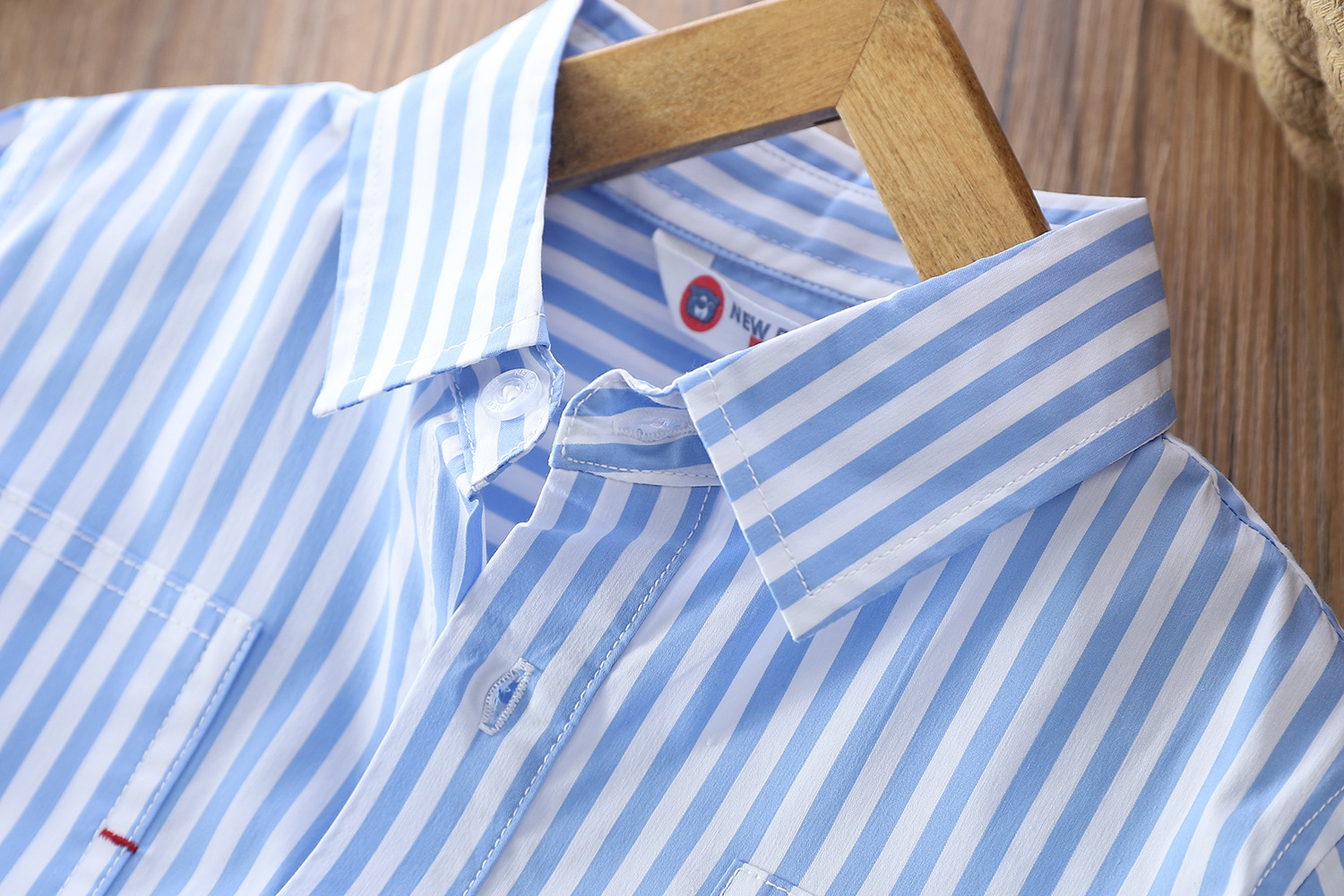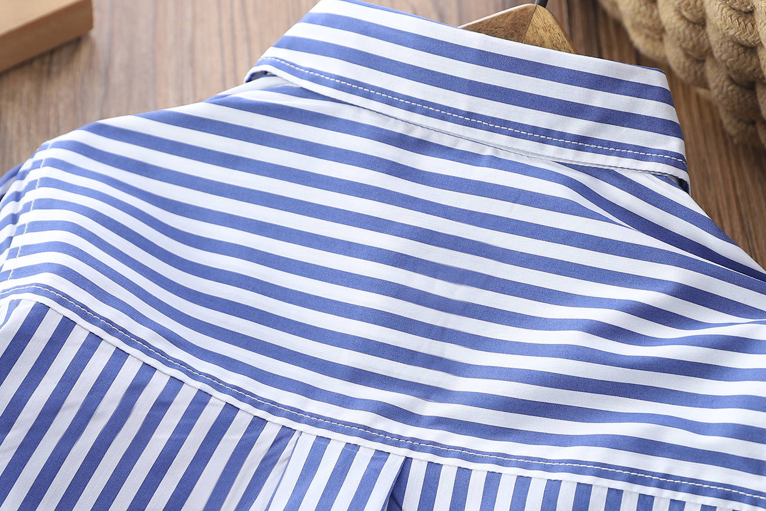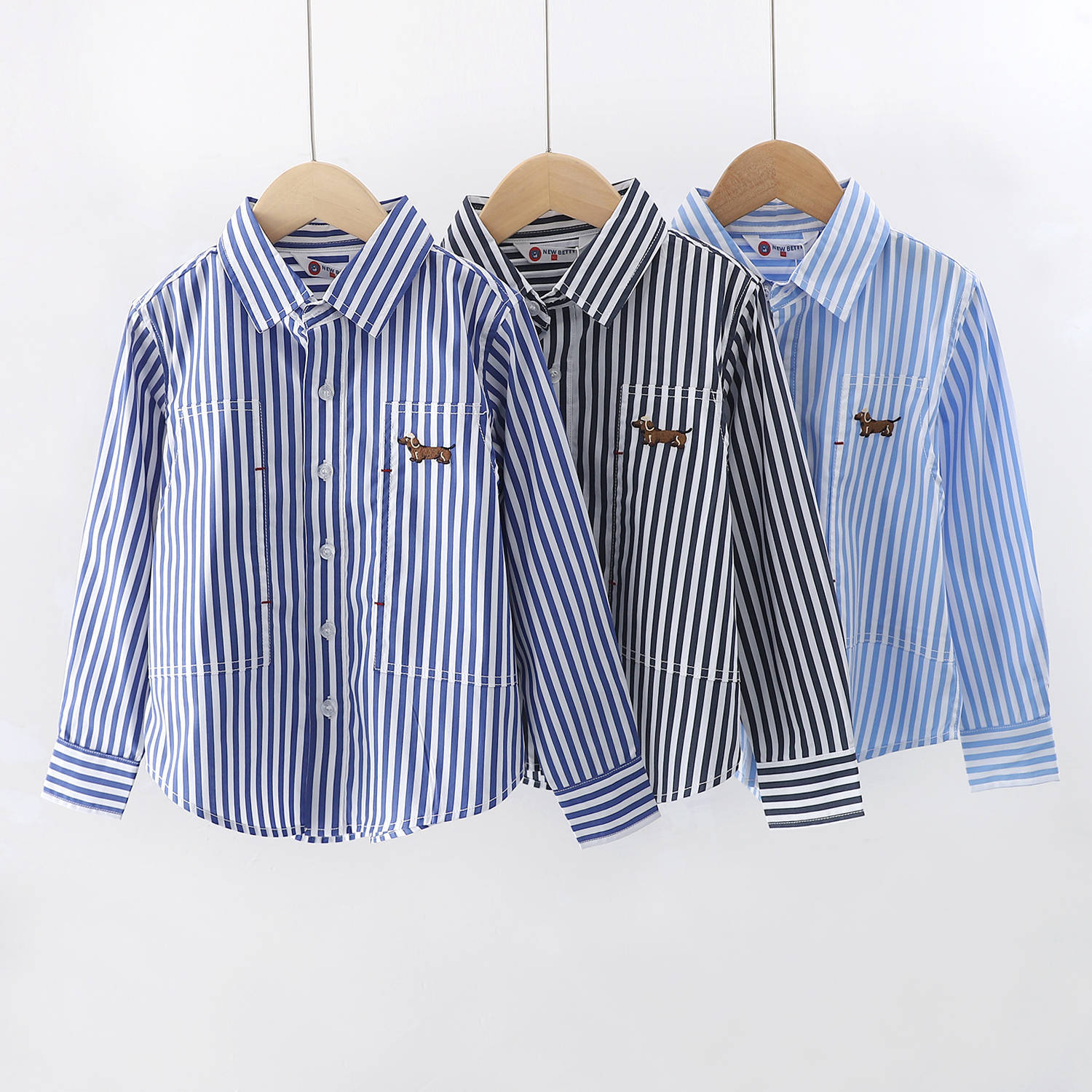 Xiong Zaijia 2 봄 신상품 어린이 세로 줄무늬 셔츠, 큰 어린이를 위한 긴팔 탑, 패셔너블하고 멋집니다.