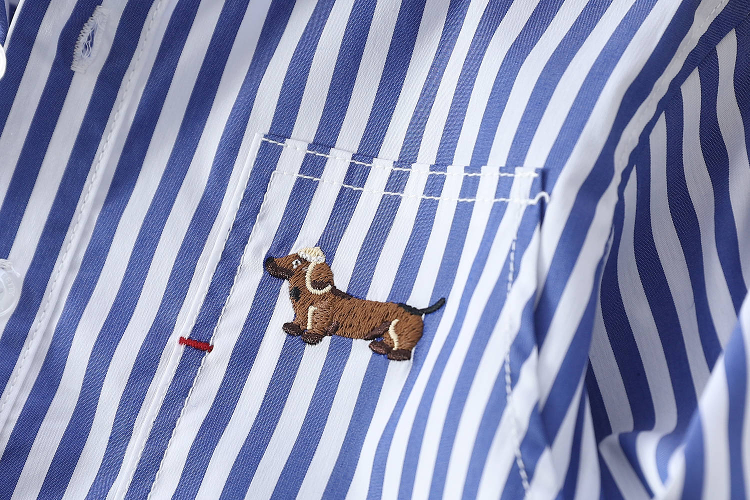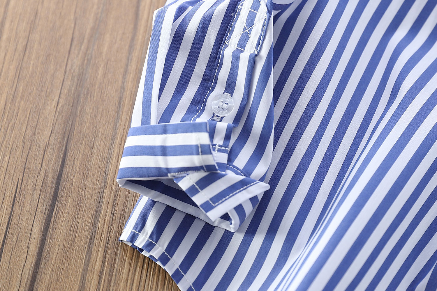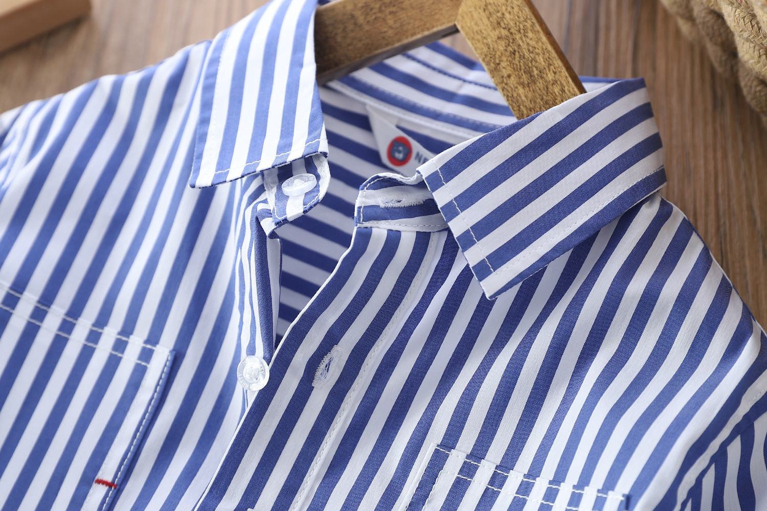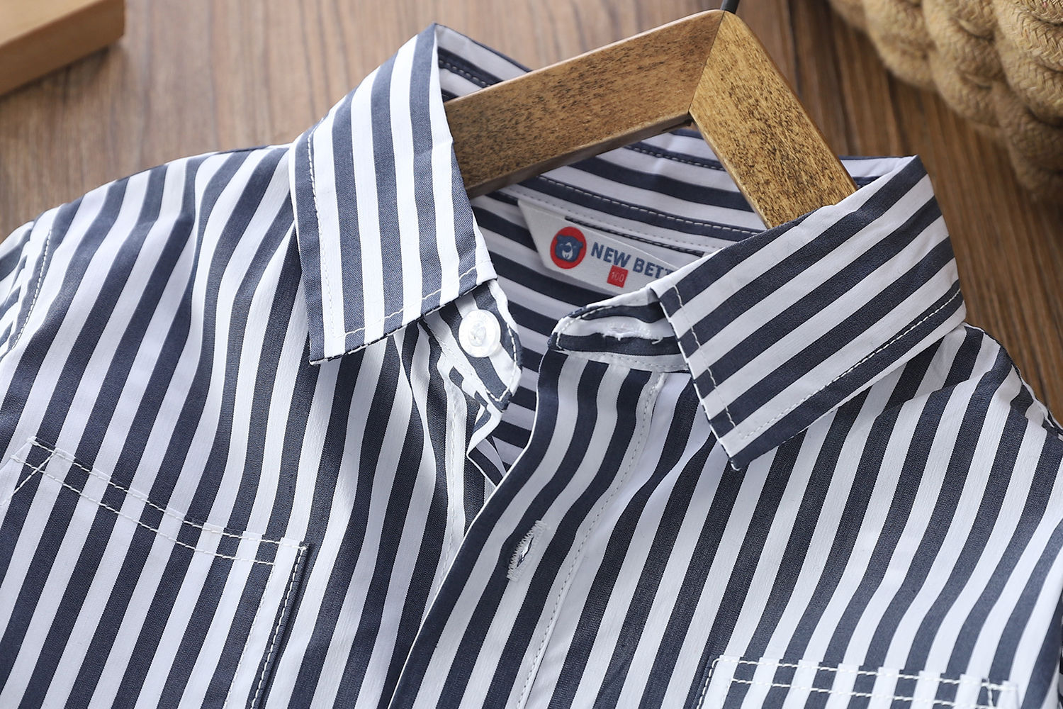 Xiong Zaijia 2 봄 신상품 어린이 세로 줄무늬 셔츠, 큰 어린이를 위한 긴팔 탑, 패셔너블하고 멋집니다.